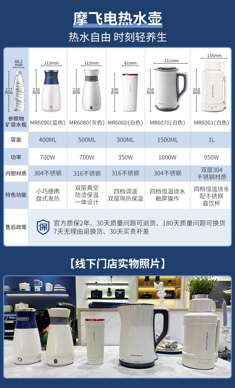 摩飞电器(Morphyrichards)电水壶 电热水壶 旅行便携式烧水壶 316不锈钢保温 电热水杯加热 MR6080