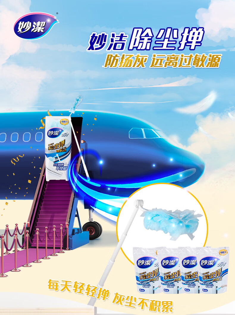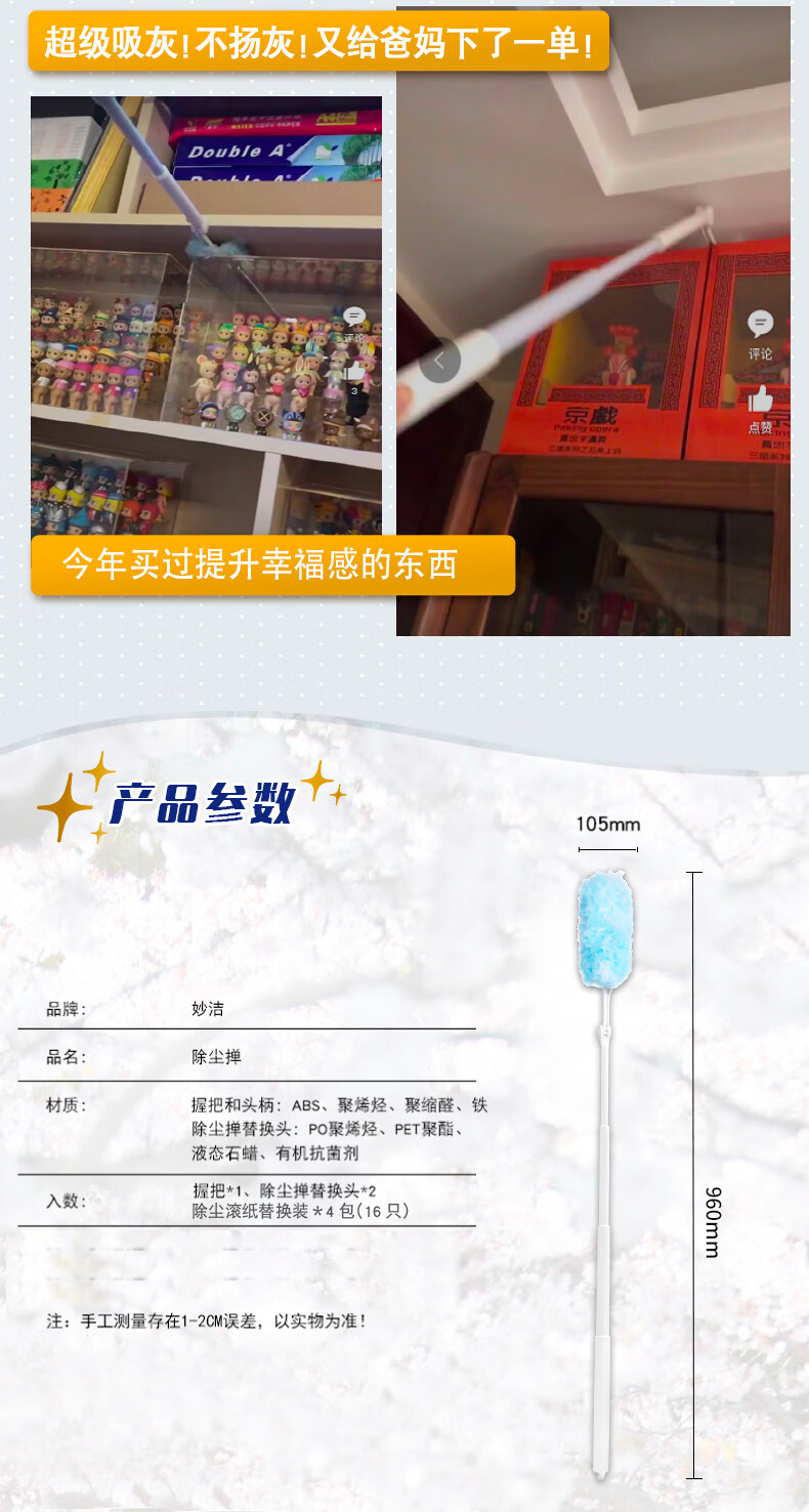妙洁 加长款除尘掸 共含18个替换头 车扫灰鸡毛掸子日本原装进口静电