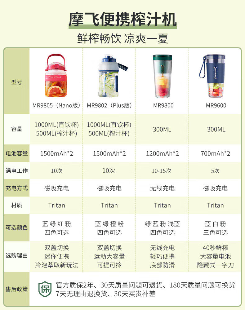摩飞电器(Morphyrichards)榨汁机 便携式榨汁杯 磁吸充电迷你无线果汁机 料理机随行杯 MR9600 蓝色
