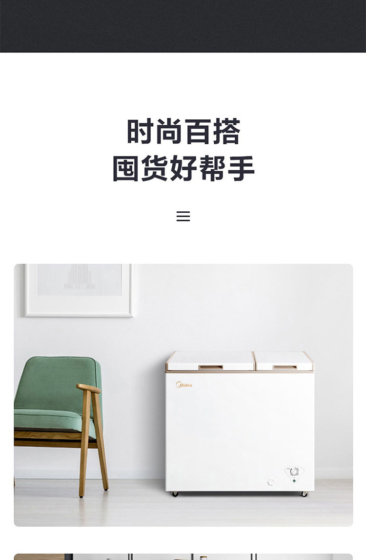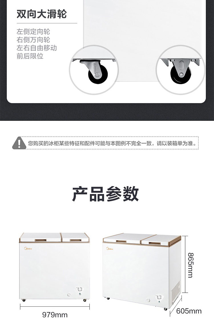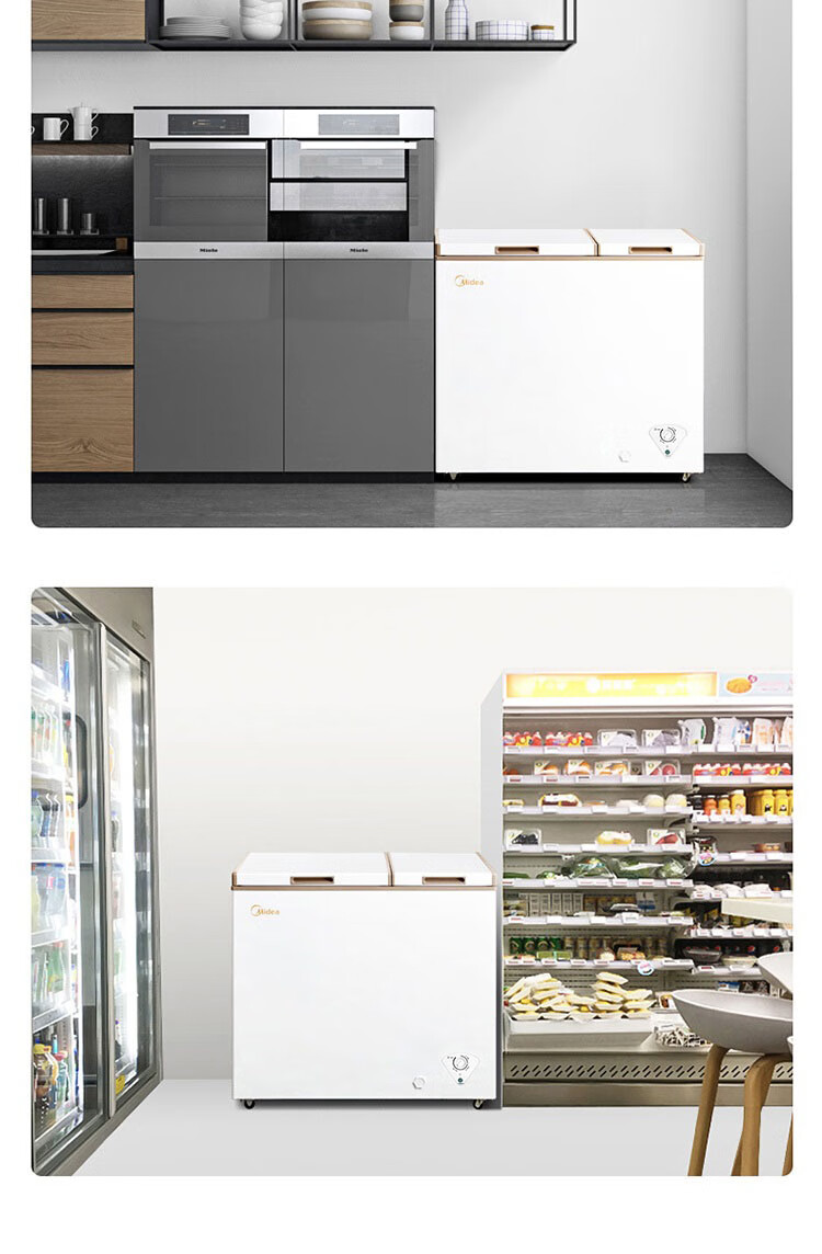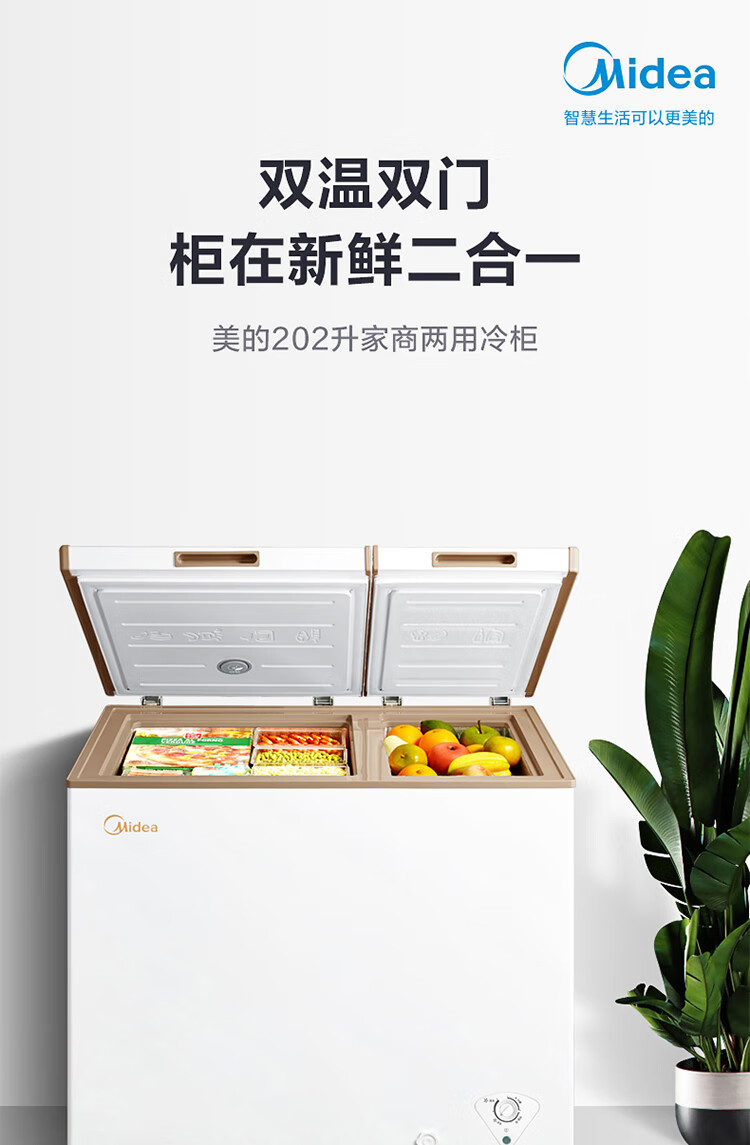 美的(Midea)202升 家用囤货冰柜 双顶开双温柜 一级能效 省电低音卧式冰箱BCD-202DKM(E)