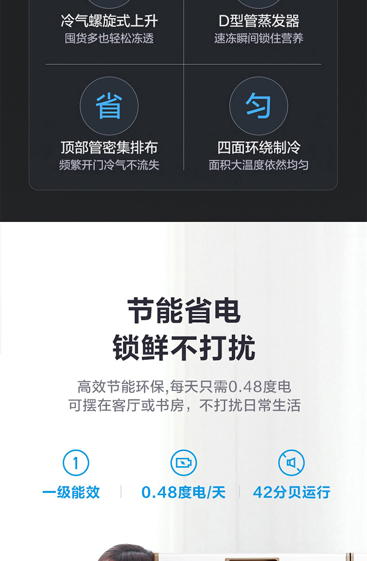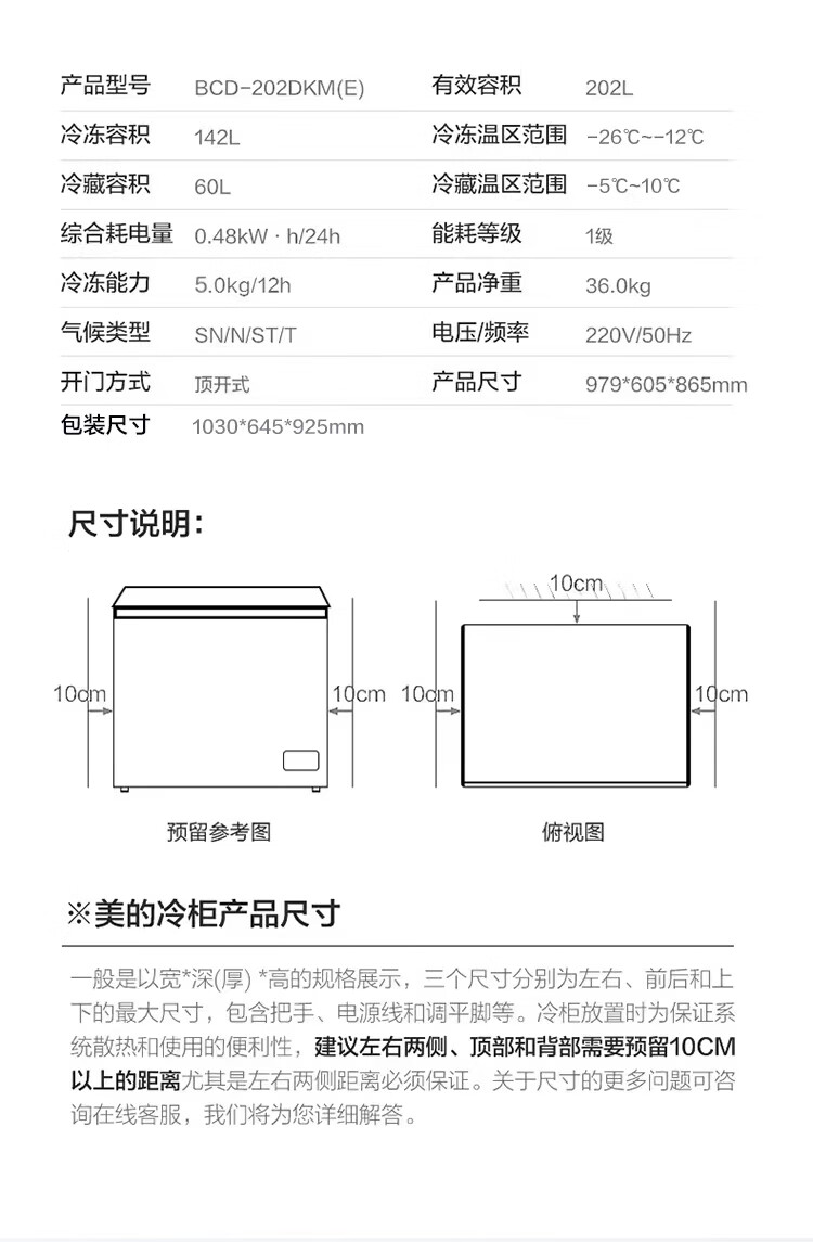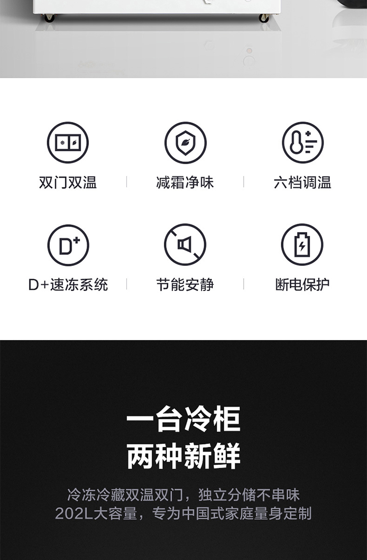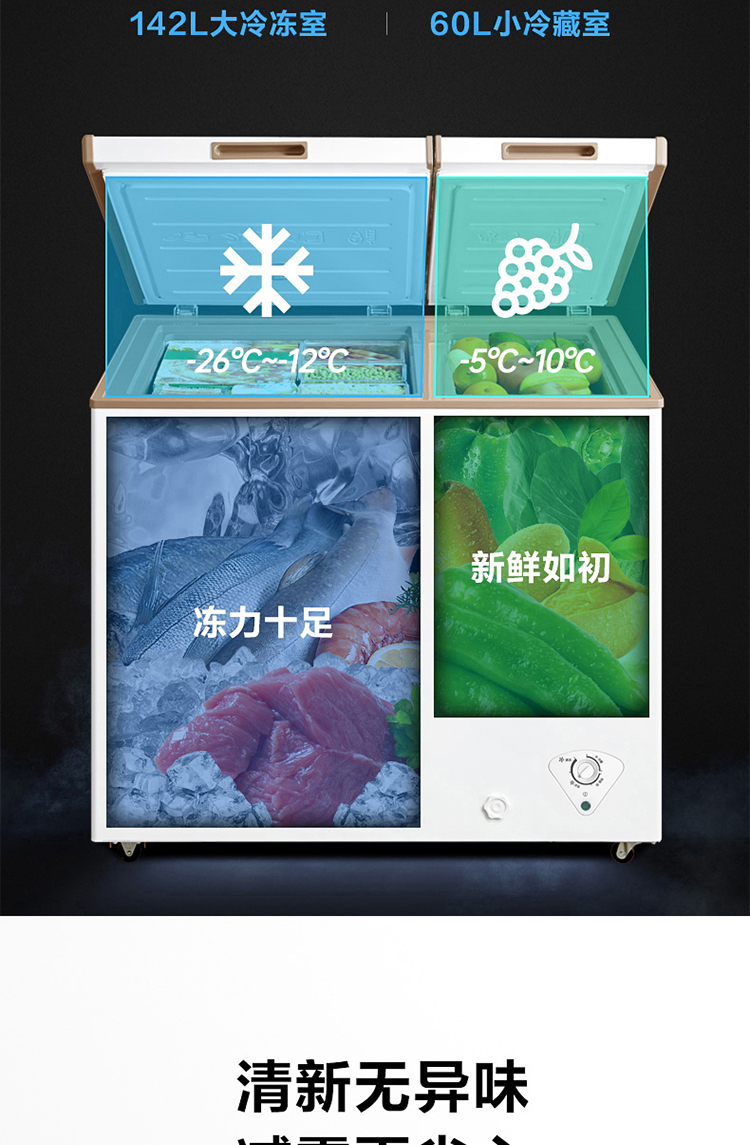 美的(Midea)202升 家用囤货冰柜 双顶开双温柜 一级能效 省电低音卧式冰箱BCD-202DKM(E)