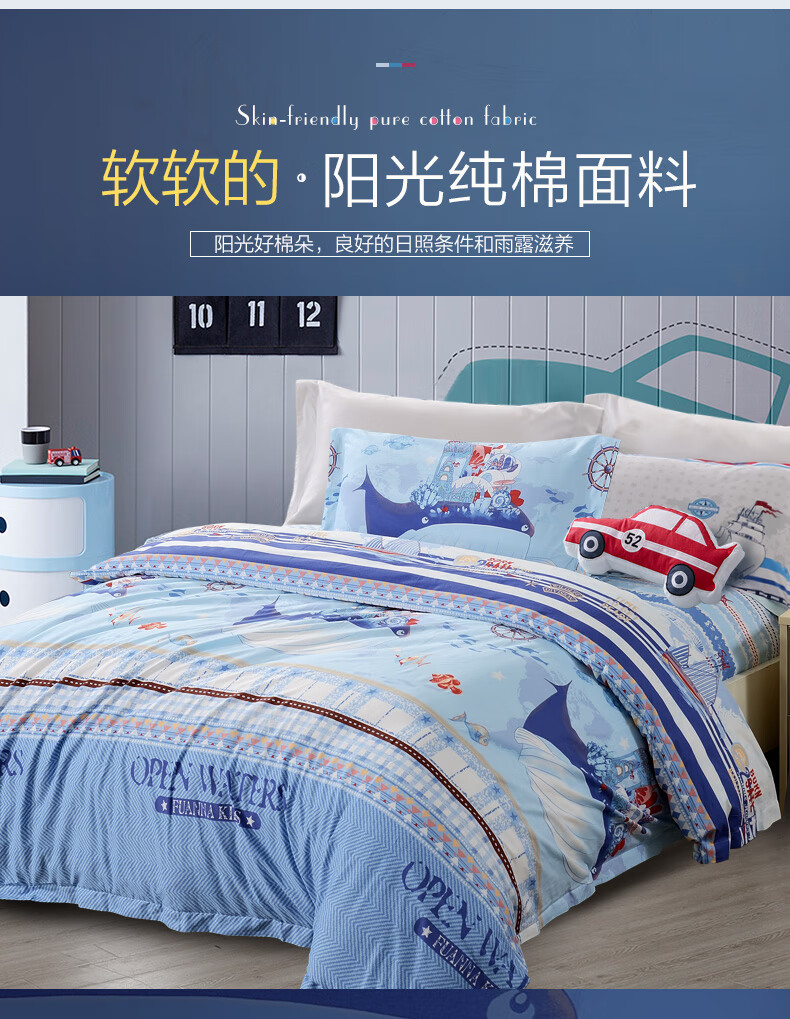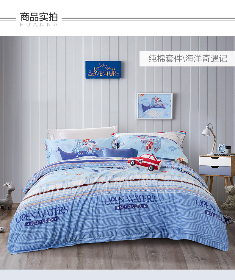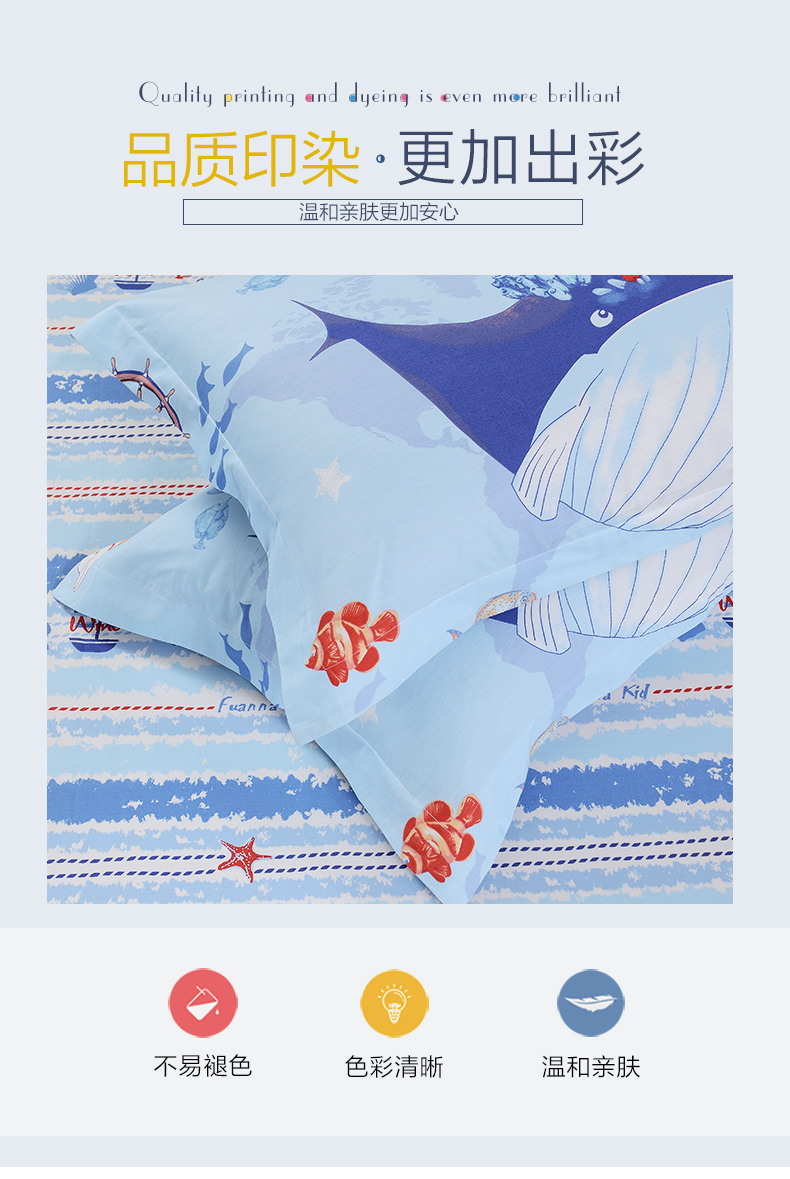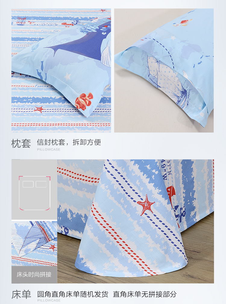 富安娜学生宿舍套件纯棉全棉三件套卡通儿童单人床单被套152*210cm