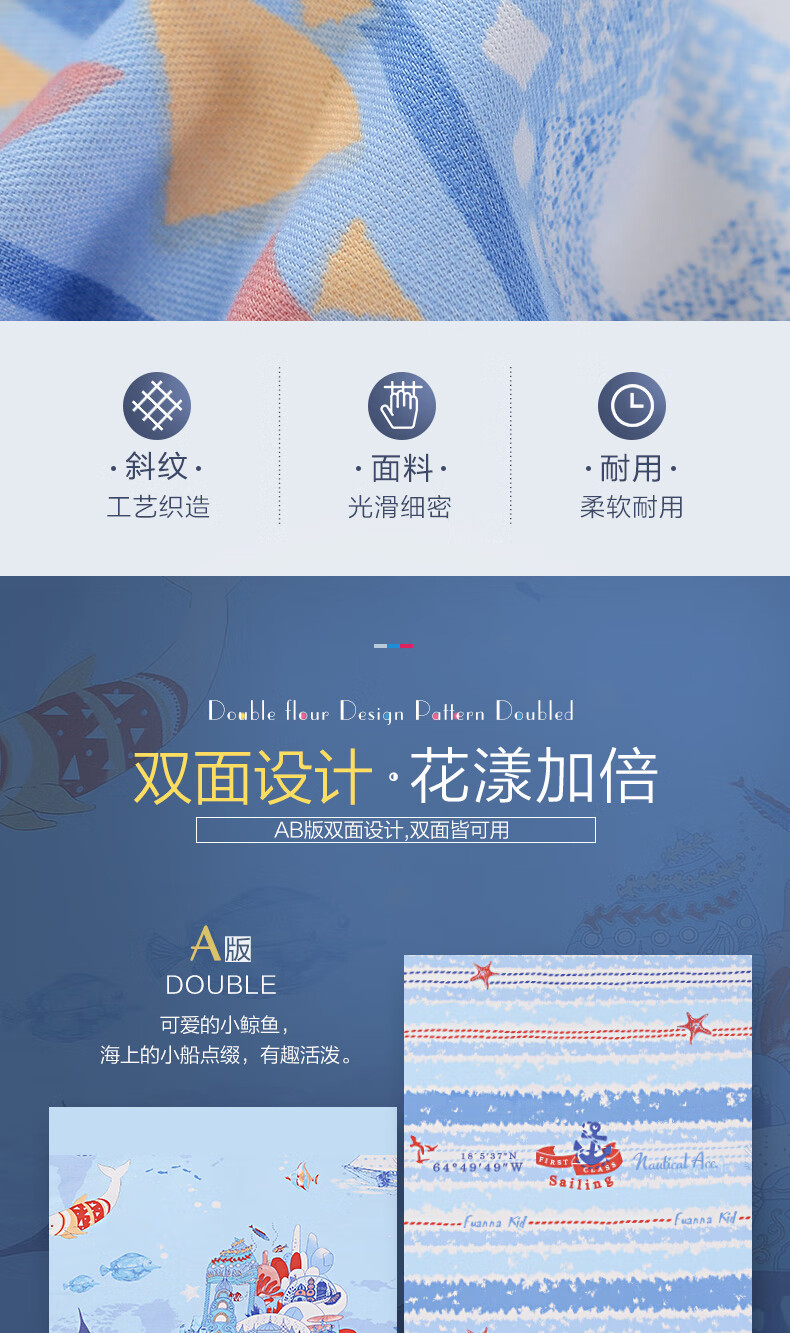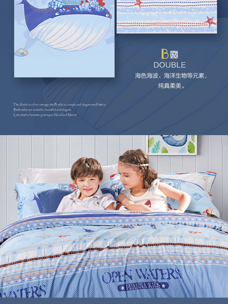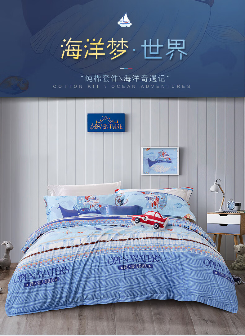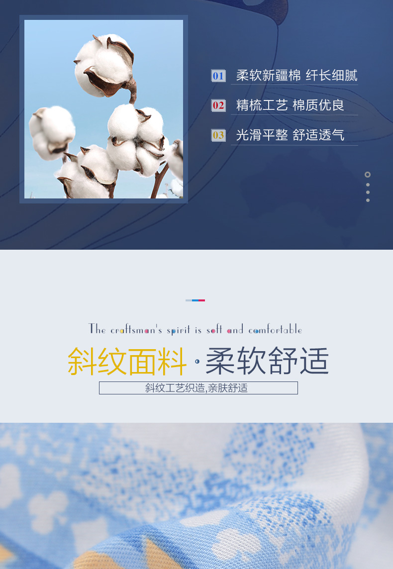 富安娜学生宿舍套件纯棉全棉三件套卡通儿童单人床单被套152*210cm