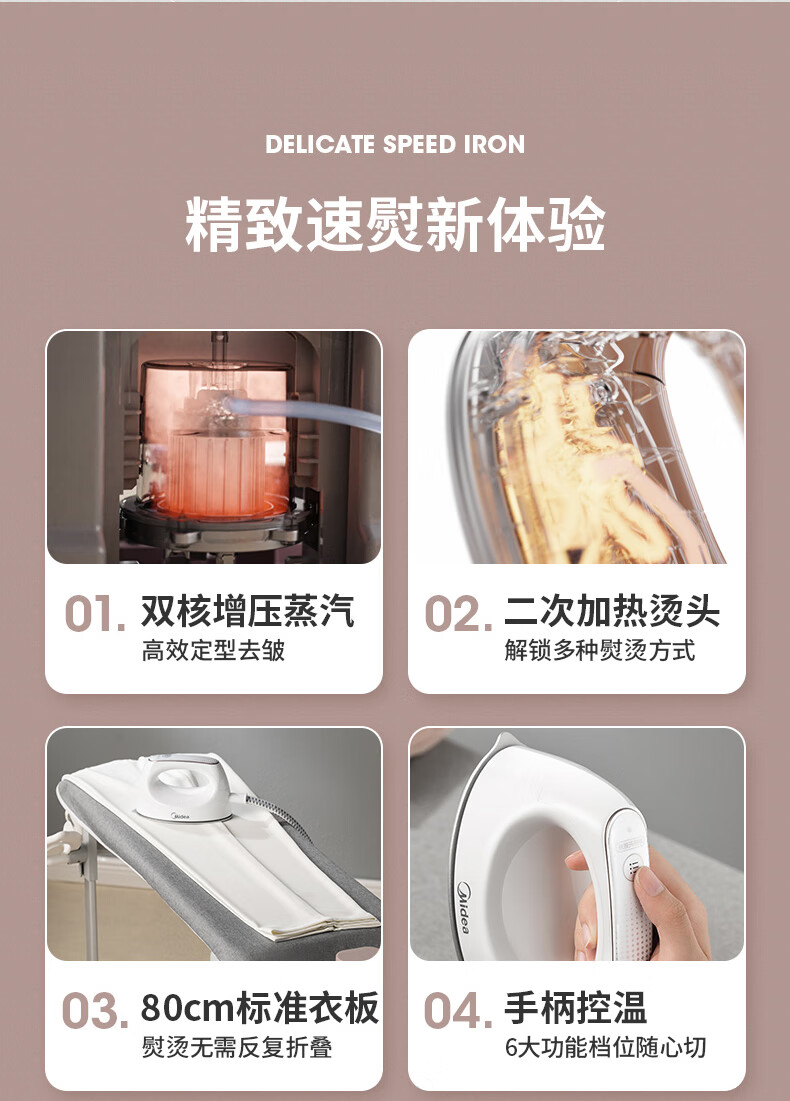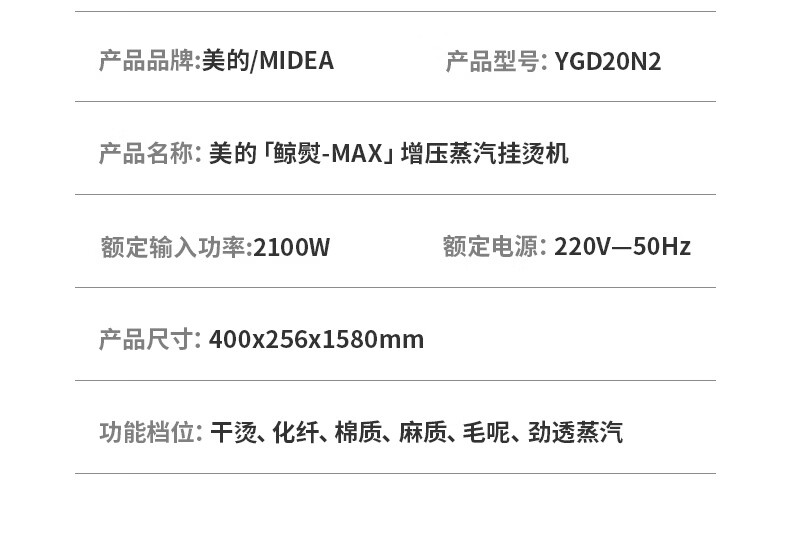 美的(Midea)【双核增压】挂烫机家用 熨斗 蒸汽挂烫机 手持熨烫机加长熨板电熨斗 YGD20N2