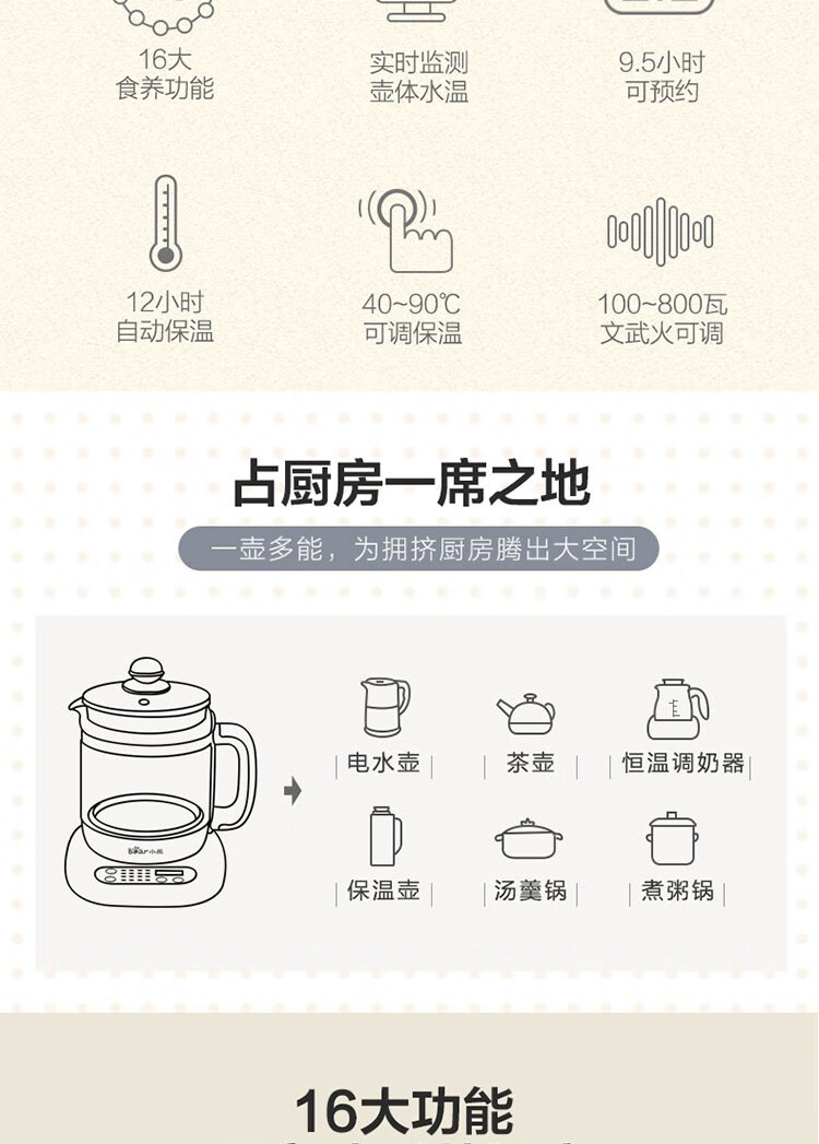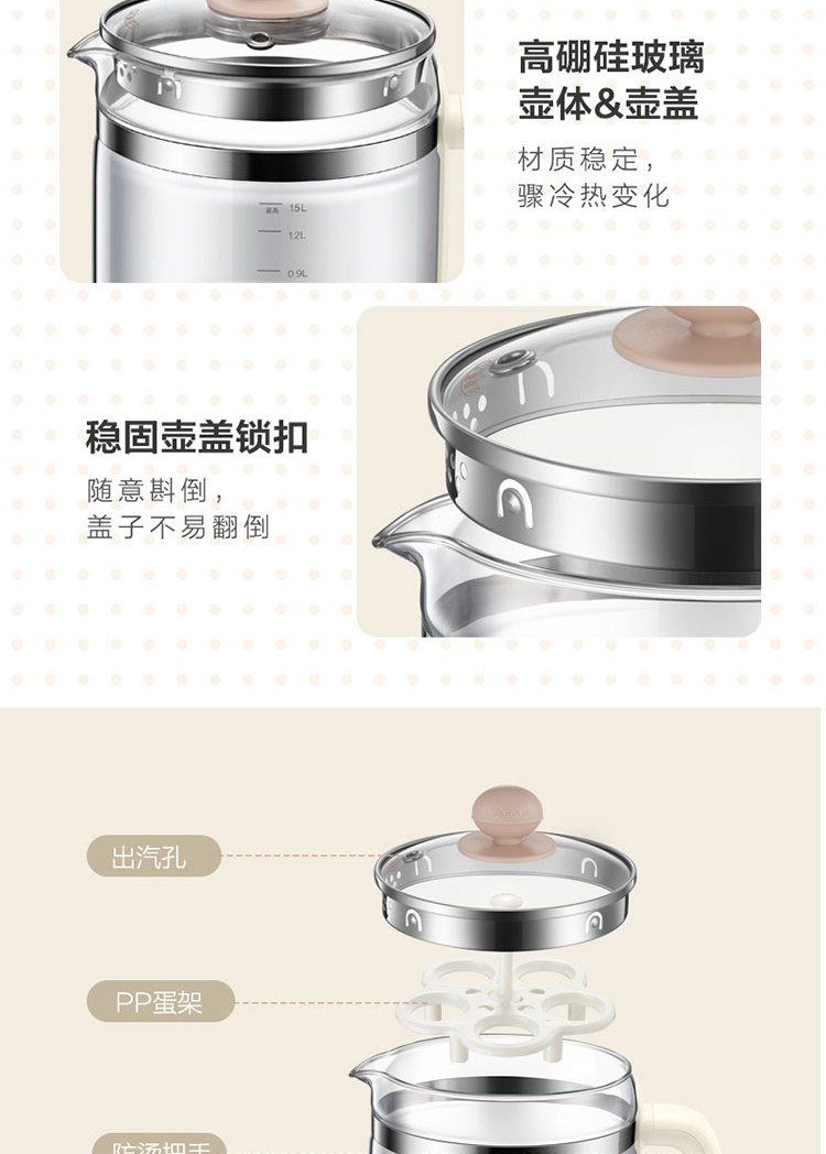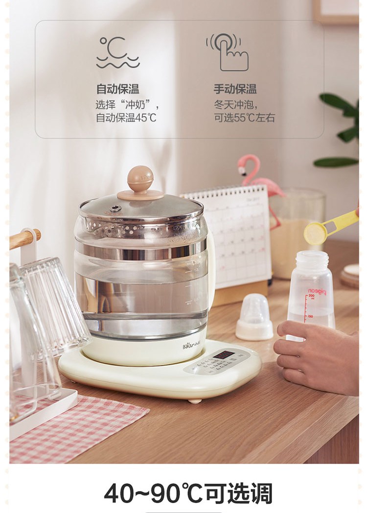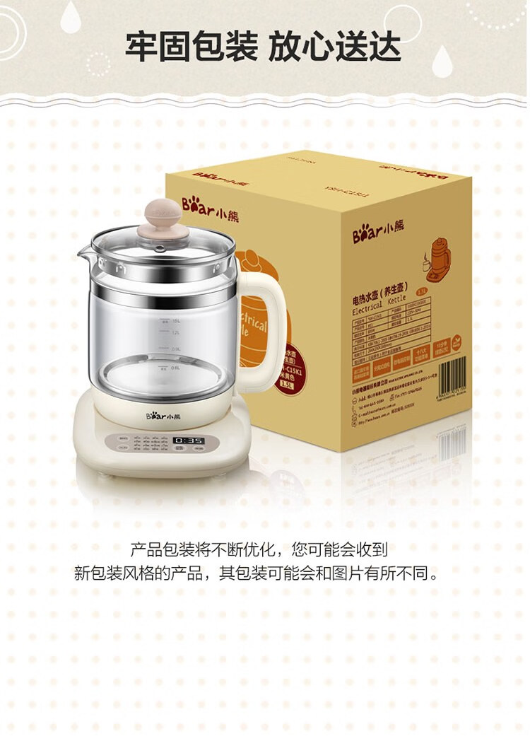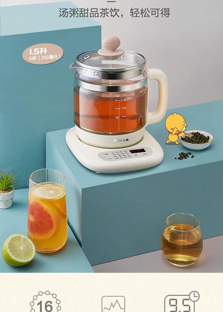 小熊(Bear)养生壶1.5L迷你玻璃电水壶电热水壶 多功能煮茶壶 YSH-C15K1【企业采购】支持一件代发
