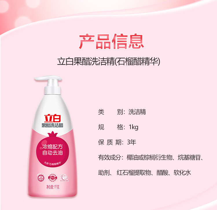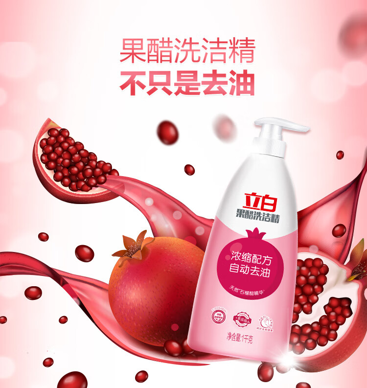 立白天然石榴果醋洗洁精1kg*3瓶食品可用浓缩去油餐具果蔬