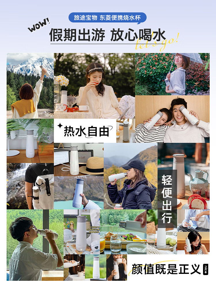 东菱Donlim电水壶 便携式烧水壶 电热水杯家用 旅行烧水杯 小型冲奶防烫办公室养生保温杯 DL-B1棉云白