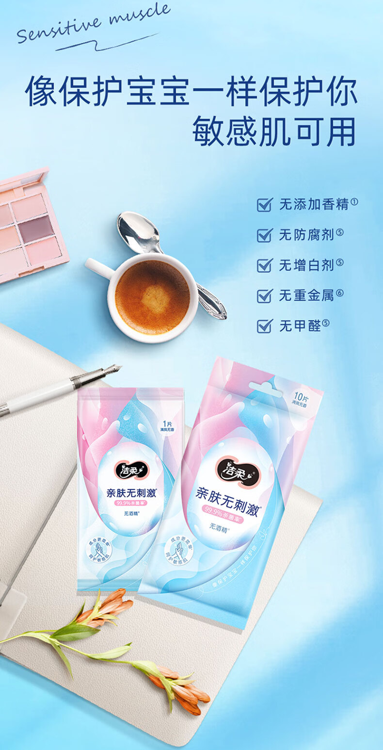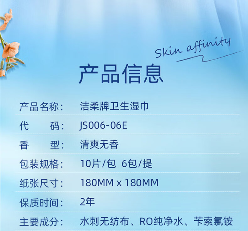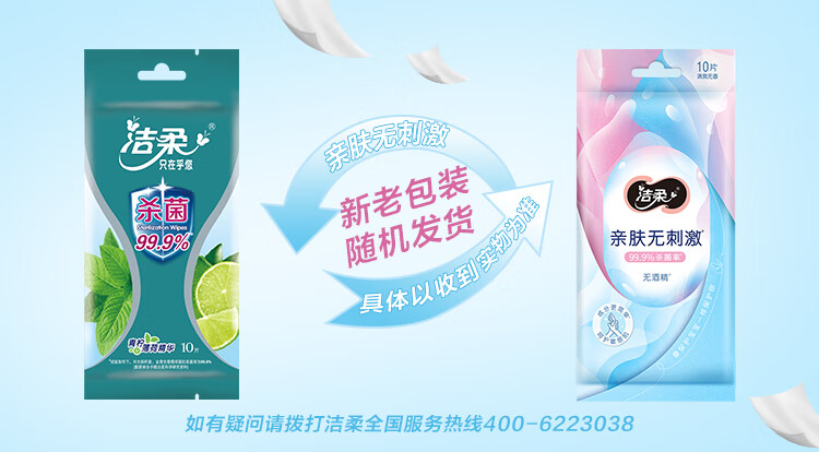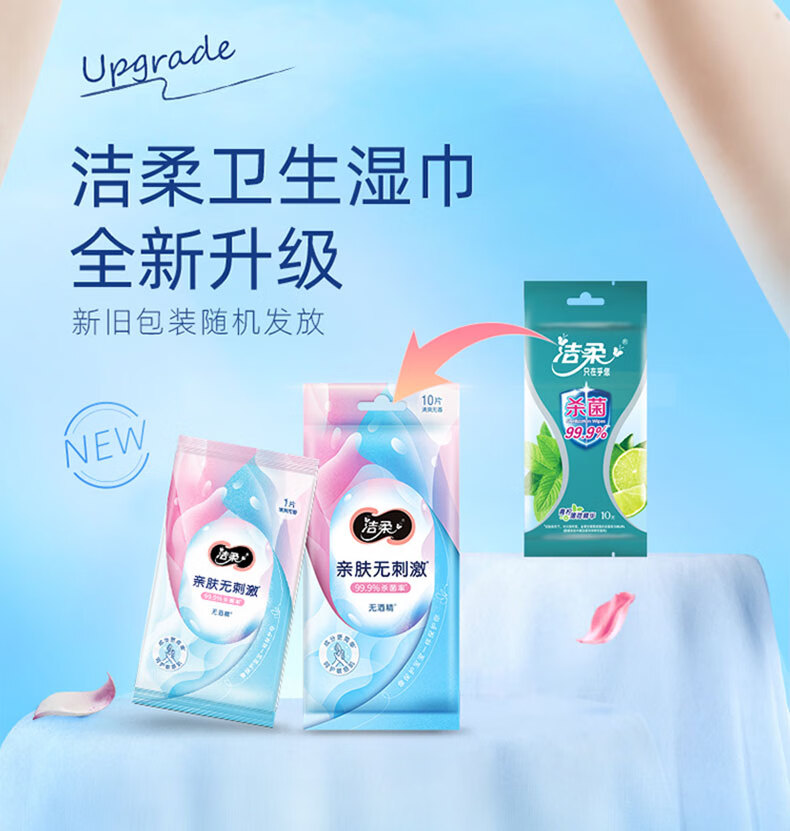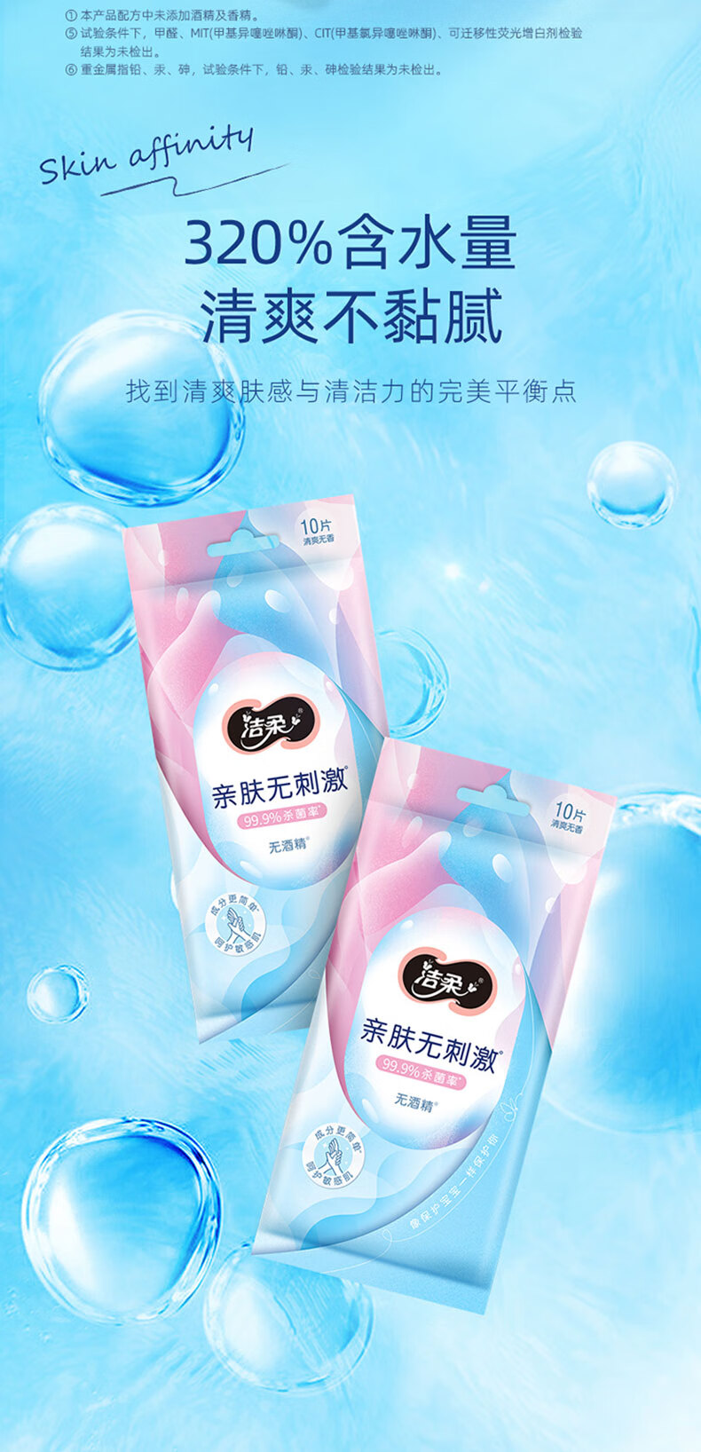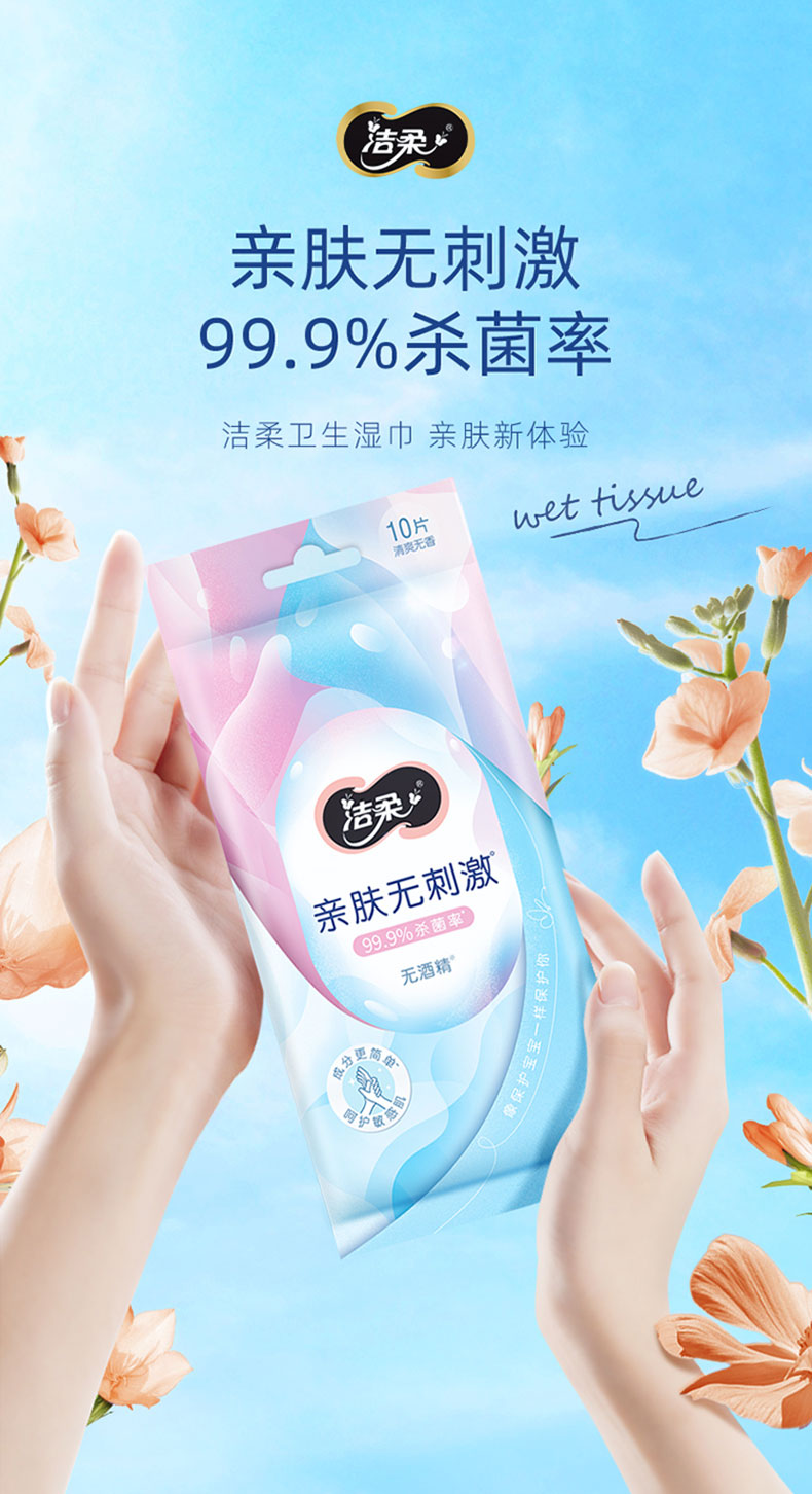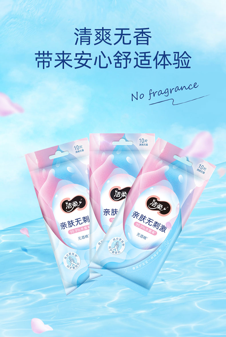 洁柔湿巾卫生湿巾10片独立装*6包 99.9%杀菌清洁 呵护肌肤清爽