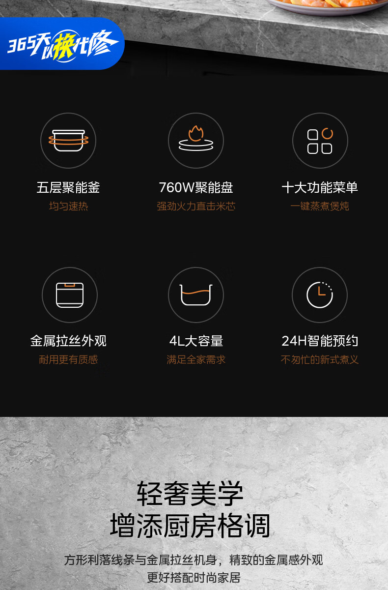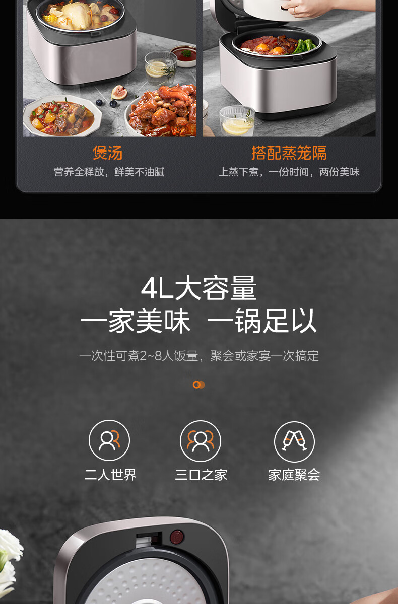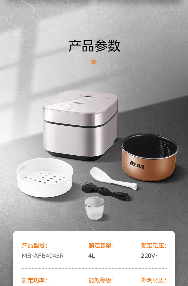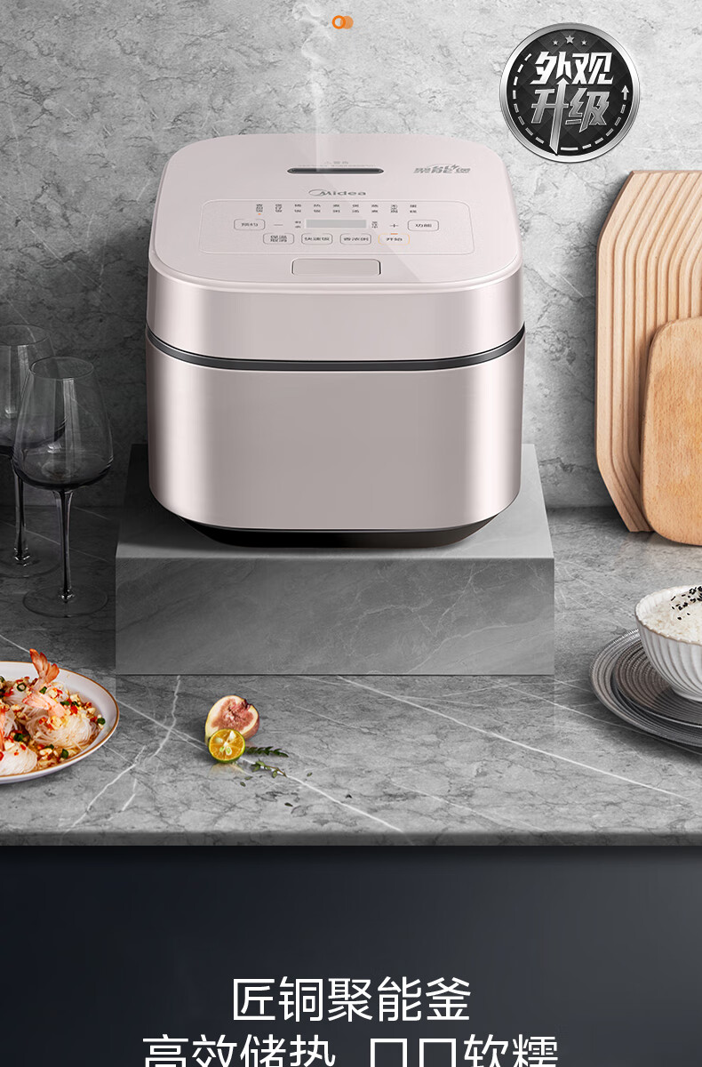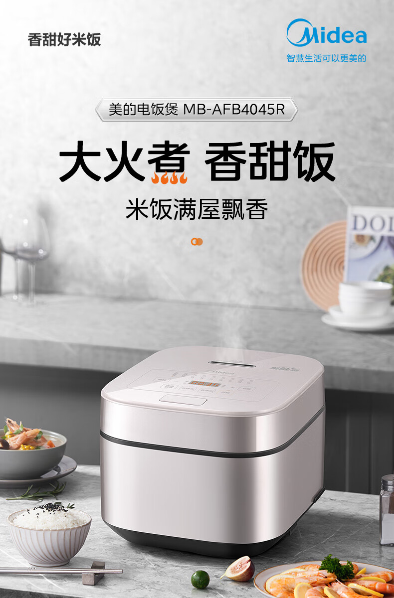 美的 (Midea)智能电饭煲饭锅4升匠铜聚能釜可拆洗内盖24小时预约定时MB-AFB4045R(线下同款)