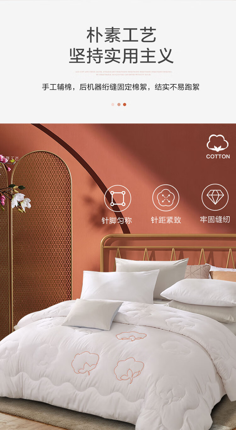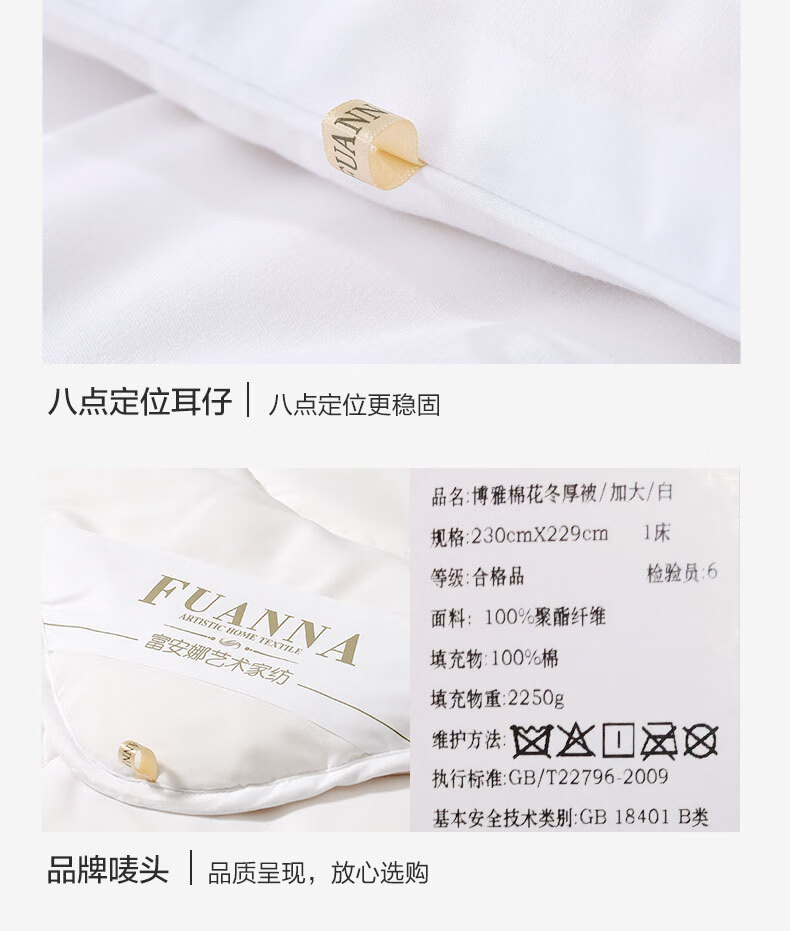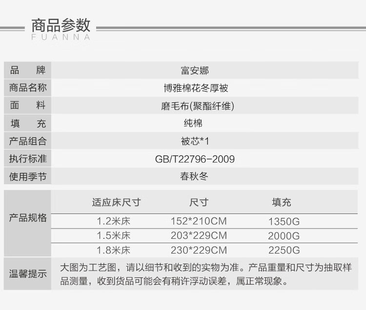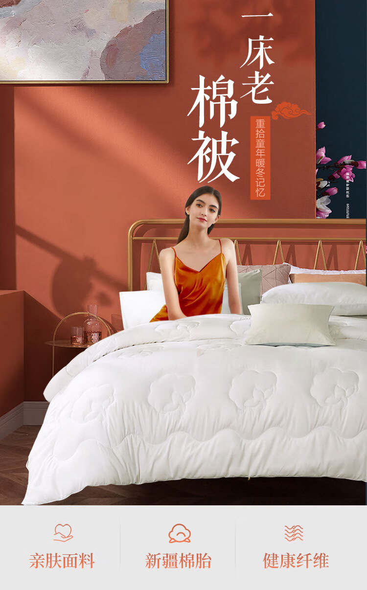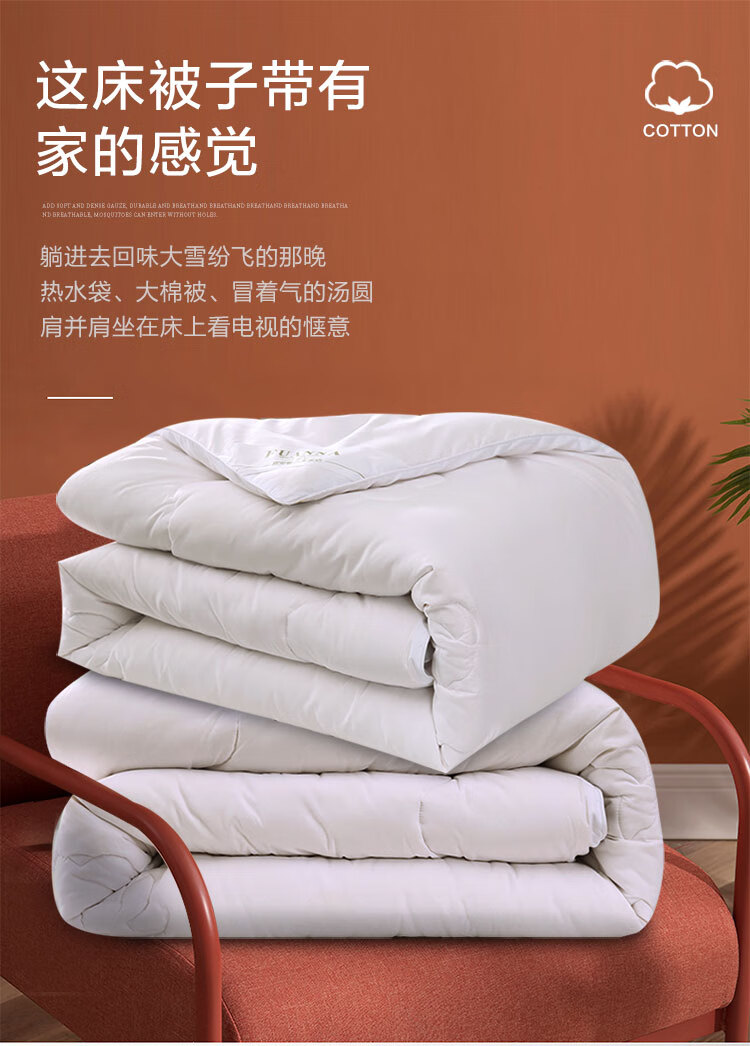 富安娜家纺被子 棉花被芯冬季加厚棉被保暖冬厚被 单人学生宿舍盖被 博雅 1.2m床(152*210cm)