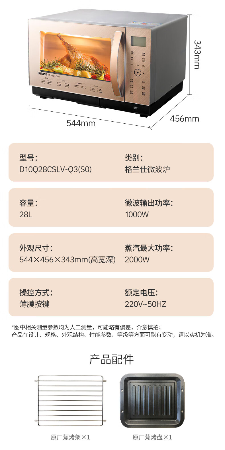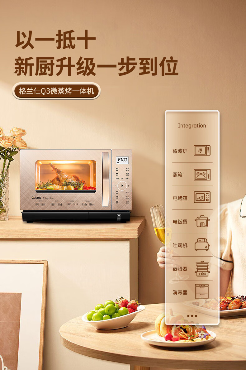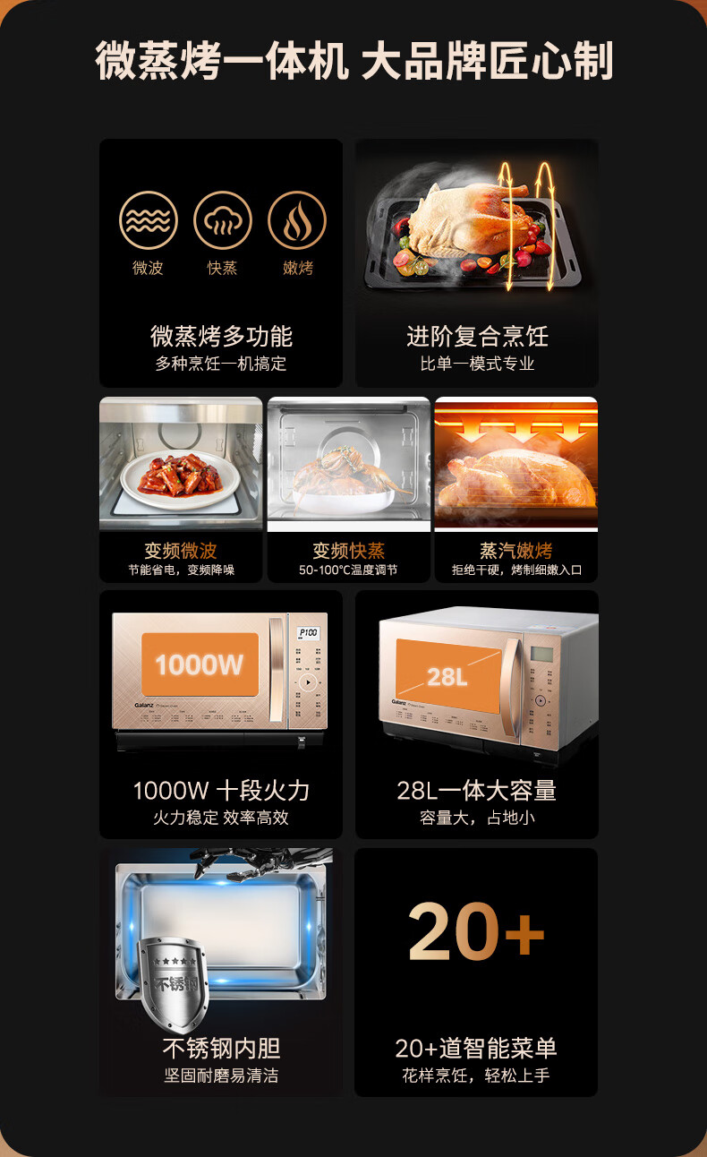 格兰仕微波炉 微蒸烤一体机 28升变频微波炉 直喷蒸汽 纯蒸 D10Q28CSLV-Q3(S0) (线下同款)