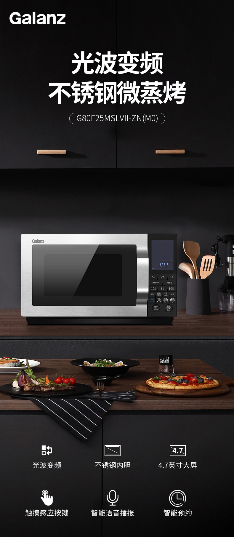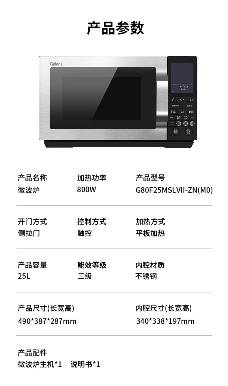 格兰仕微波炉家用光波炉烤箱一体机光波变频 25升大容量G80F25MSLVII-ZN(M0) (线下同款)