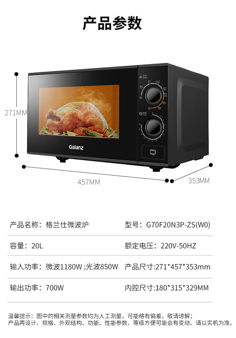 格兰仕微波炉光波炉 家用 解冻 操作简单G70F20N3P-ZS(W0)(线下同款)