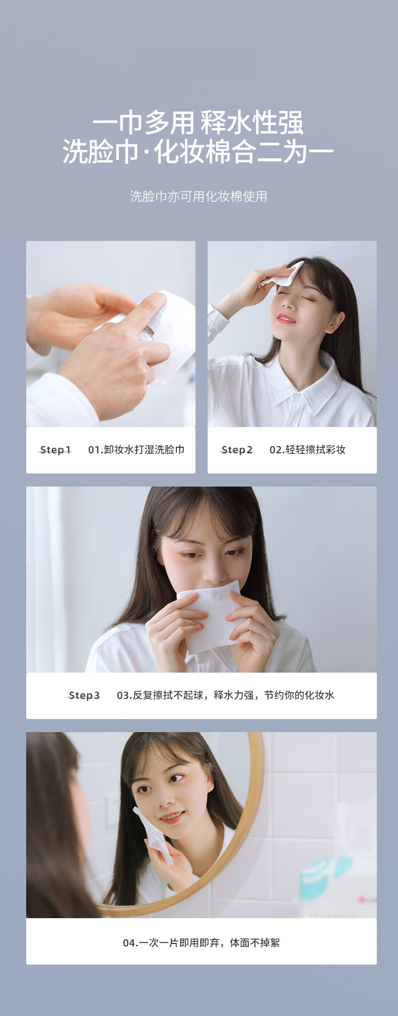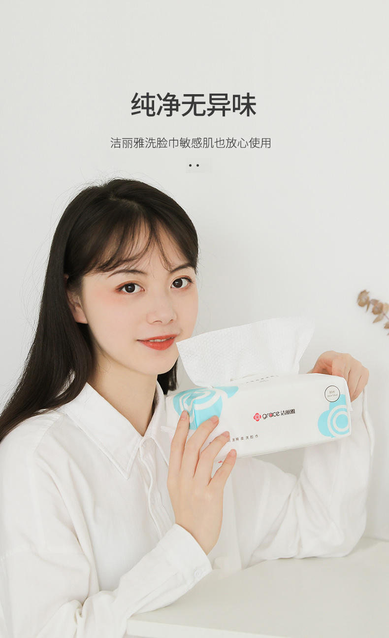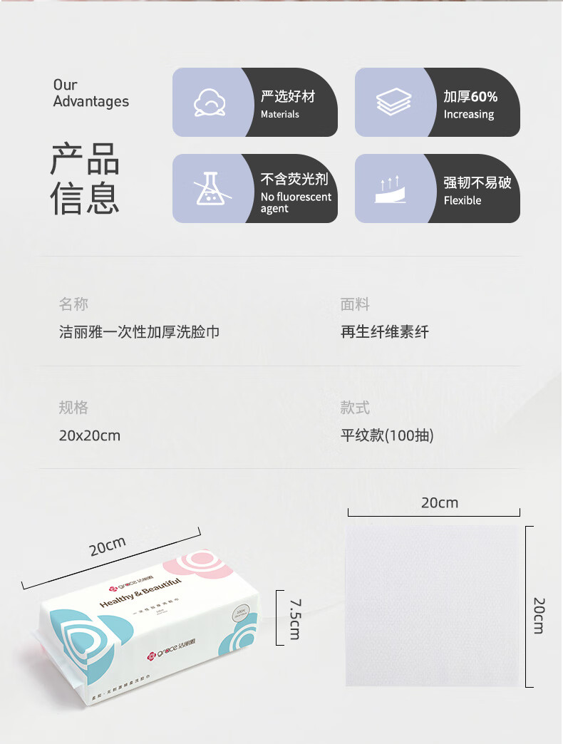 洁丽雅 Grace 棉柔巾居家差旅便携洁面巾 干湿两用 一次性洗脸毛巾 擦脸巾平纹款3包 20*20cm 100片/包