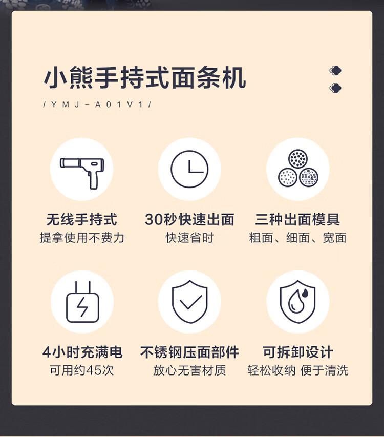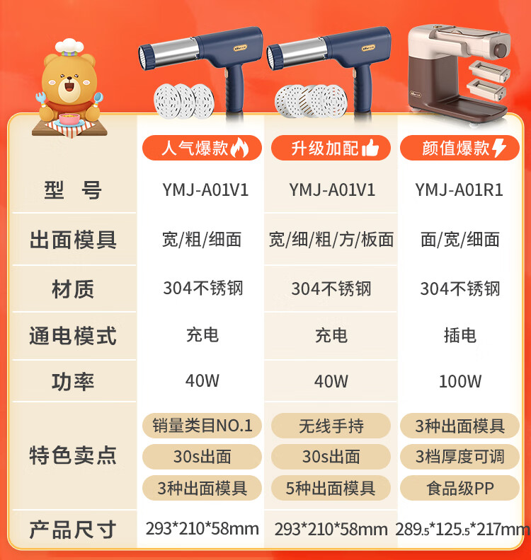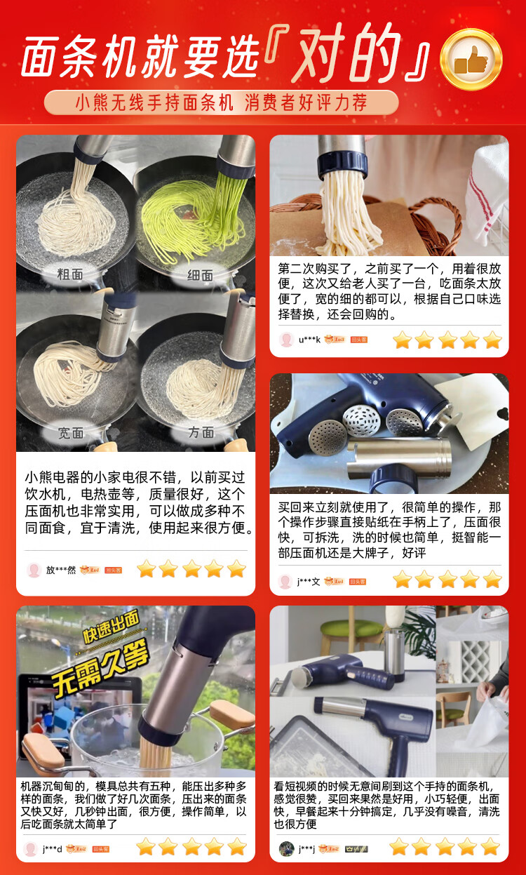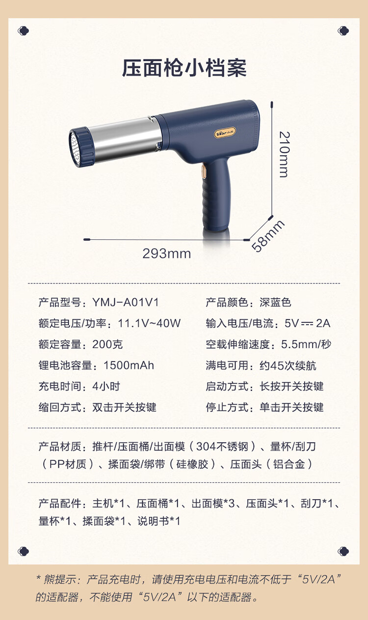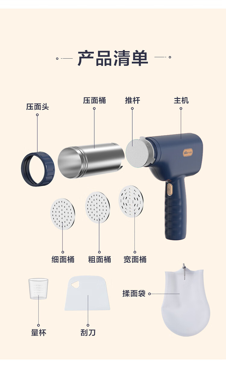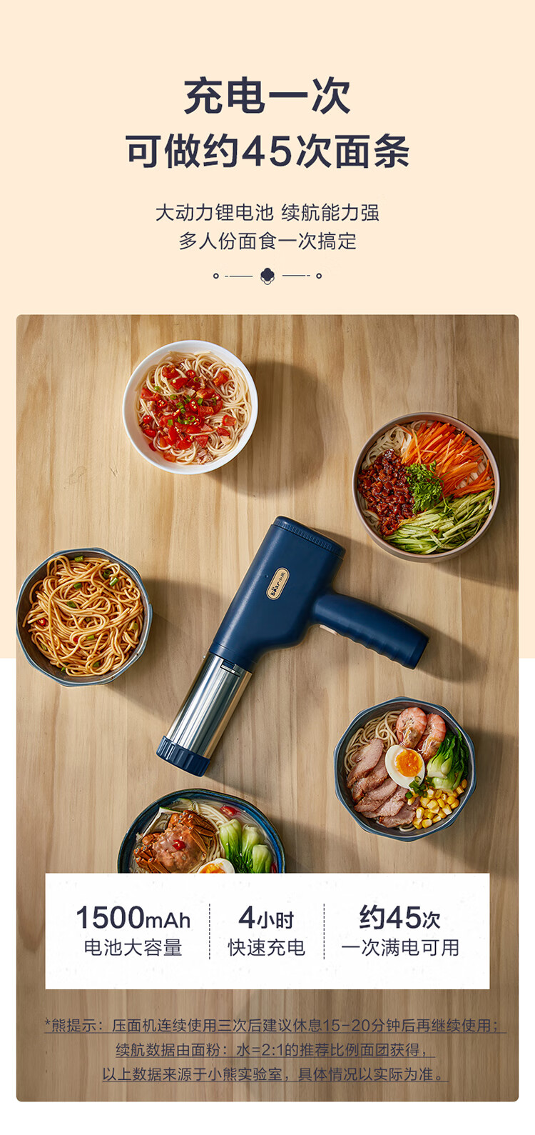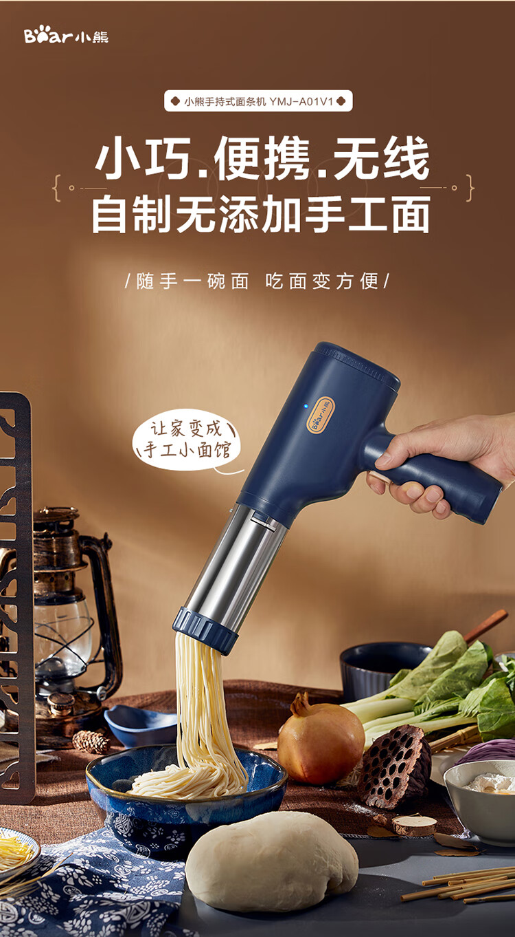 小熊(Bear )面条机家用压面机手持压面枪小型电动自动不锈钢压面条机 YMJ-A01V1