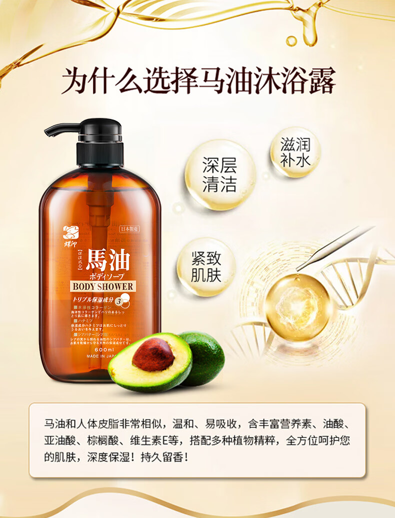 蝶印 日本原装进口 北海道马油 保湿精华沐浴露 600ml