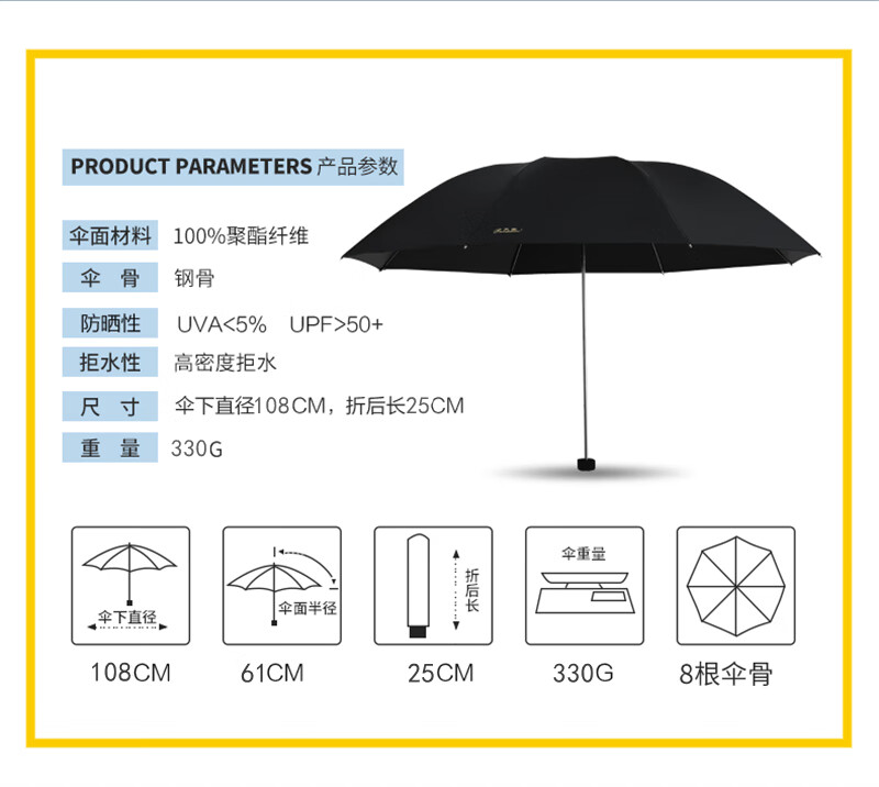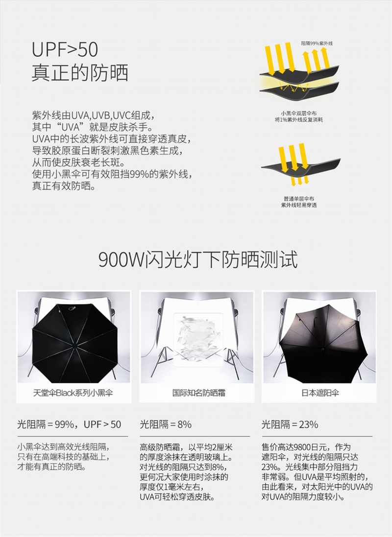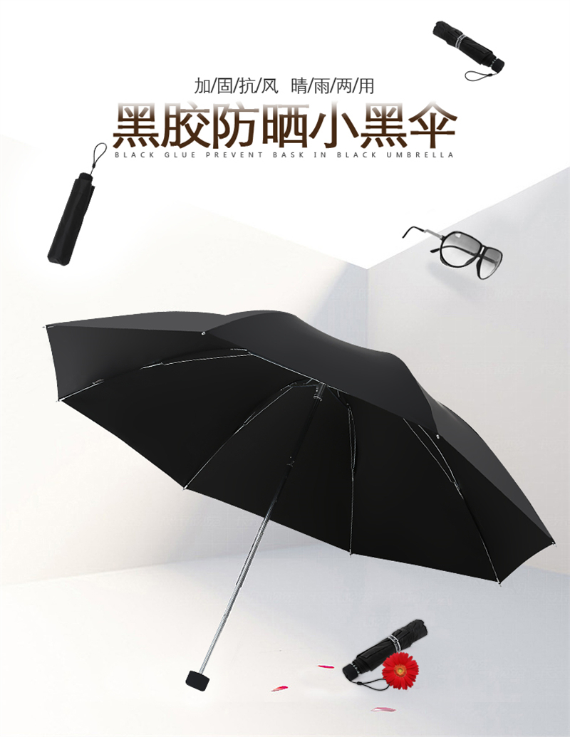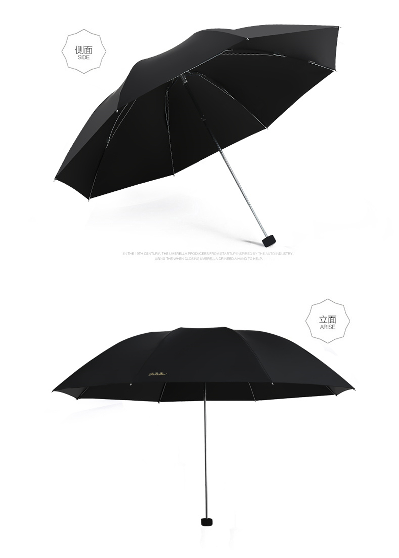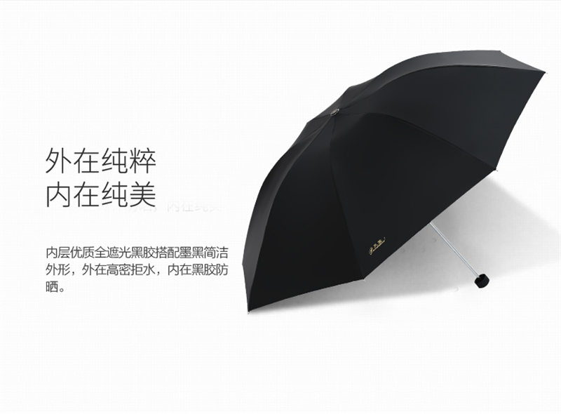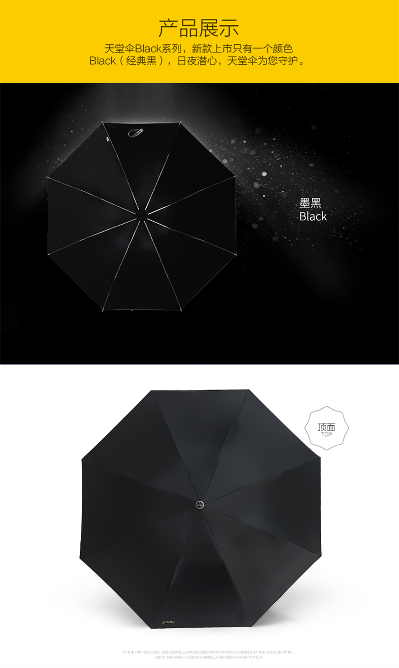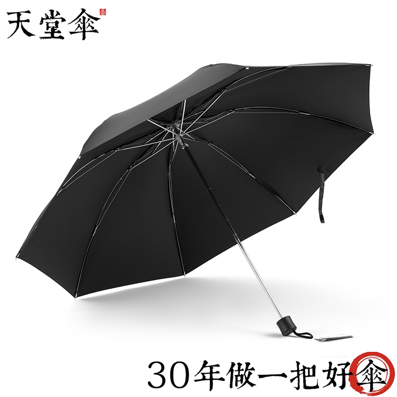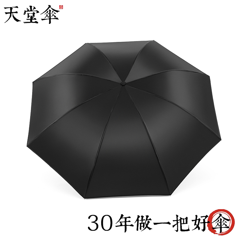 天堂伞 30965DLN 全遮光防晒加大三折晴雨伞 黑色/把