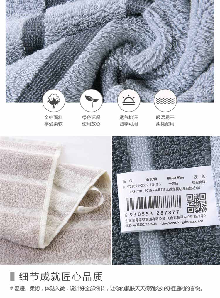 金号 HY1698扶桑寄语毛巾系列 60*30cm 棕色+灰色双条毛巾彩盒装