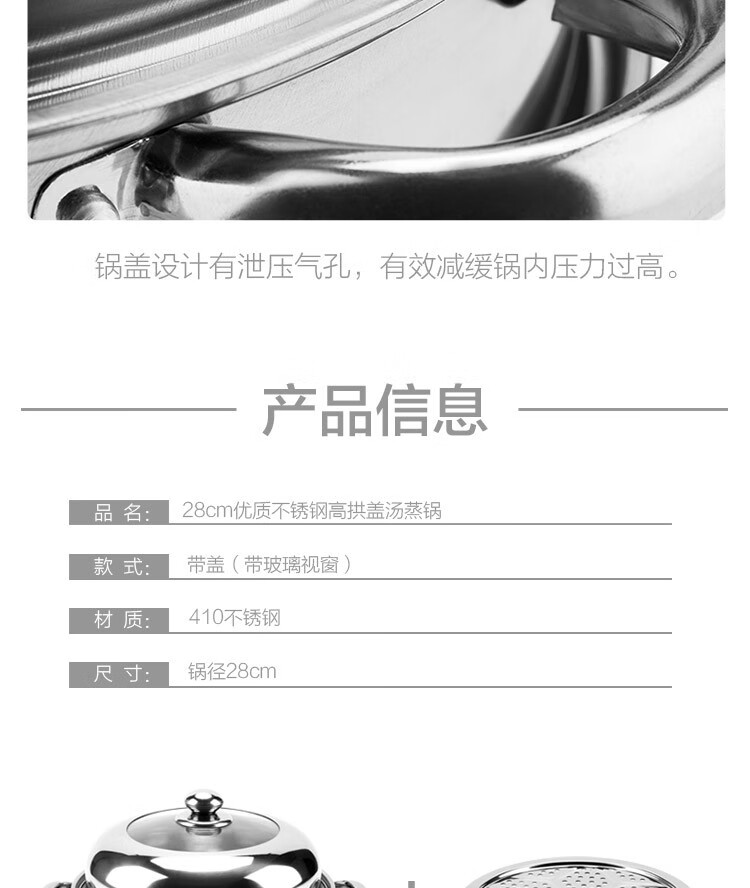 NOKA 28CM优质不锈钢高拱盖汤蒸锅 NOKA-20770