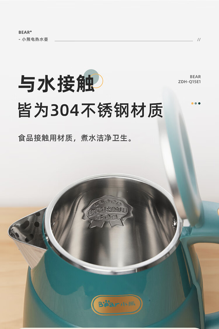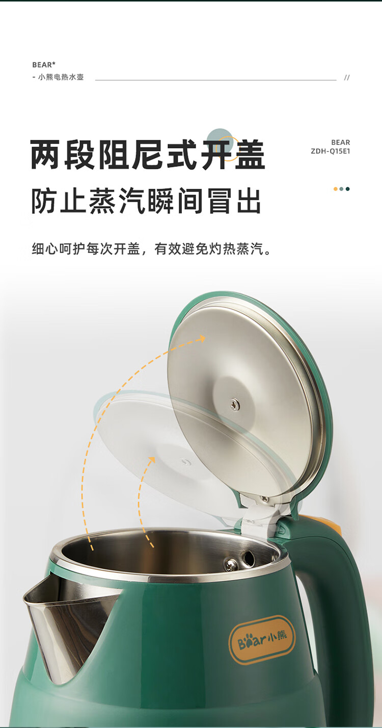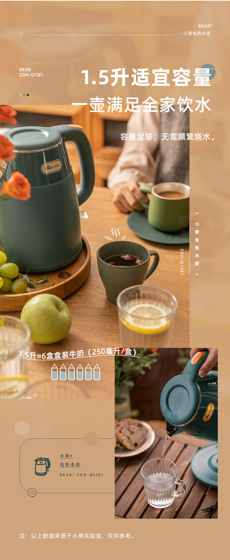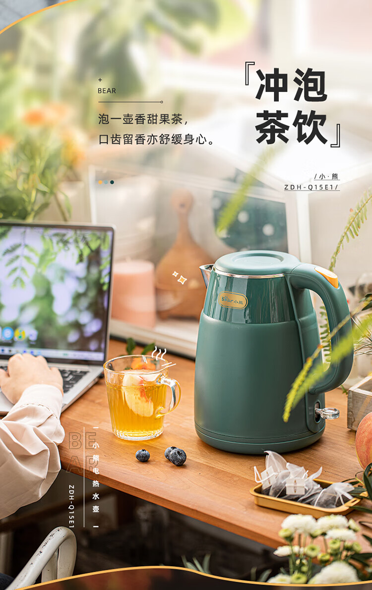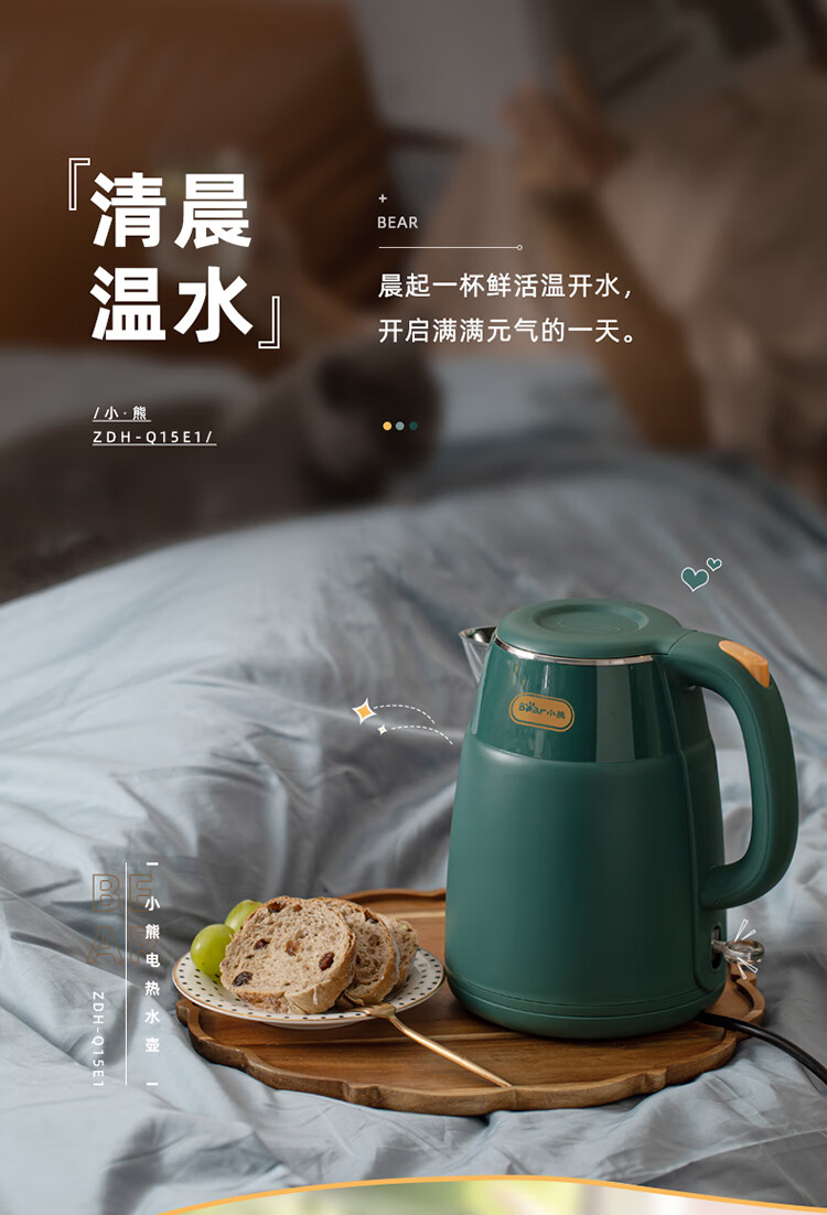 小熊烧水壶电水壶保温热水壶电热水壶开水壶1.5L大容量养生 ZDH-Q15E1【企业采购】支持一件代发