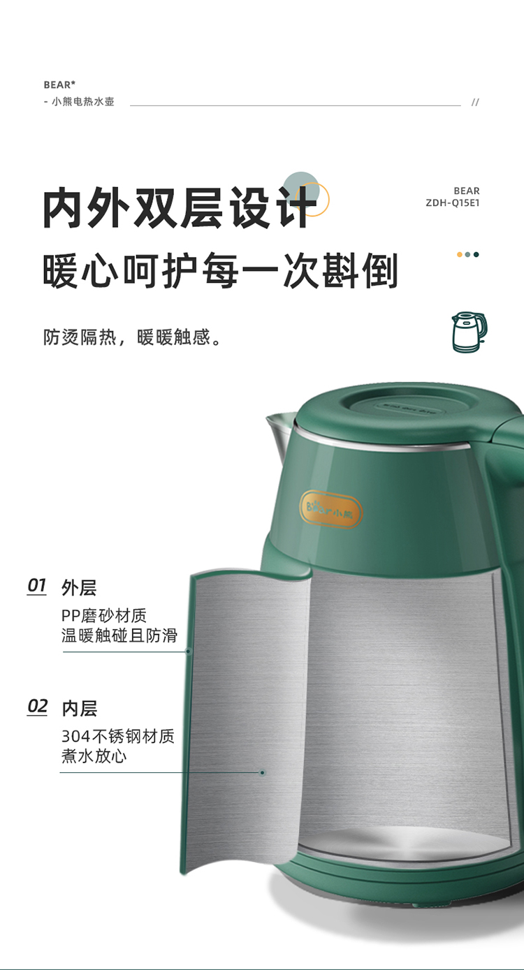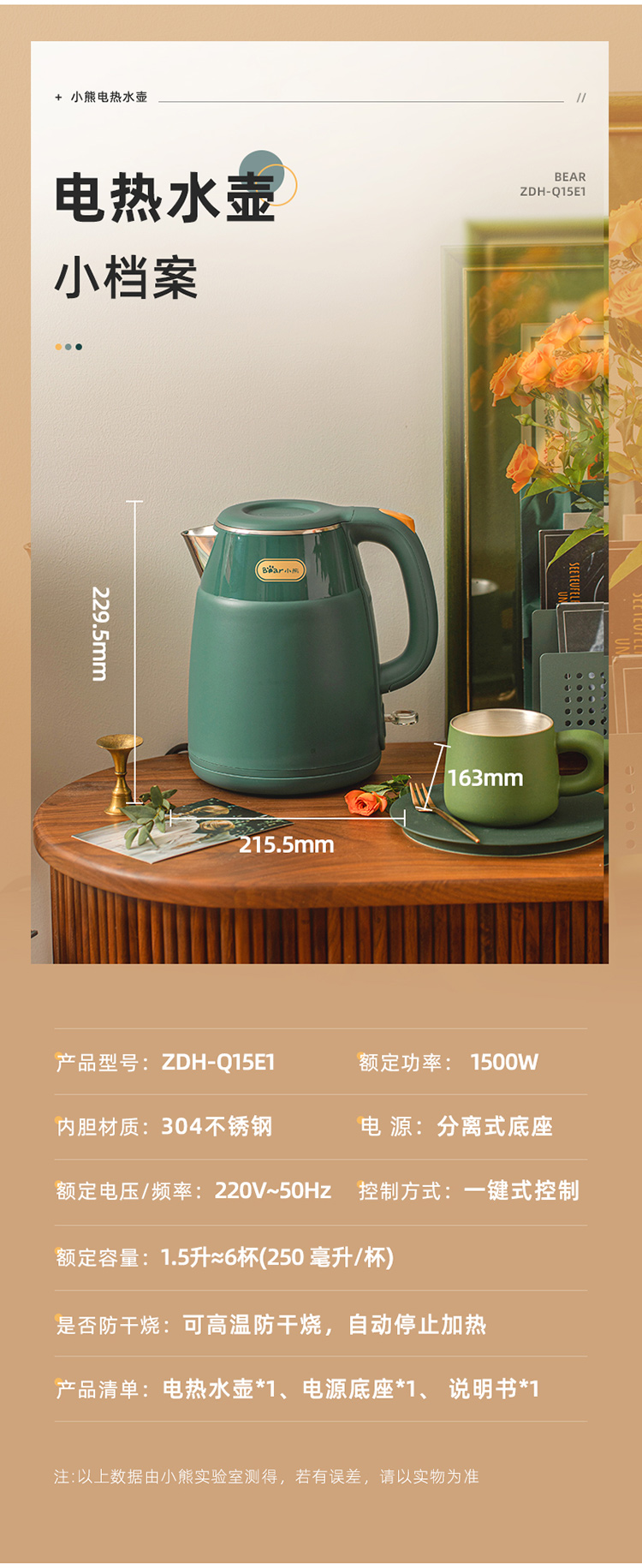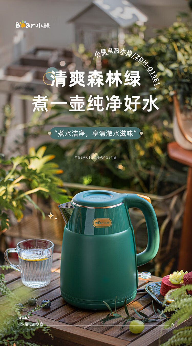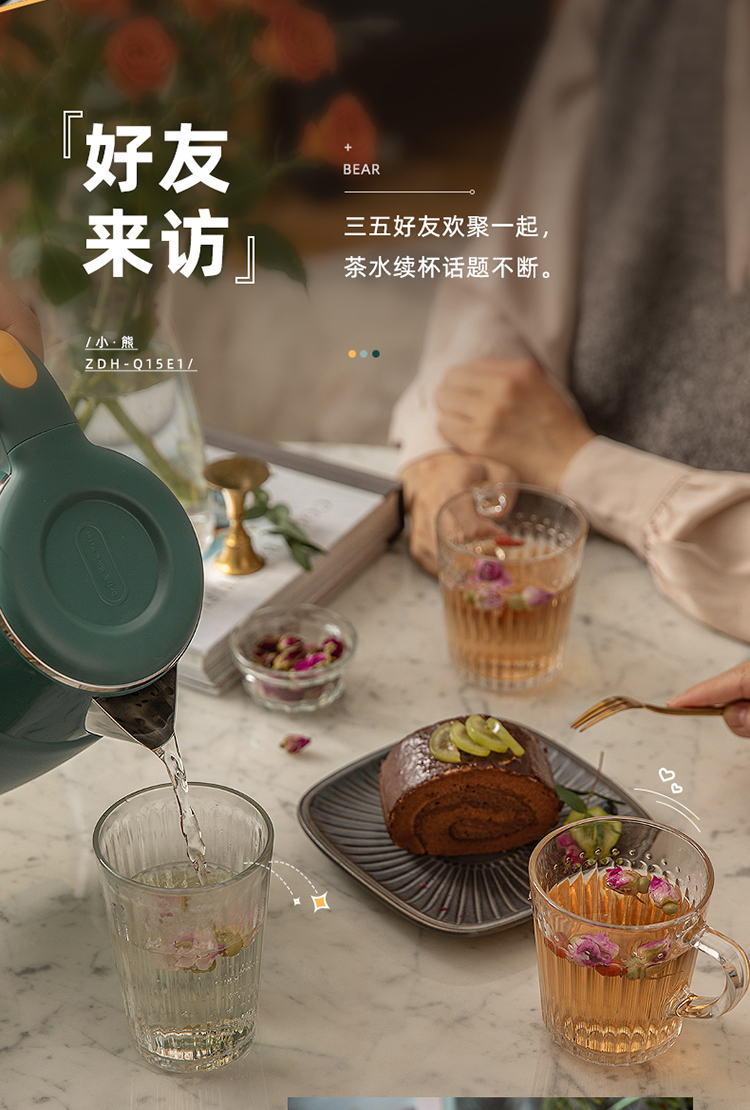 小熊烧水壶电水壶保温热水壶电热水壶开水壶1.5L大容量养生 ZDH-Q15E1【企业采购】支持一件代发
