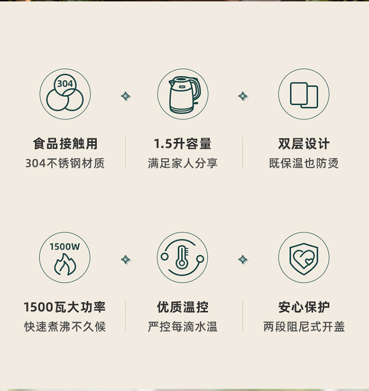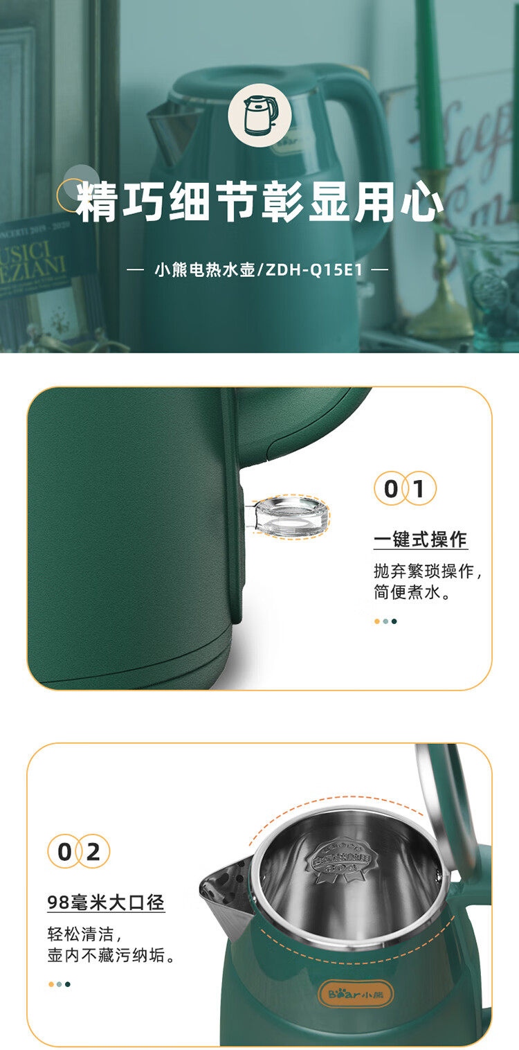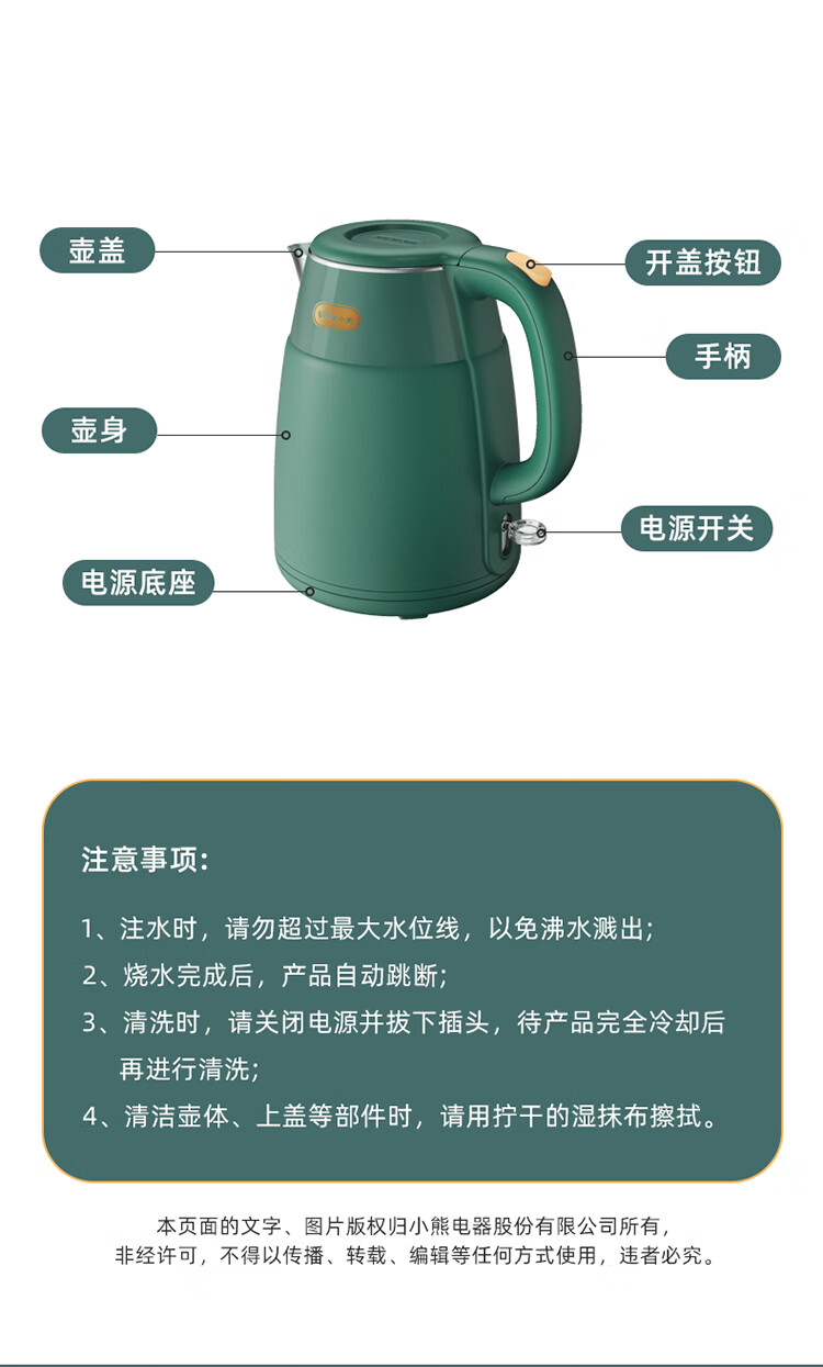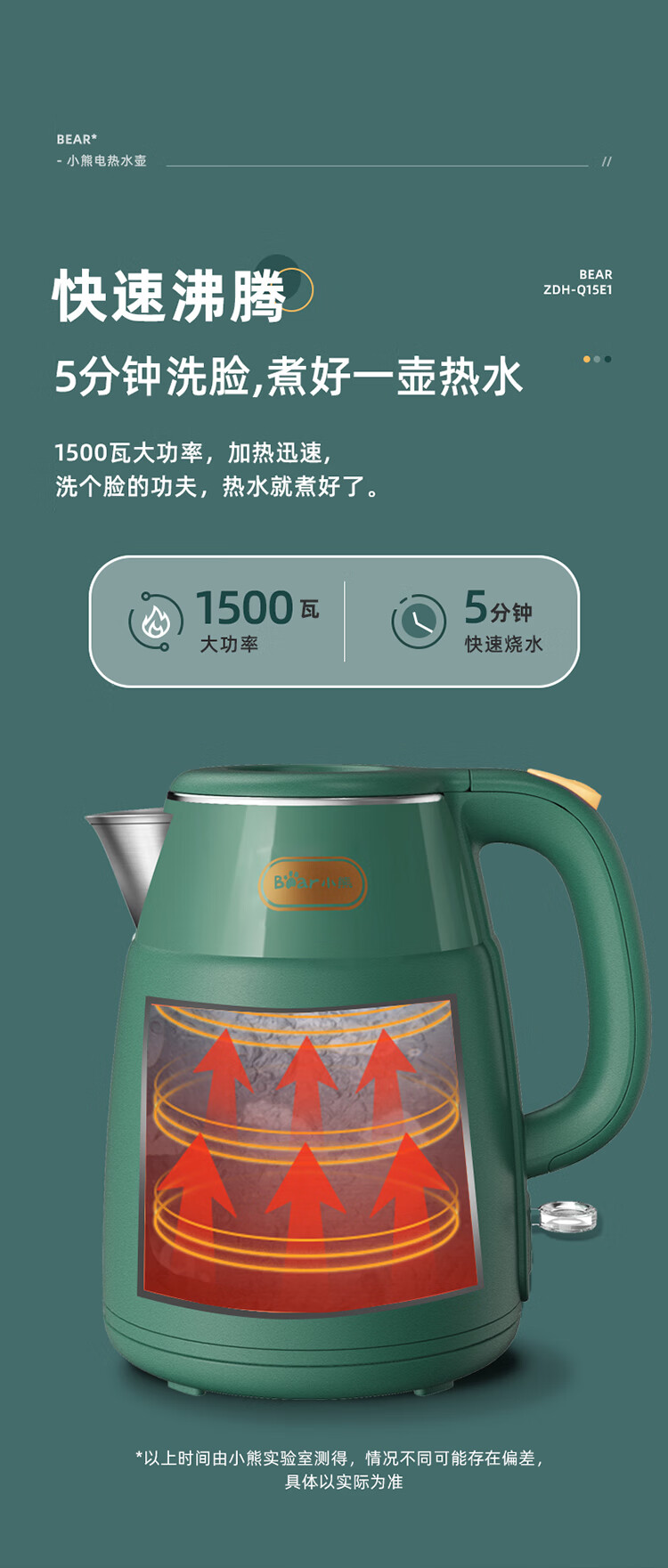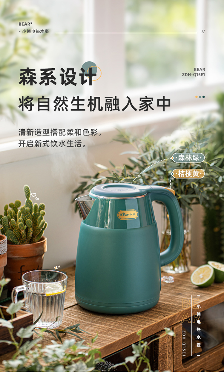 小熊烧水壶电水壶保温热水壶电热水壶开水壶1.5L大容量养生 ZDH-Q15E1【企业采购】支持一件代发