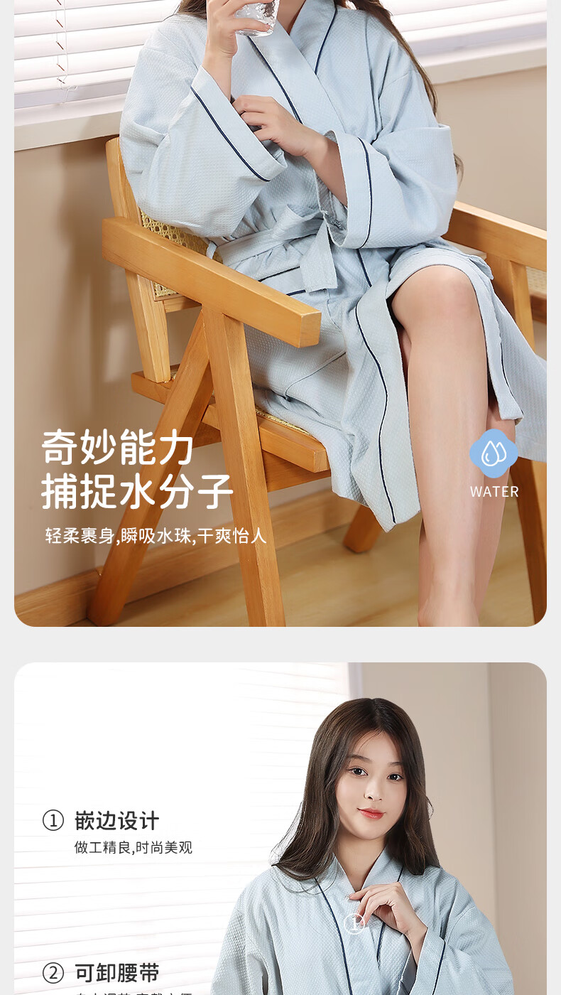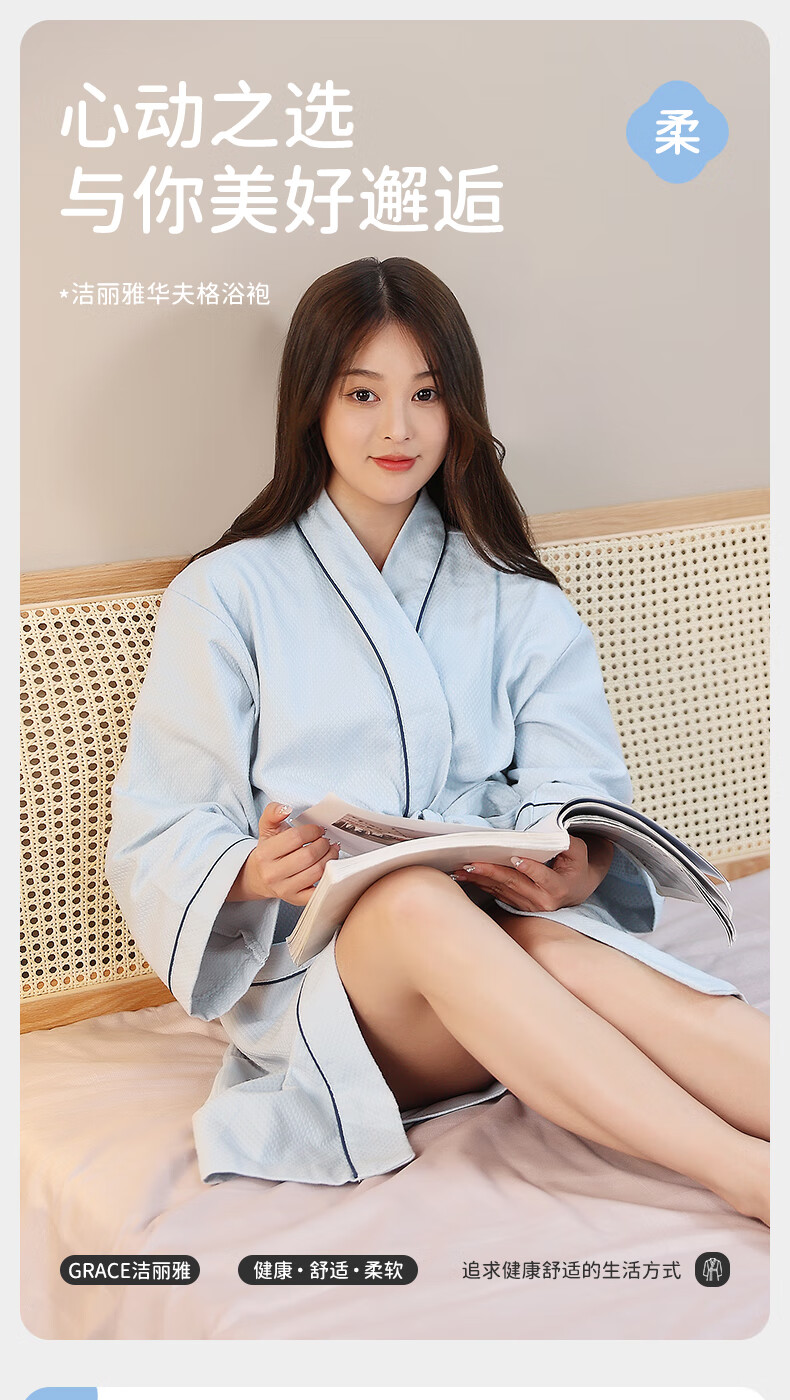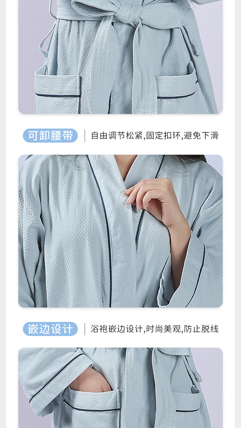 洁丽雅 五星级酒店浴袍情侣纯棉柔软吸水浴衣全棉汗蒸服男女通用月灰 L