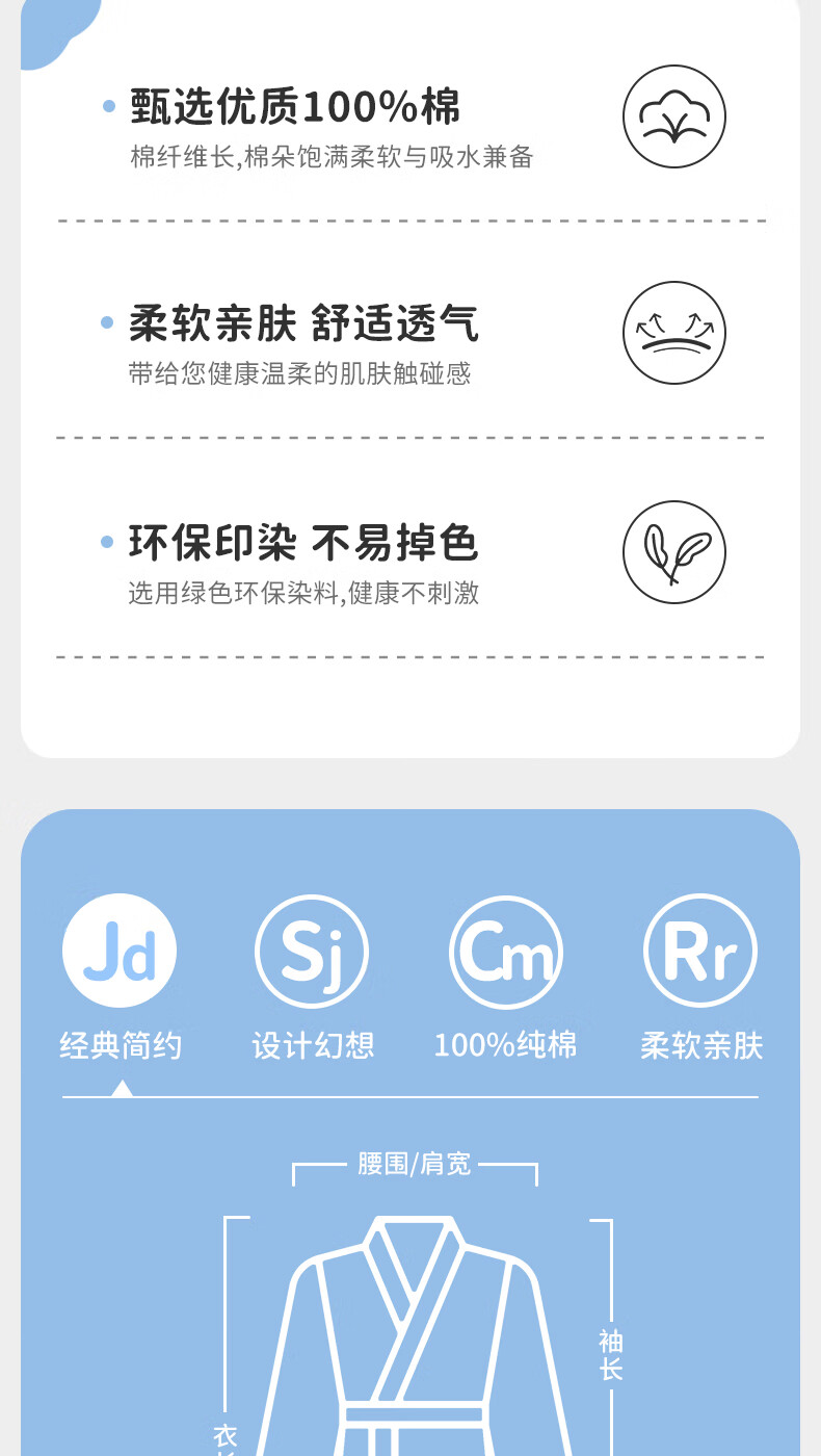 洁丽雅 五星级酒店浴袍情侣纯棉...