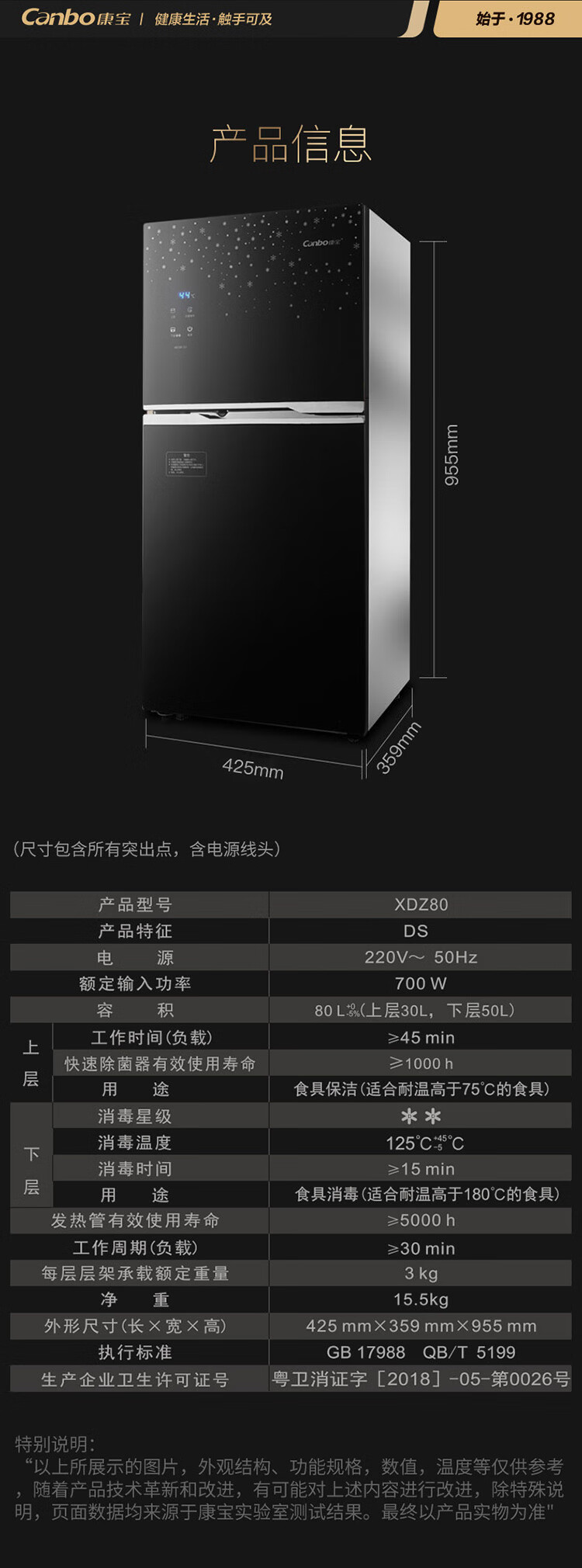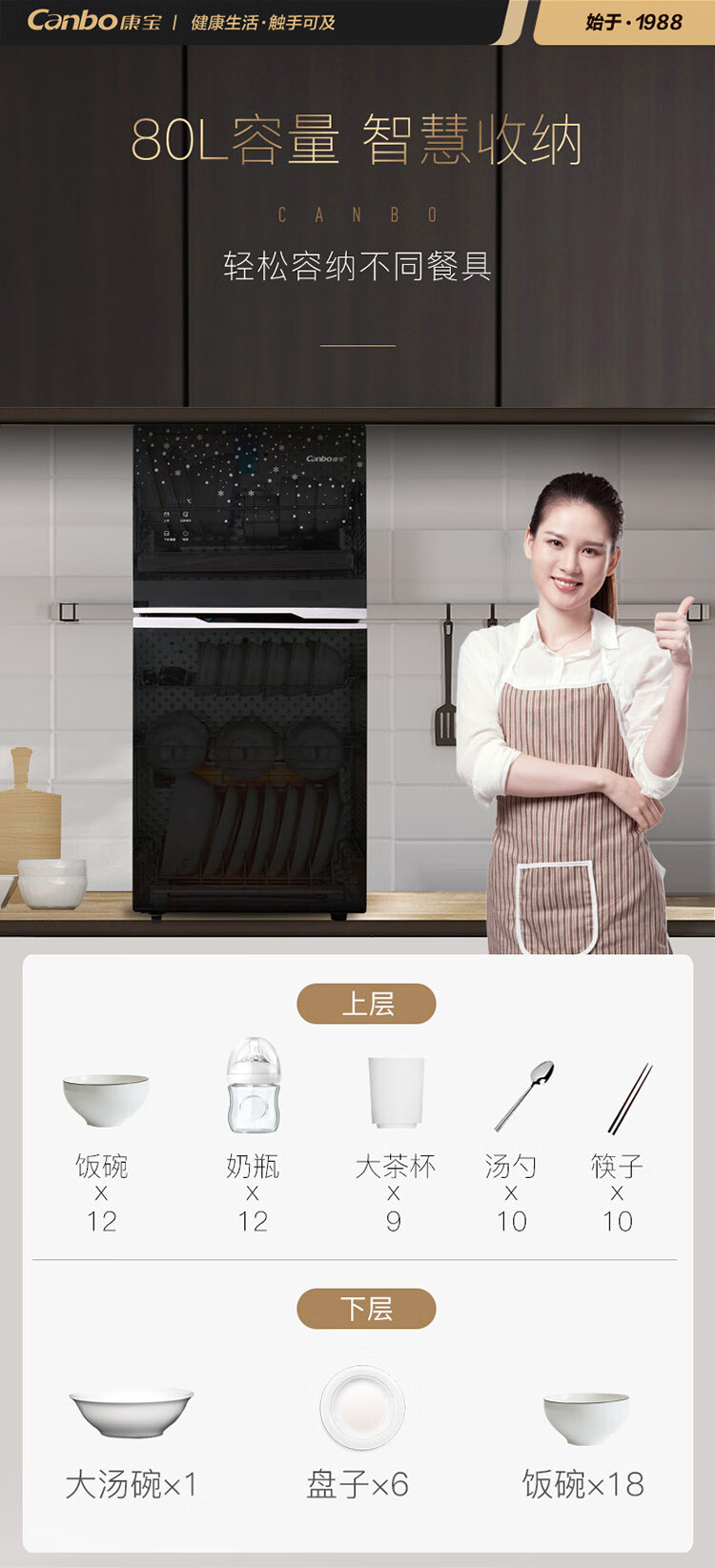 康宝 Canbo XDZ80-DS立式消毒柜 双门大容量高温二星级商用厨房碗筷消毒碗柜