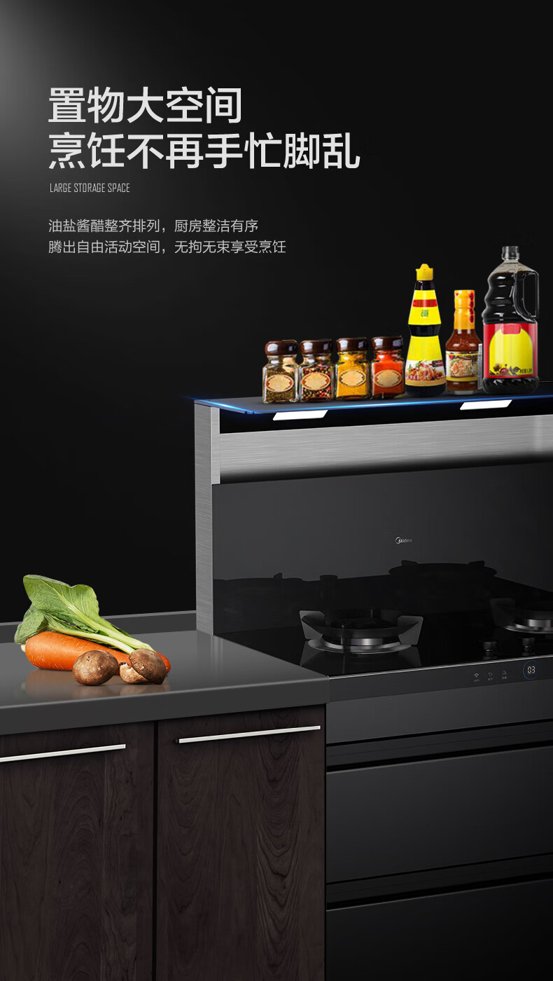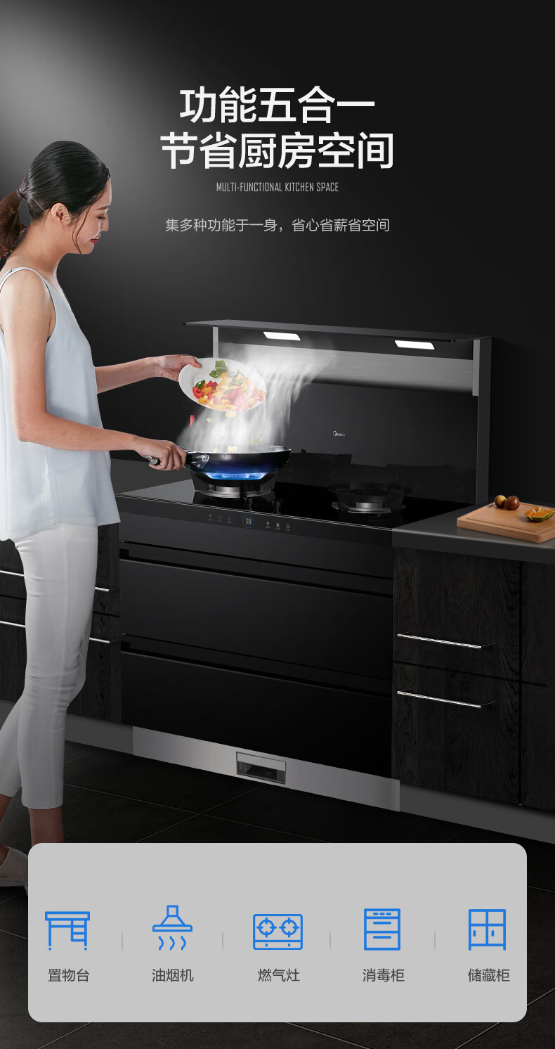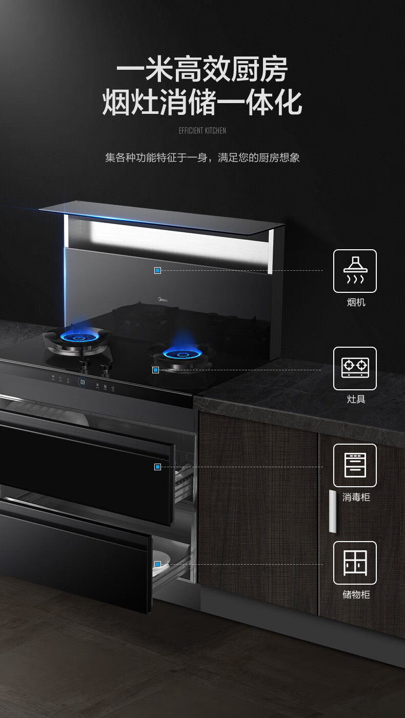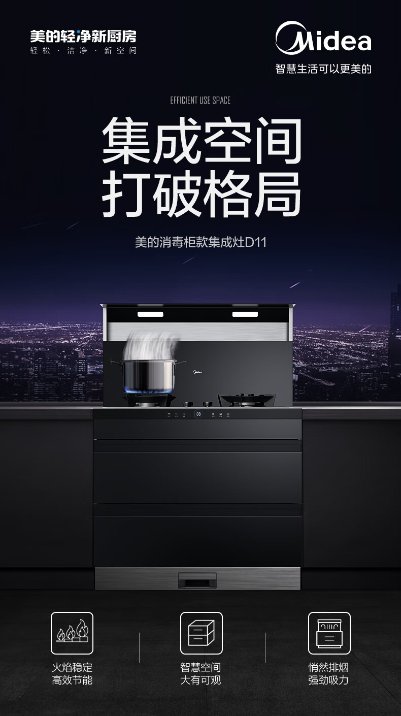 美的(Midea)集成灶 油烟机 燃气灶 消毒柜 储物柜 集成灶一体灶 18立方大吸力 4.8大火力 液化气 D11