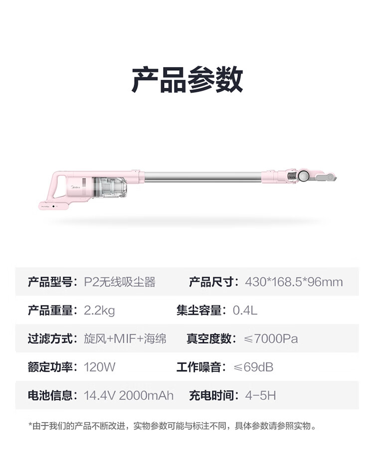 美的(Midea)吸尘器家用 P2 无线手持 小型大功率无线无绳宠物家庭适用