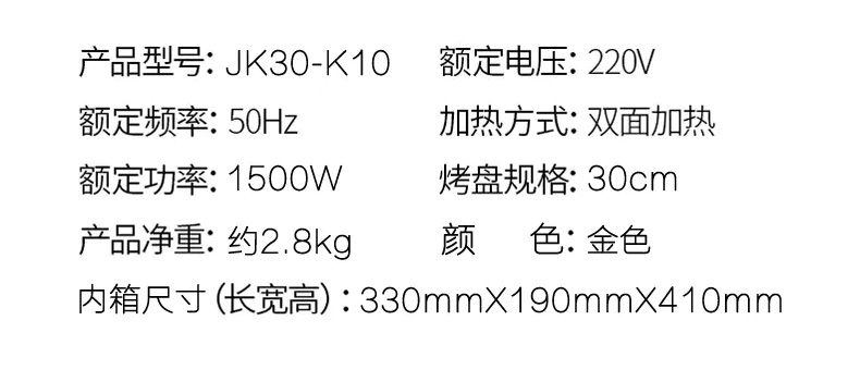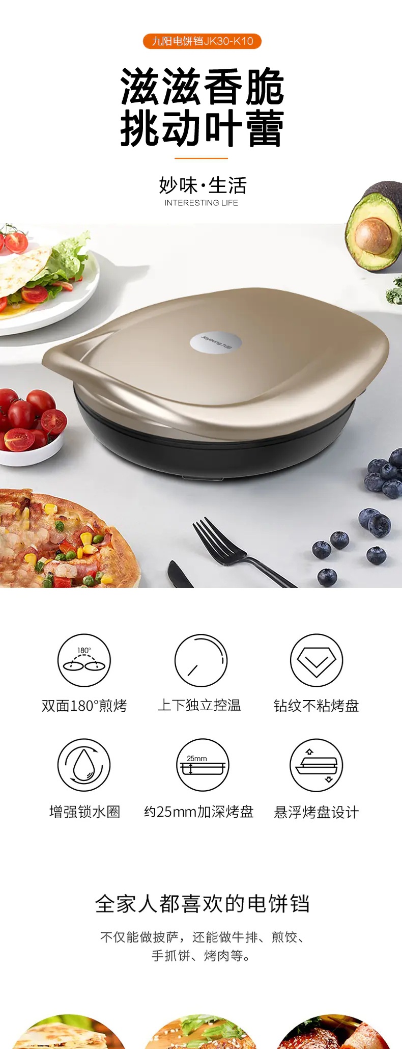 九阳(Joyoung)电饼铛多功能家用煎烤机双面悬浮烙饼机加深烤盘JK30-K10(线下同款)