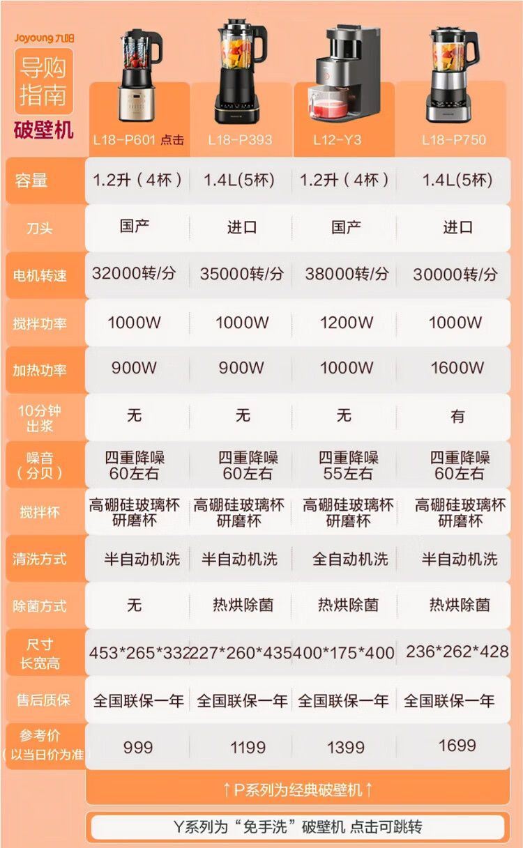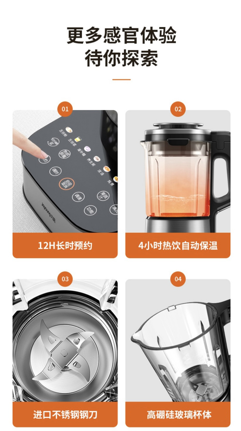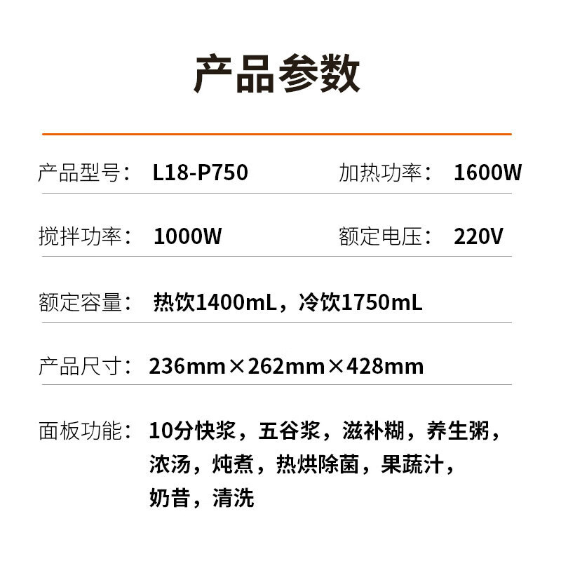 九阳(Joyoung)破壁机家用低音预约加热豆浆机料理机早餐机绞肉机辅食机L18-P750 一机双杯【天空系列】