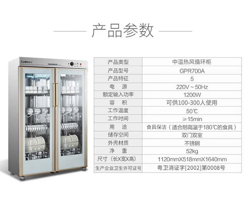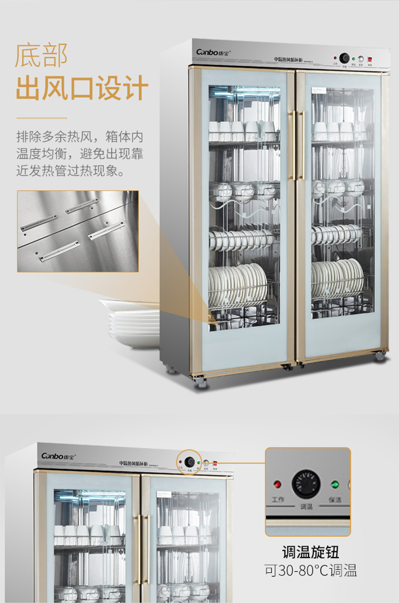 康宝(Canbo) 中温热风循环消毒柜 商用立式 大容量双门不锈钢碗柜 酒店食堂饭店保洁柜GPR700A-5一价无忧