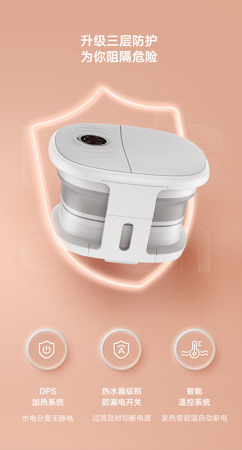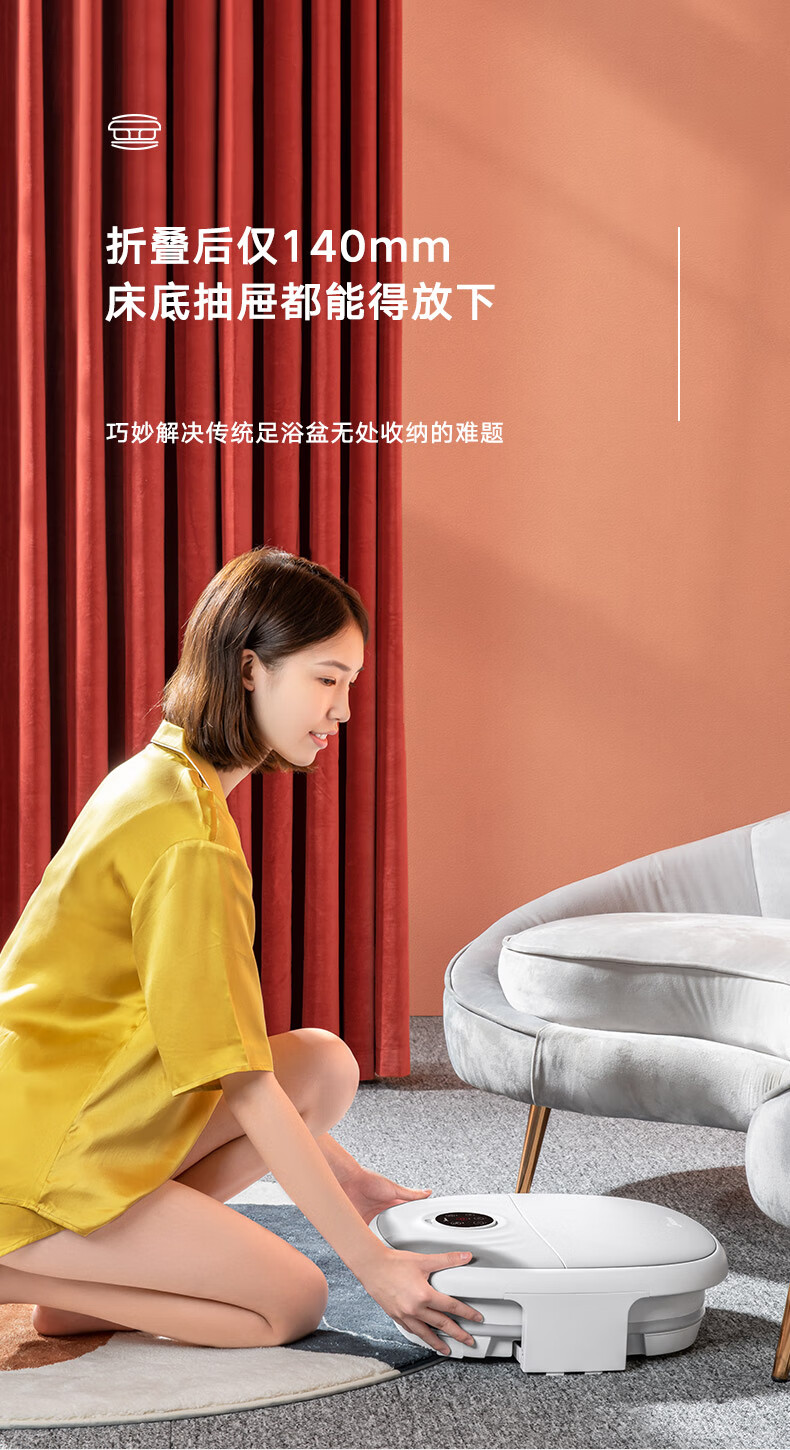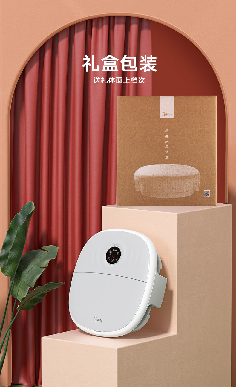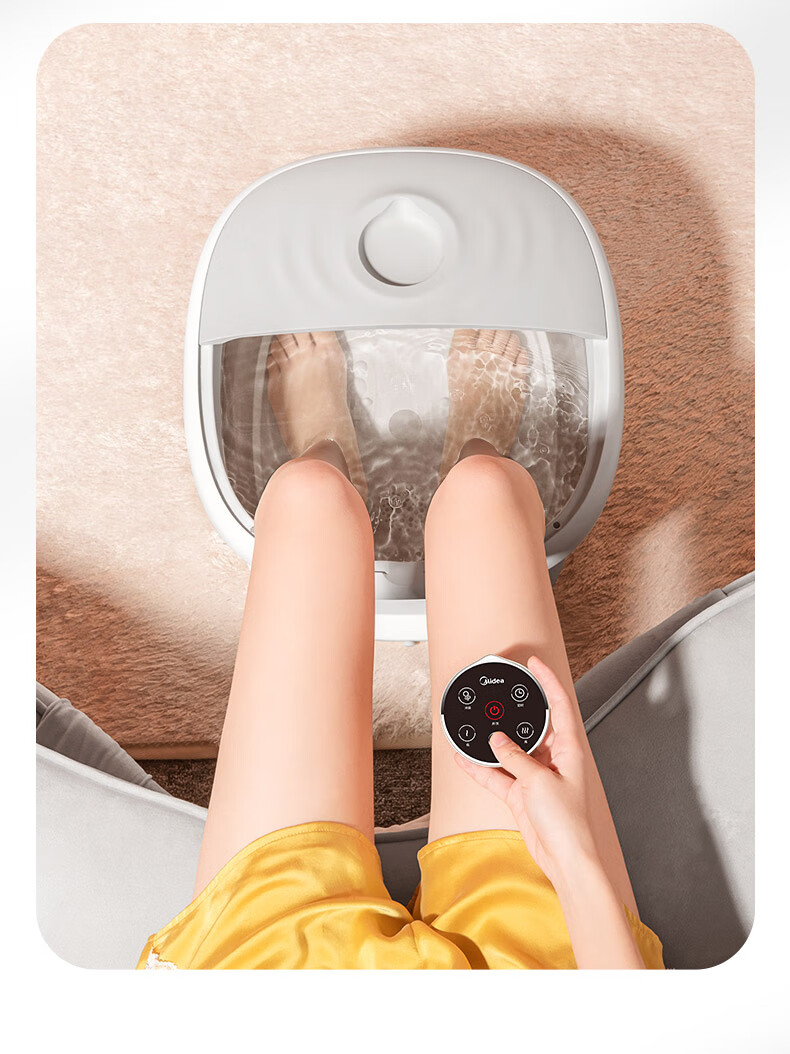美的(Midea)折叠智能足浴盆穴位按摩漏电保护开关泡脚盆足疗按摩器泡脚桶洗脚盆 MK-AJ0101星空灰