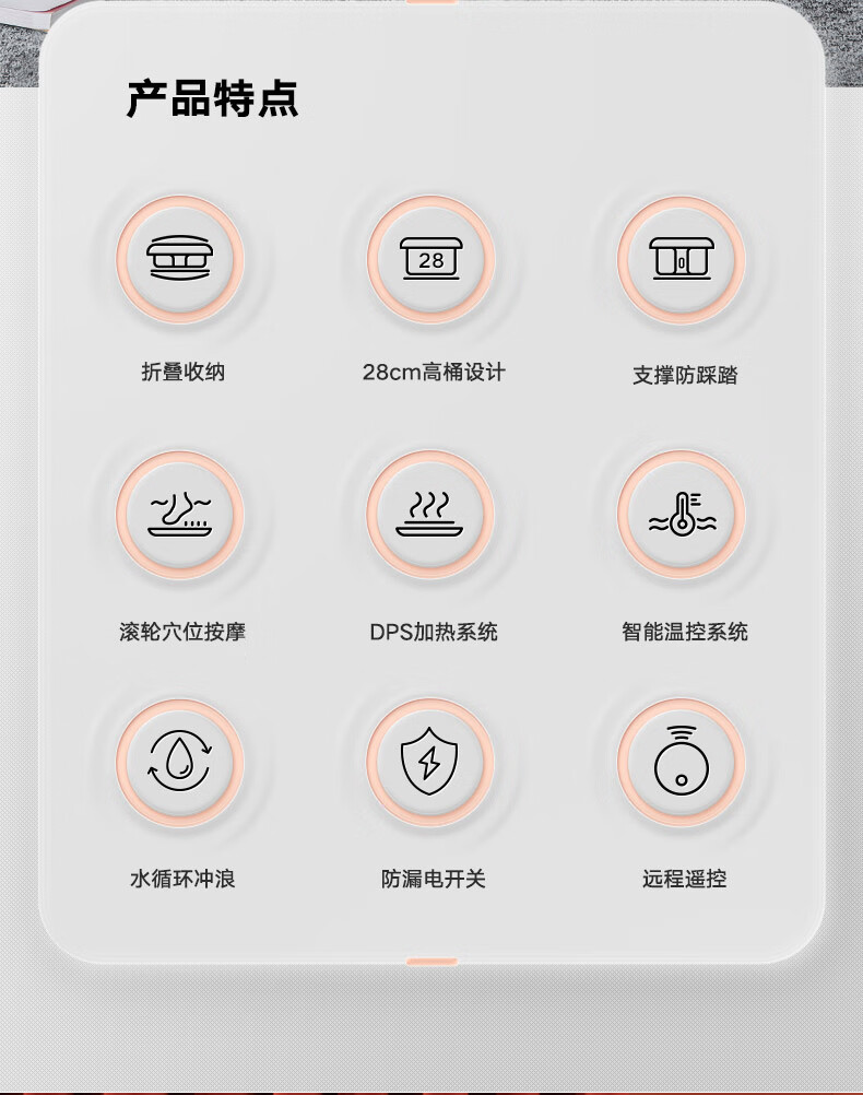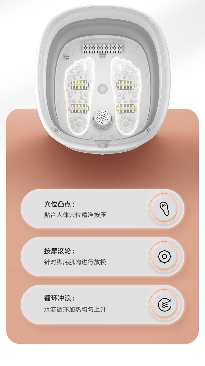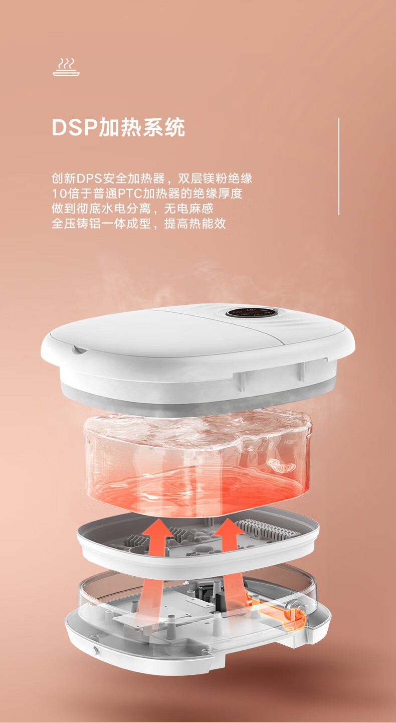 美的(Midea)折叠智能足浴盆穴位按摩漏电保护开关泡脚盆足疗按摩器泡脚桶洗脚盆 MK-AJ0101星空灰