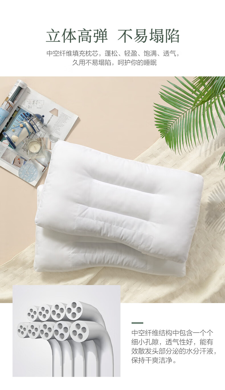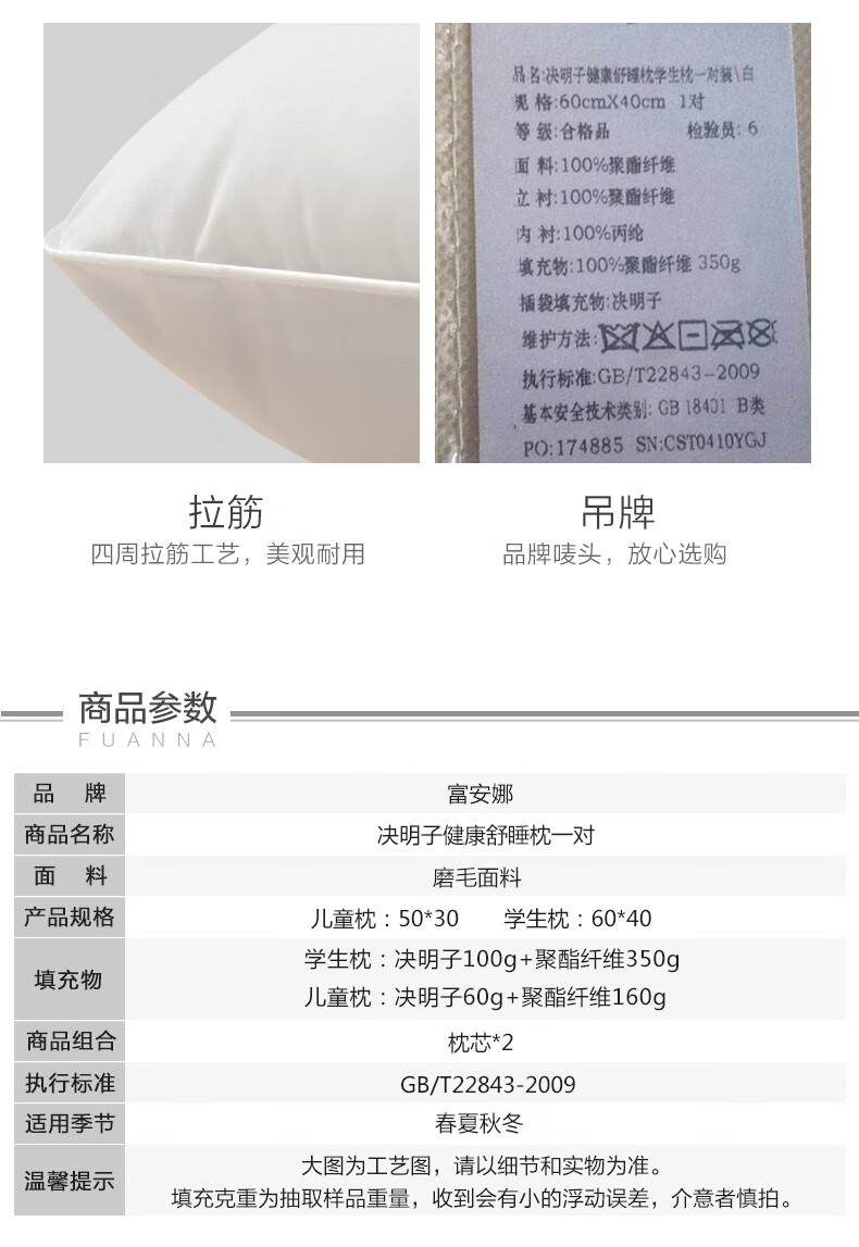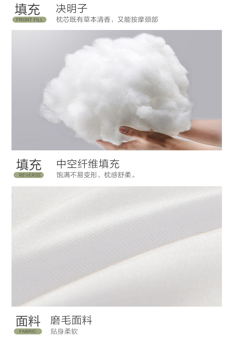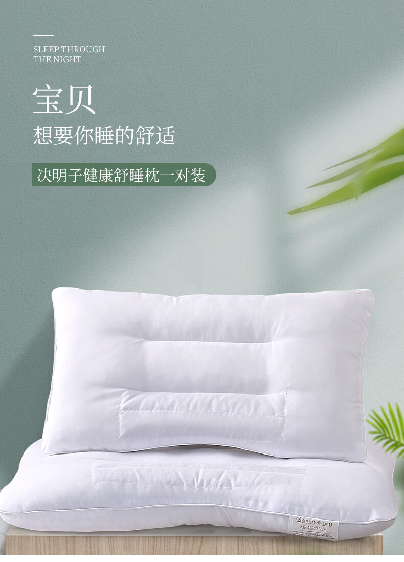 富安娜枕头芯颈椎枕决明子草本枕芯学生枕头套装 一对装60*40cm