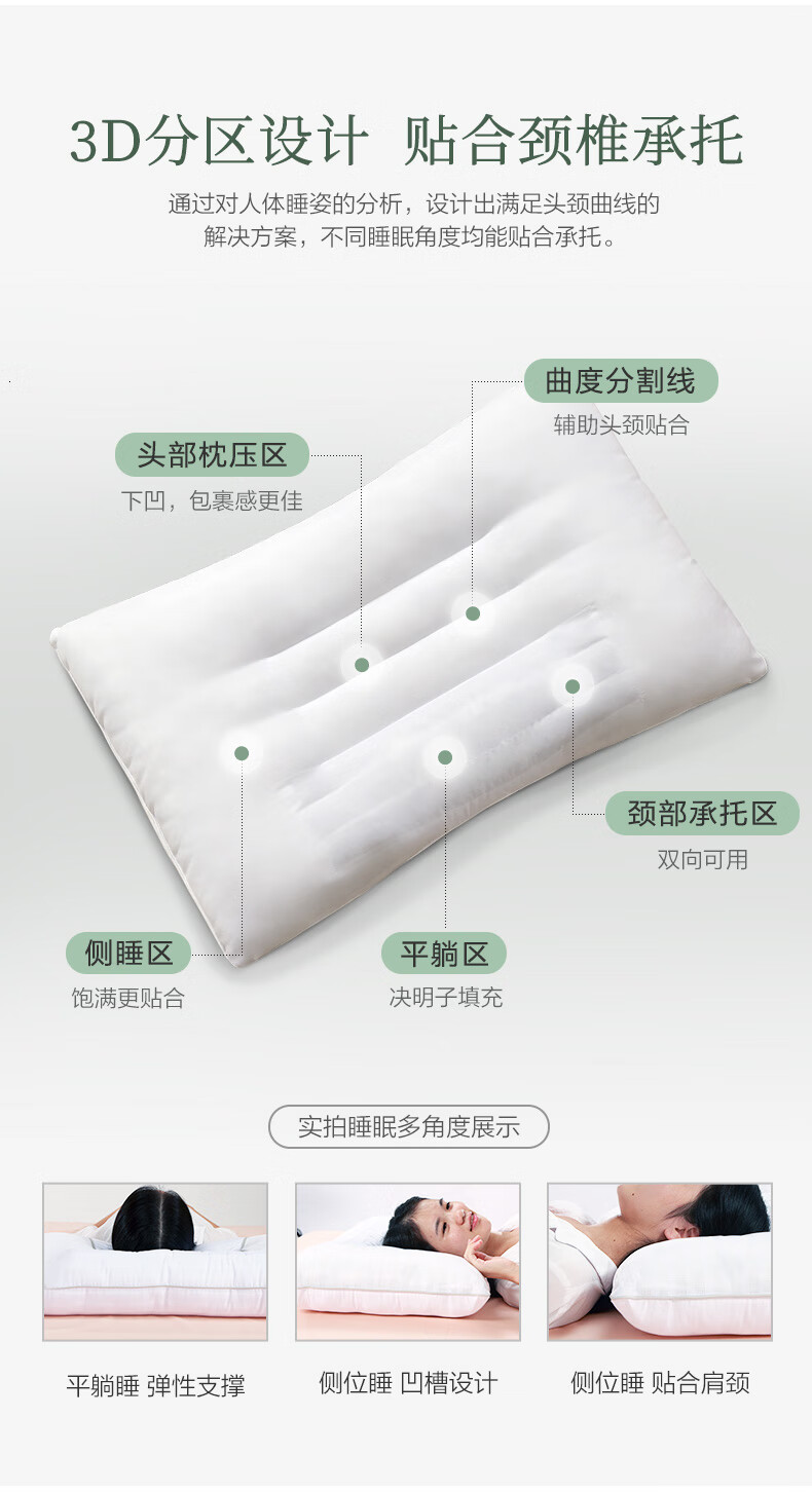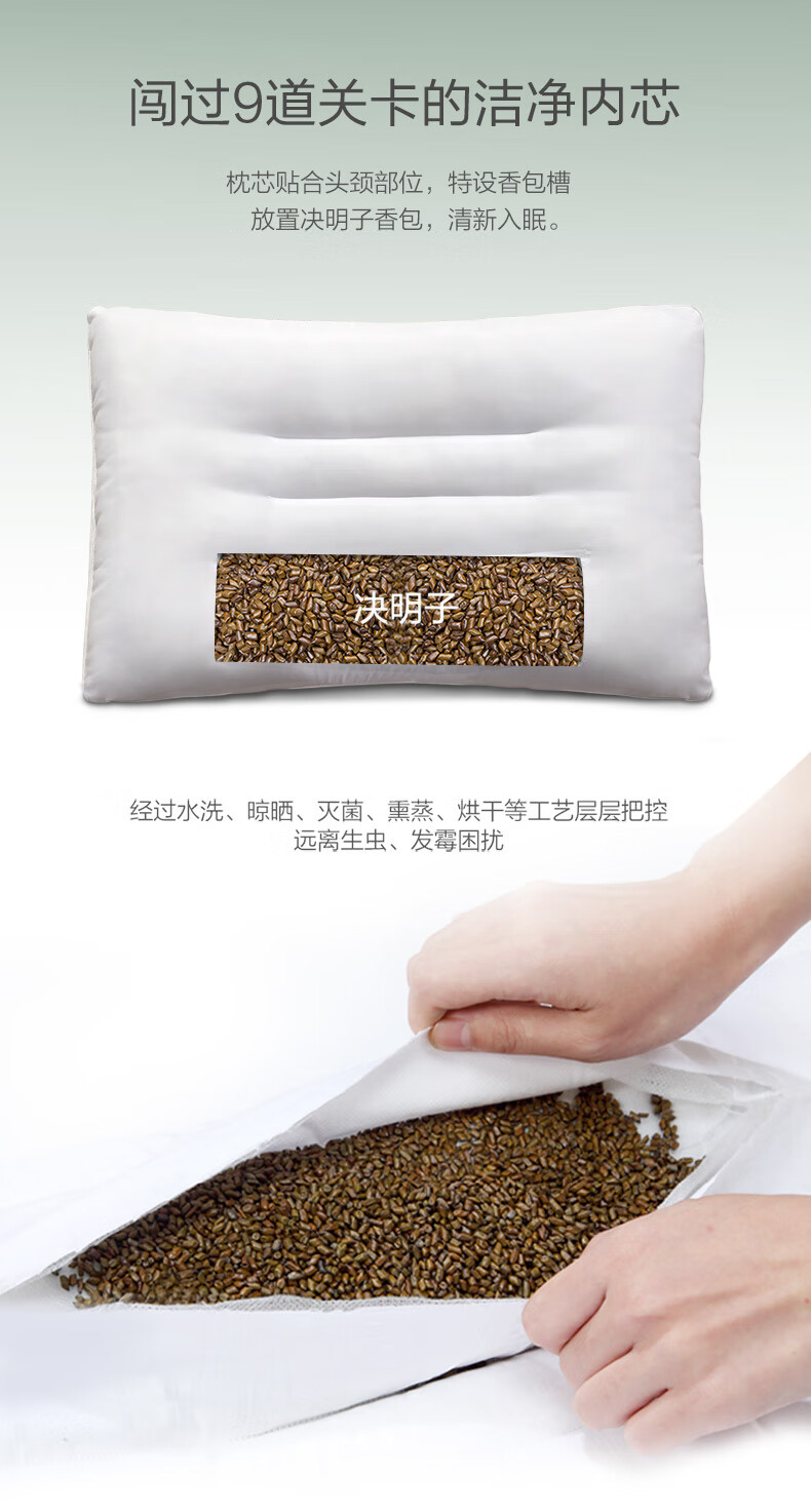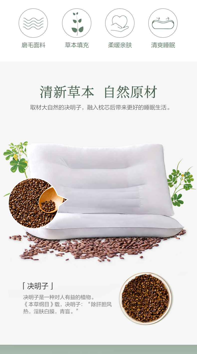 富安娜枕头芯颈椎枕决明子草本枕芯学生枕头套装 一对装60*40cm