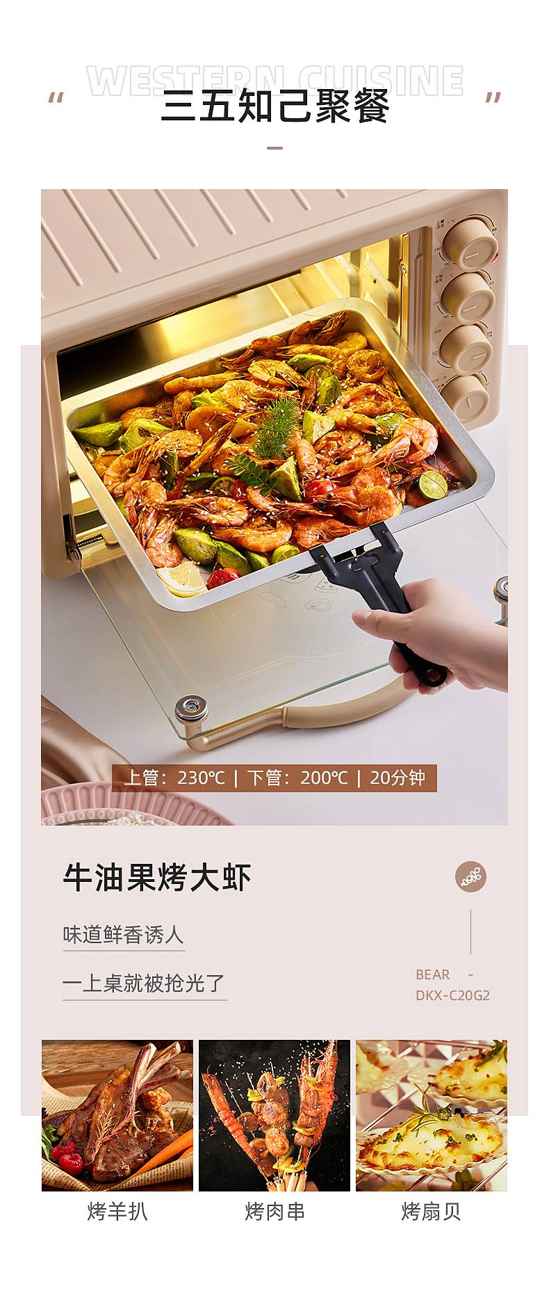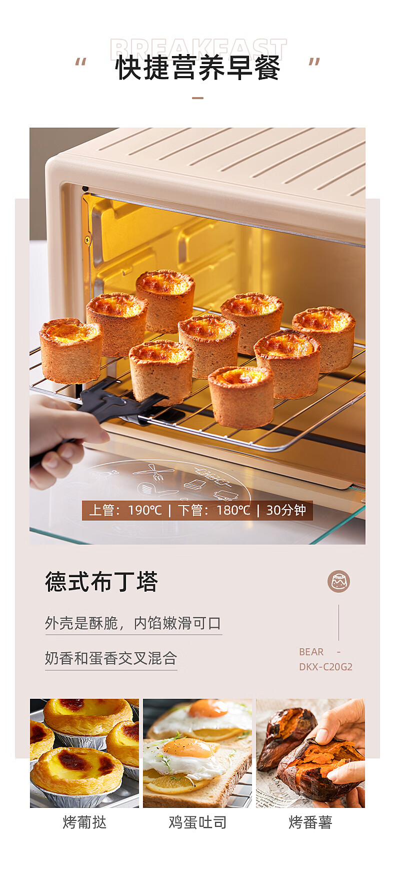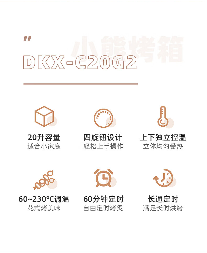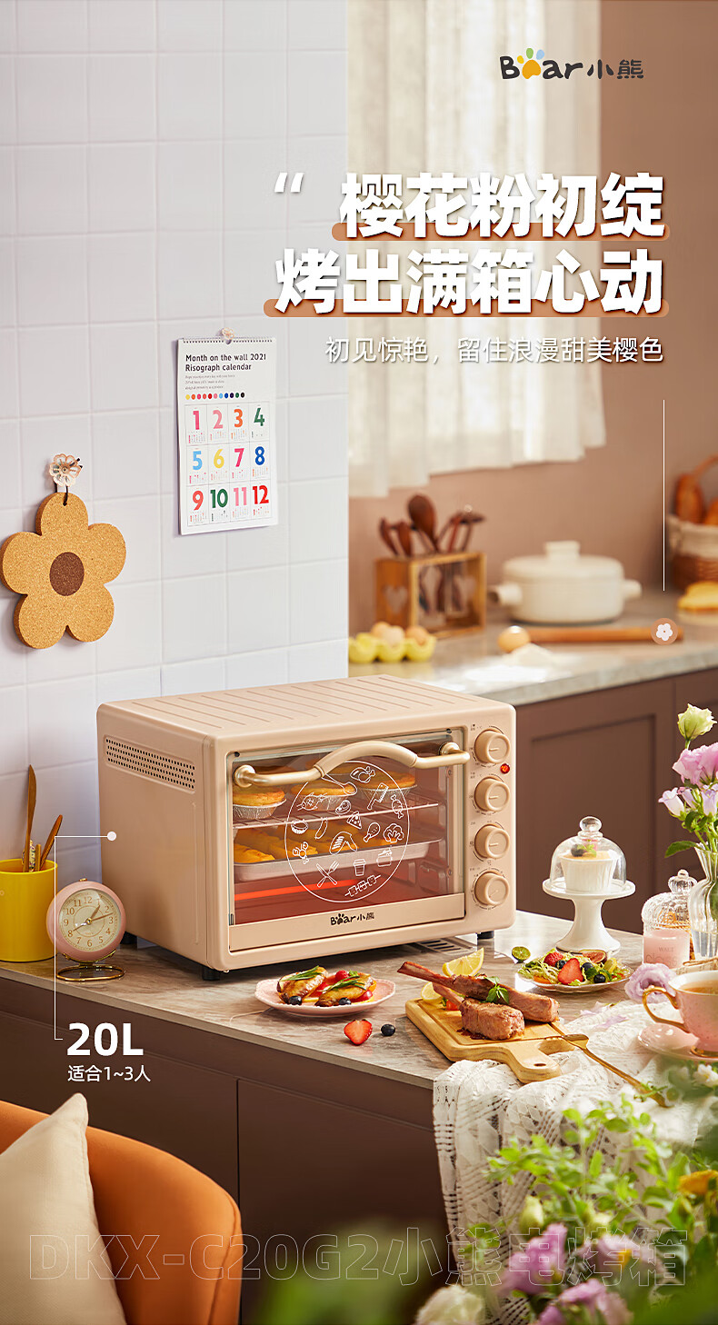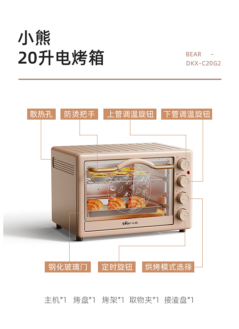 小熊(Bear)电烤箱多功能家用迷你小型独立控温20L烘烤蛋糕烤炉烤箱 DKX-C20G2
