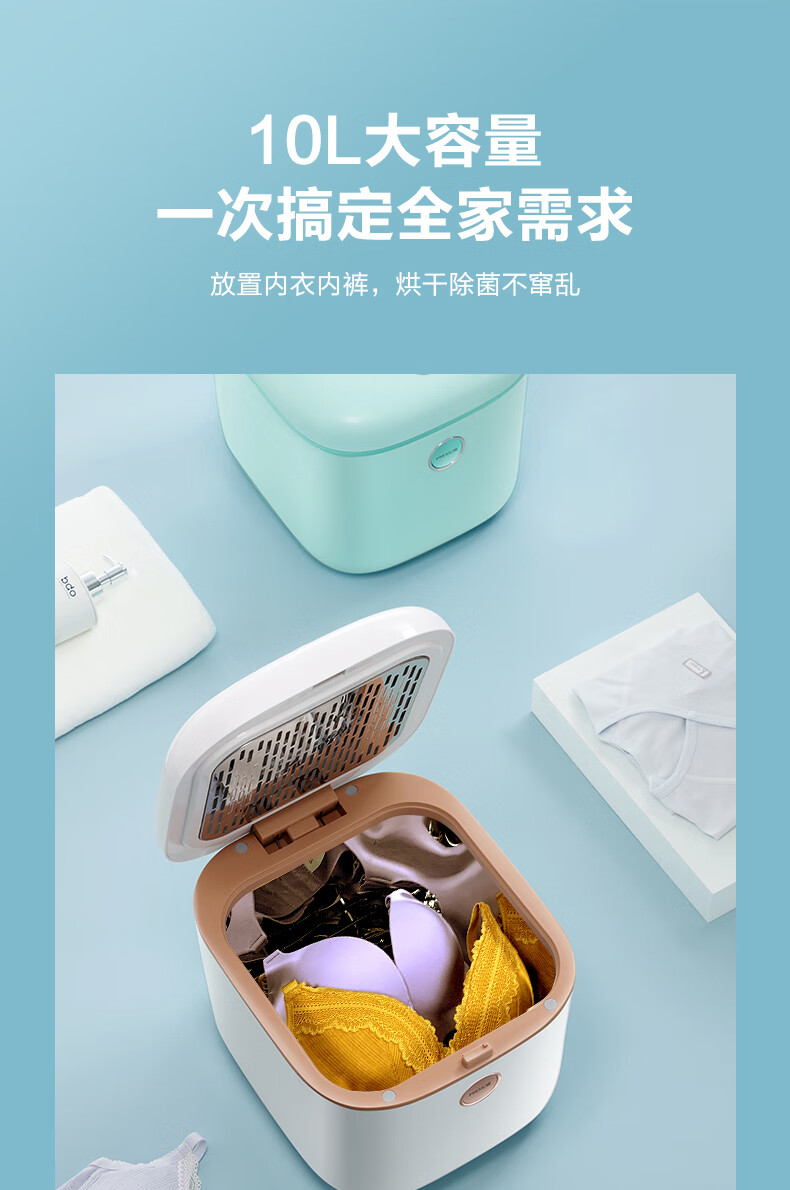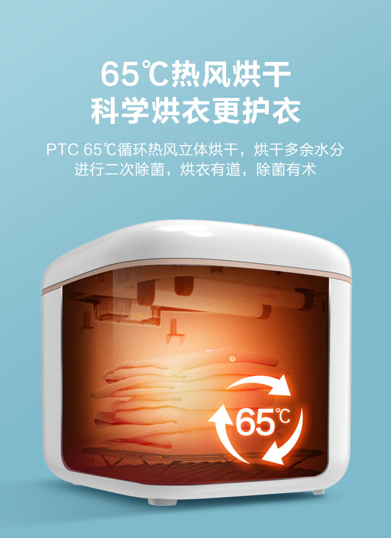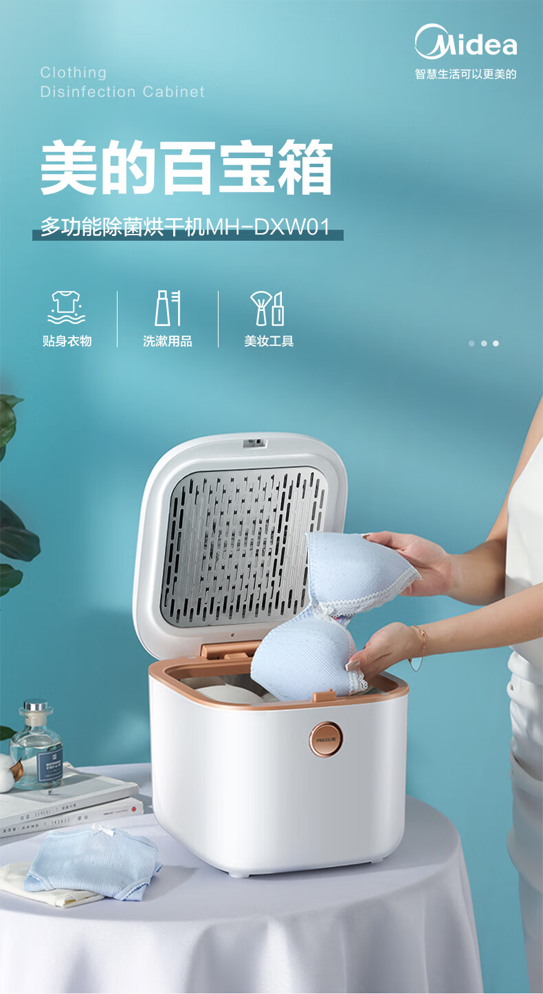 美的(Midea)烘干机小型 内衣内裤99.99%除菌机 小件衣物袜子婴儿玩具奶瓶 10L衣物护理盒家用干衣机 MH-DXW01