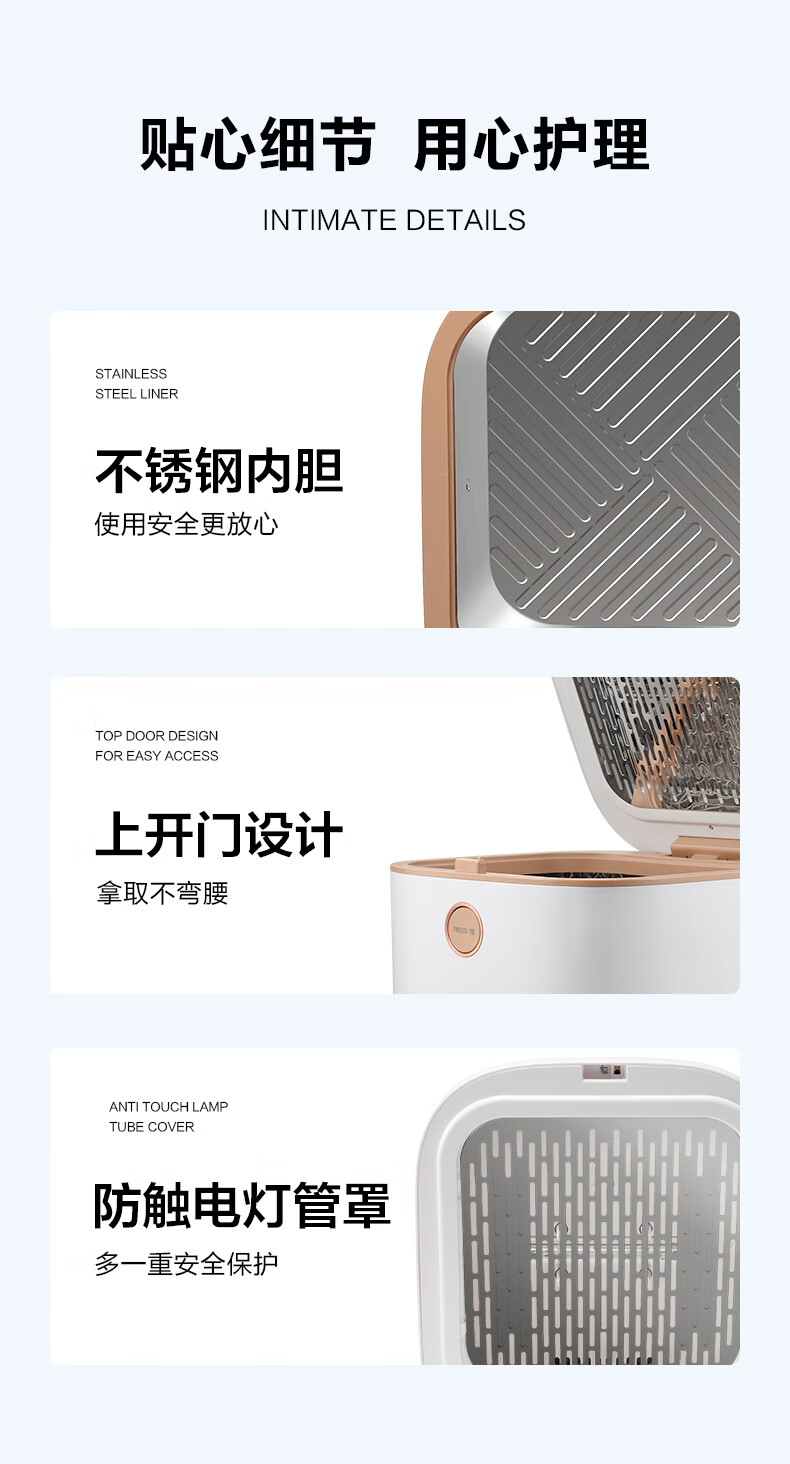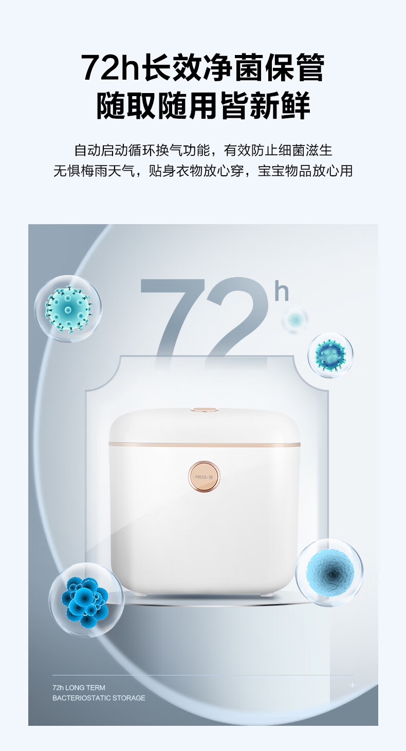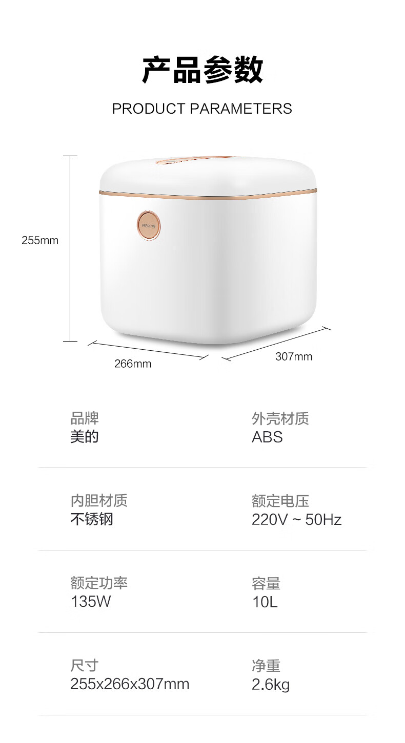 美的(Midea)烘干机小型 内衣内裤99.99%除菌机 小件衣物袜子婴儿玩具奶瓶 10L衣物护理盒家用干衣机 MH-DXW01