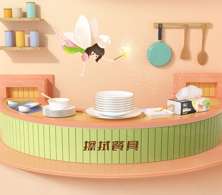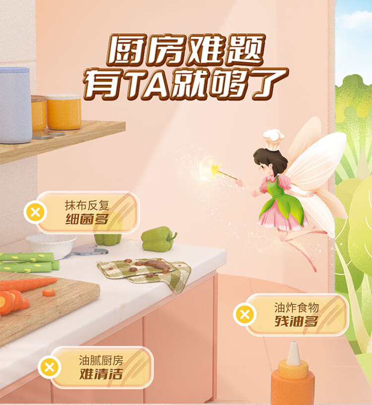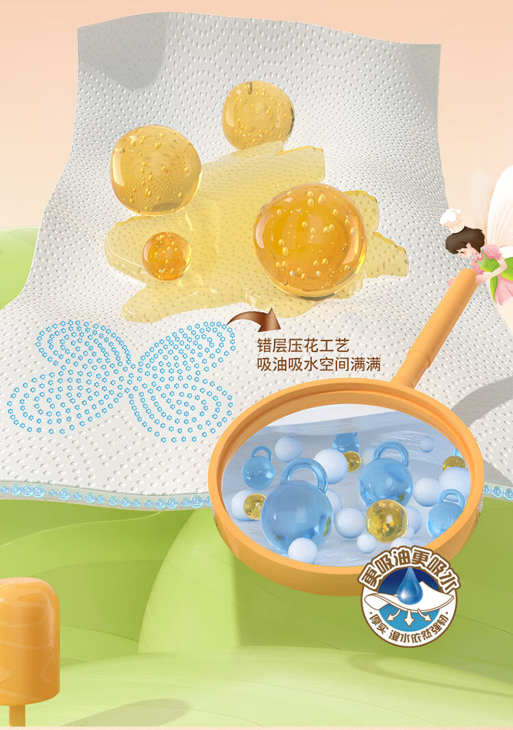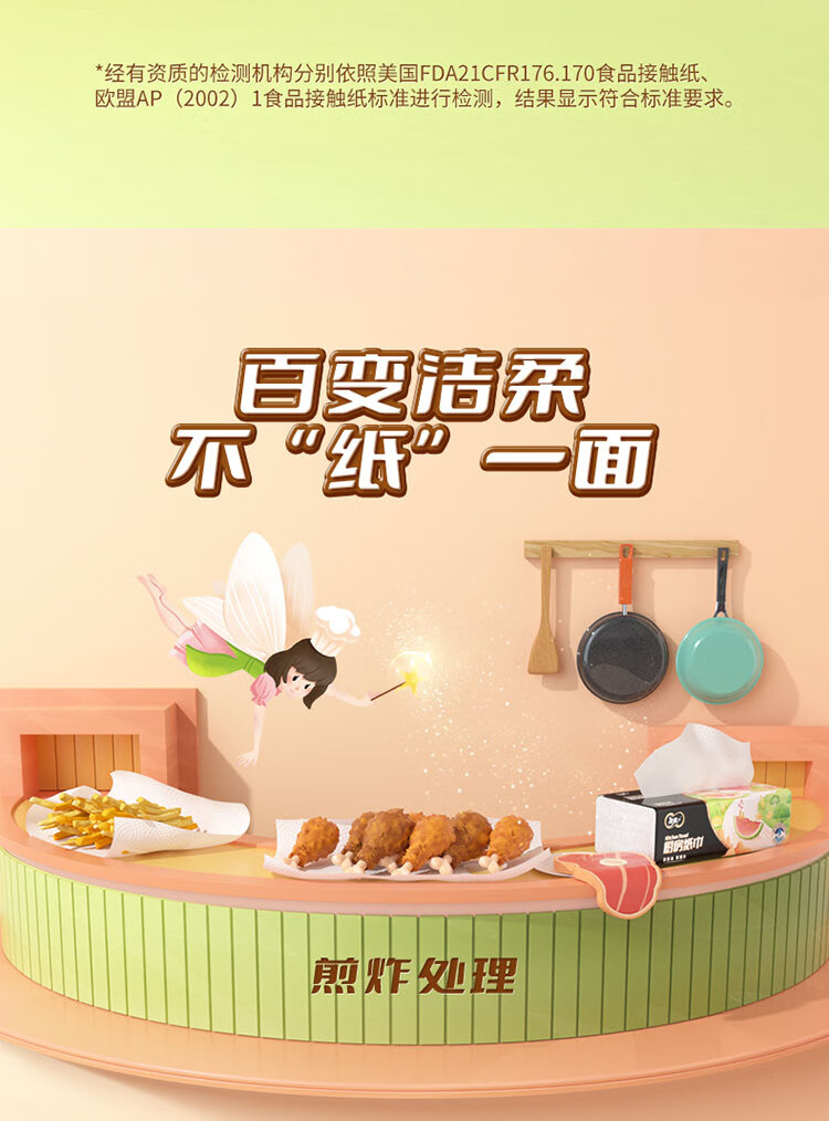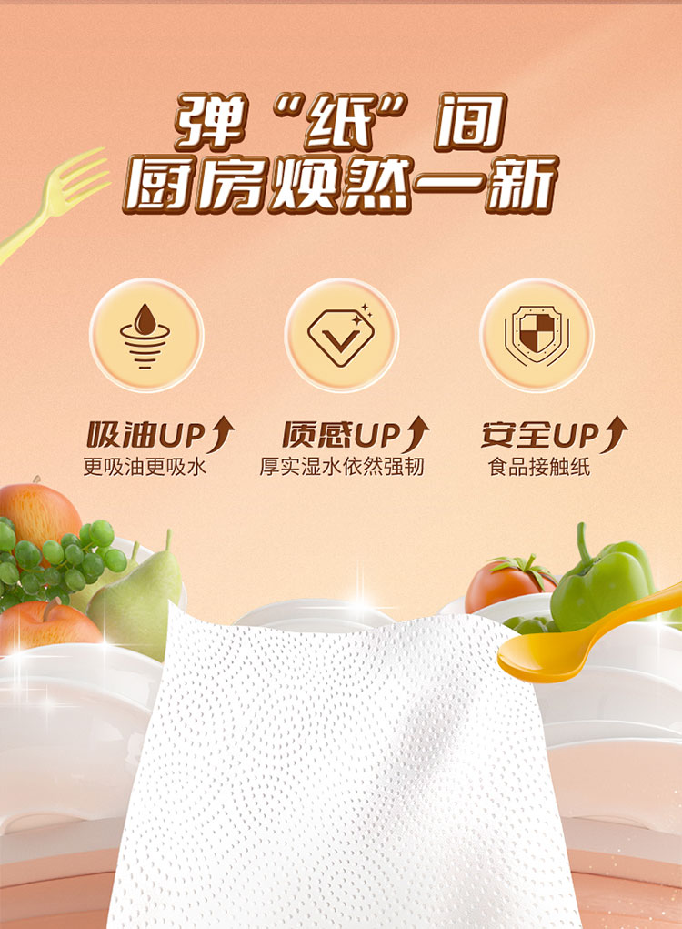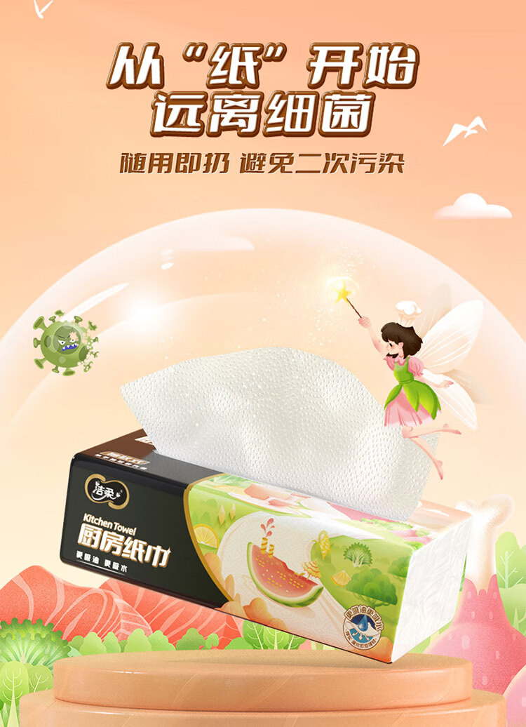 洁柔厨房抽纸 双层加厚75抽*8包 XL号大规格 轻松去油污 代替抹布