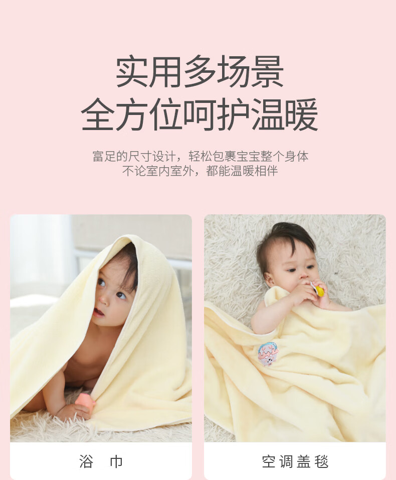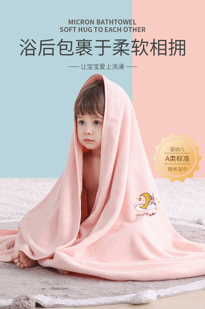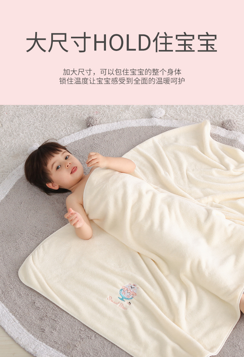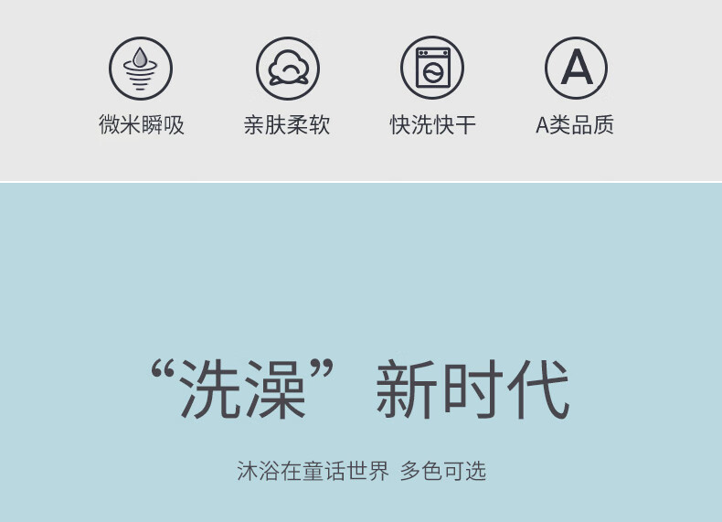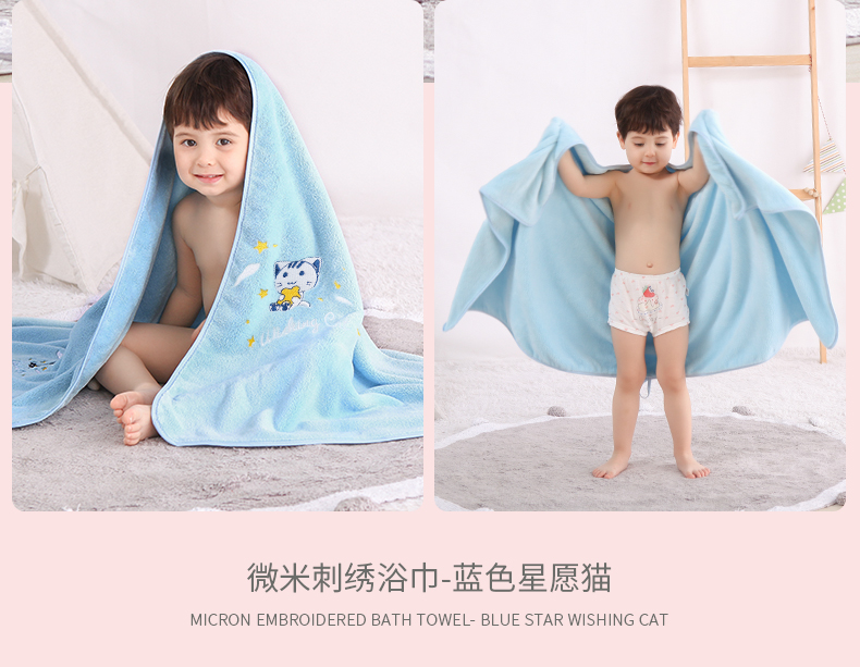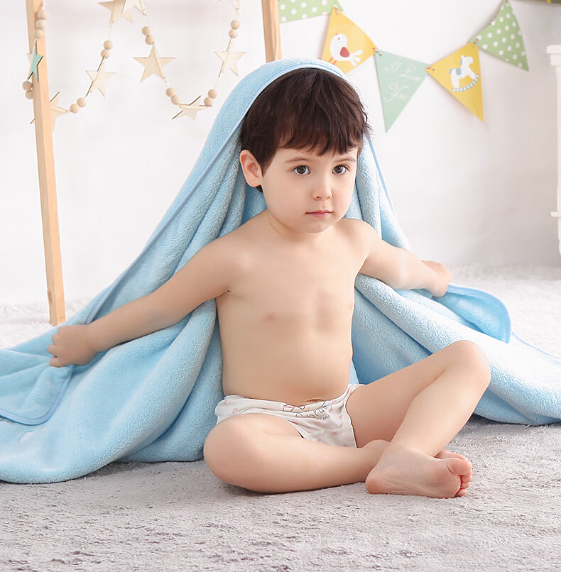 洁丽雅(Grace) 儿童浴巾家用吸水速干宝宝洗澡婴儿新生超柔大童 60*120cm 蓝色