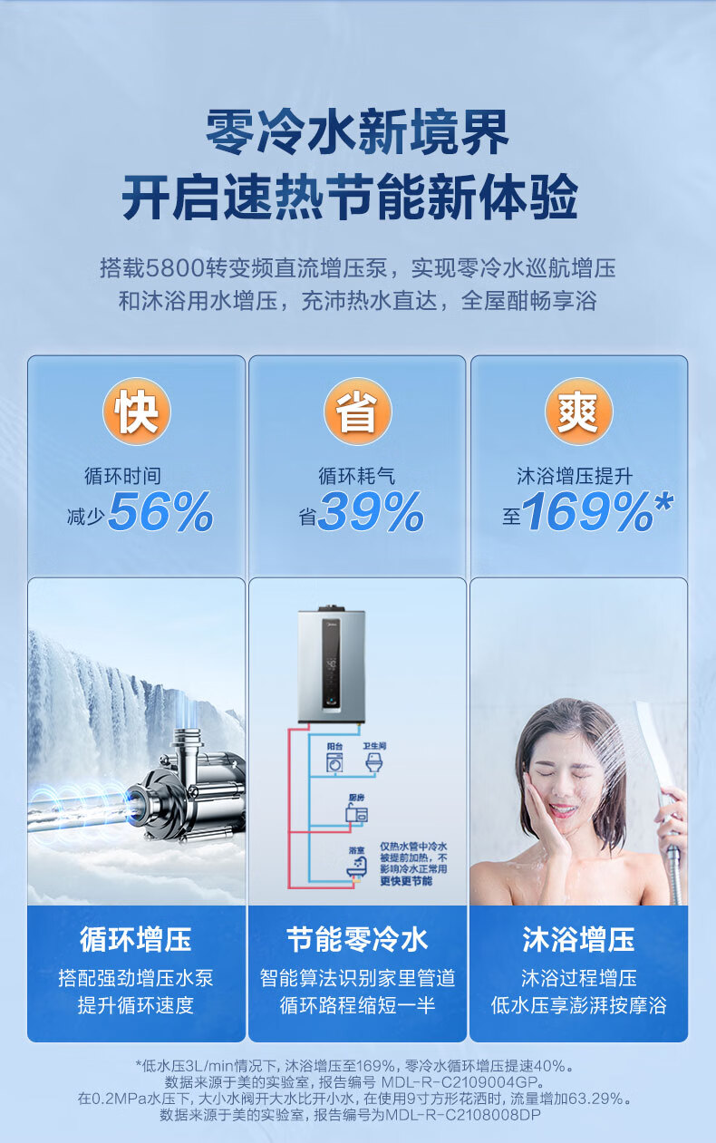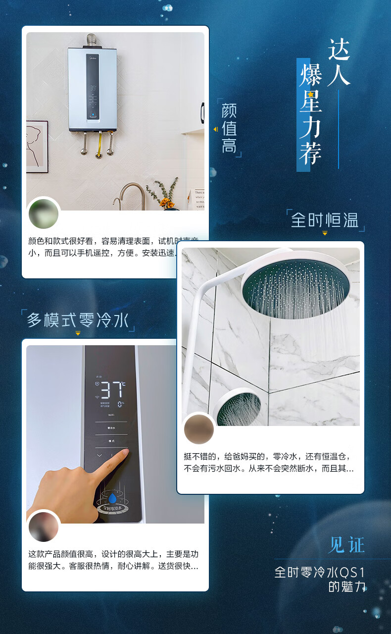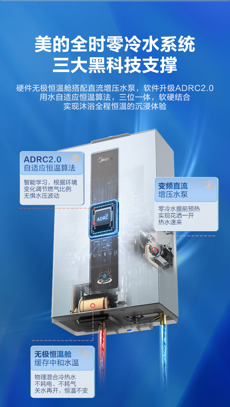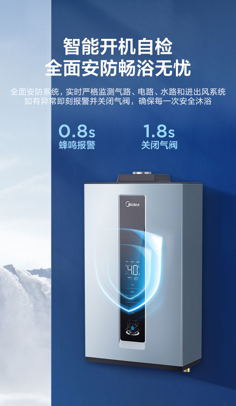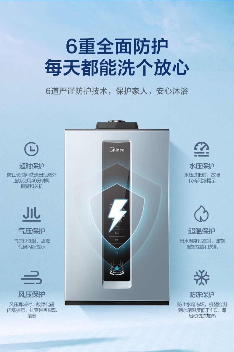 美的(Midea)16升燃气热水器天然气 无极恒温舱 双增压全时零冷水2.0 智能家电APP控制 JSQ30-QS1