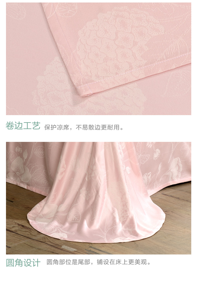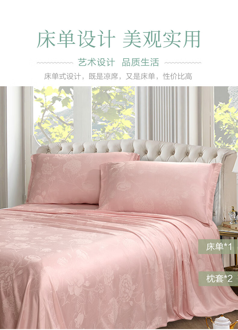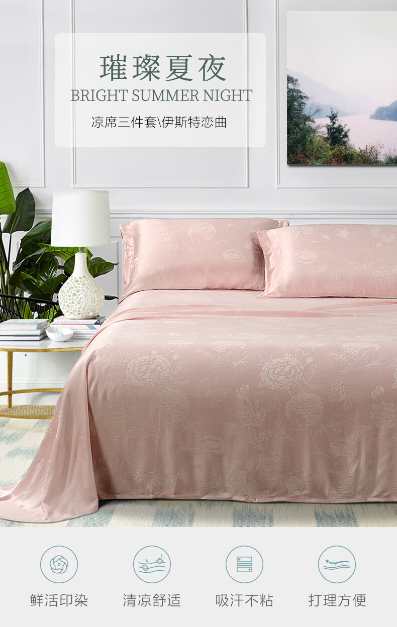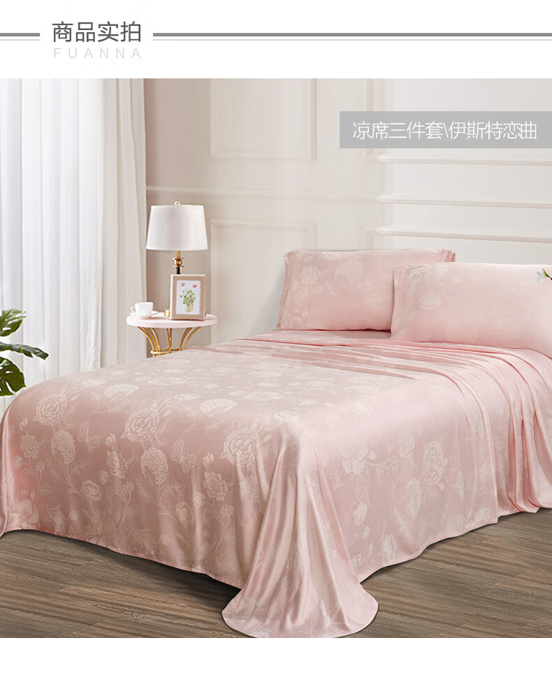 富安娜(FUANNA)高档凉席竹纤维床单软席子空调房夏凉席提花席三件套 粉色 2.5*2.5米