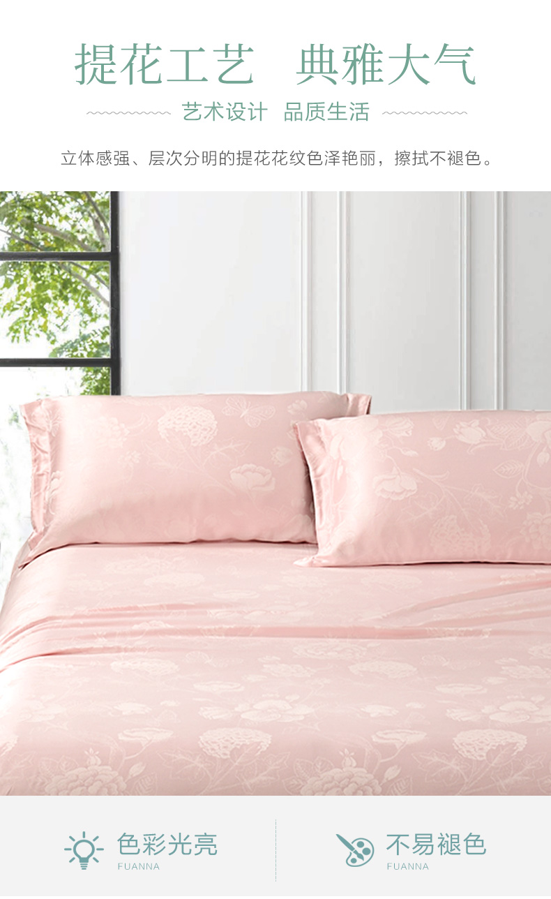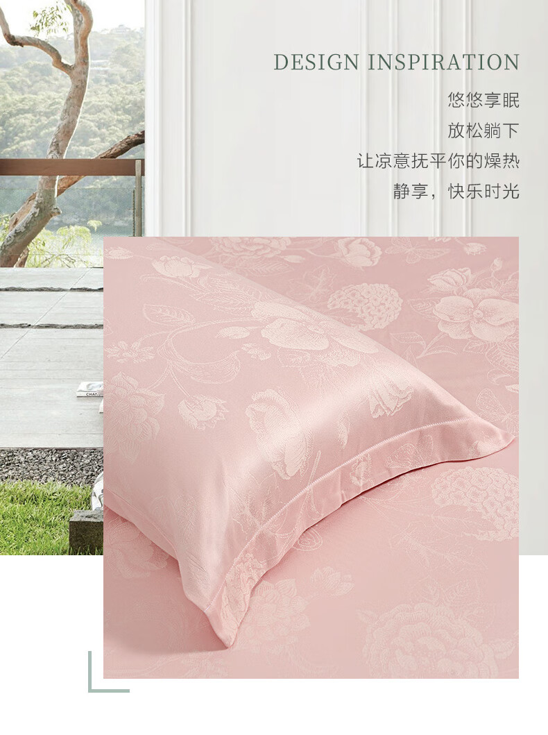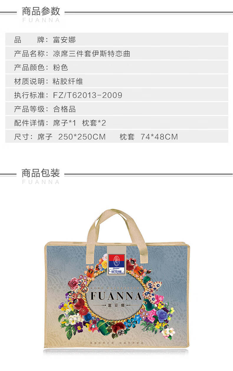 富安娜(FUANNA)高档凉席竹纤维床单软席子空调房夏凉席提花席三件套 粉色 2.5*2.5米