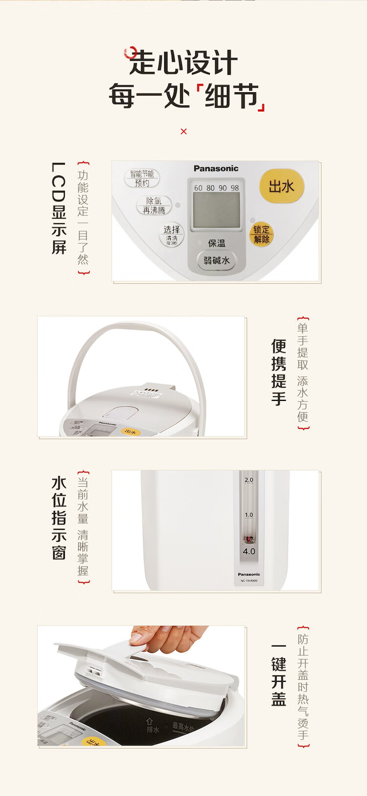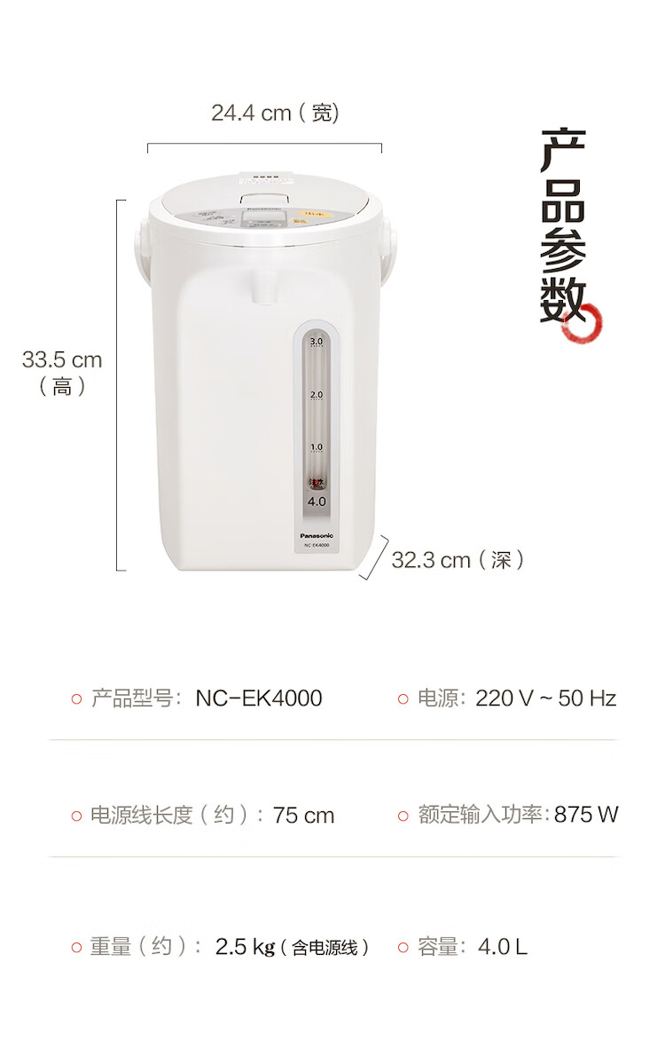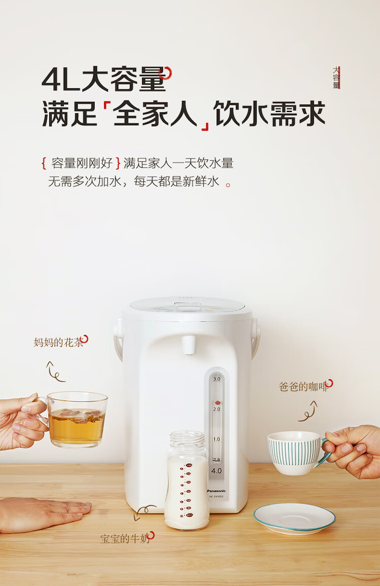 松下(Panasonic)电水壶 电热水瓶 可预约 食品级涂层内胆 全自动智能保温烧水壶 以旧换新 NC-EK4000
