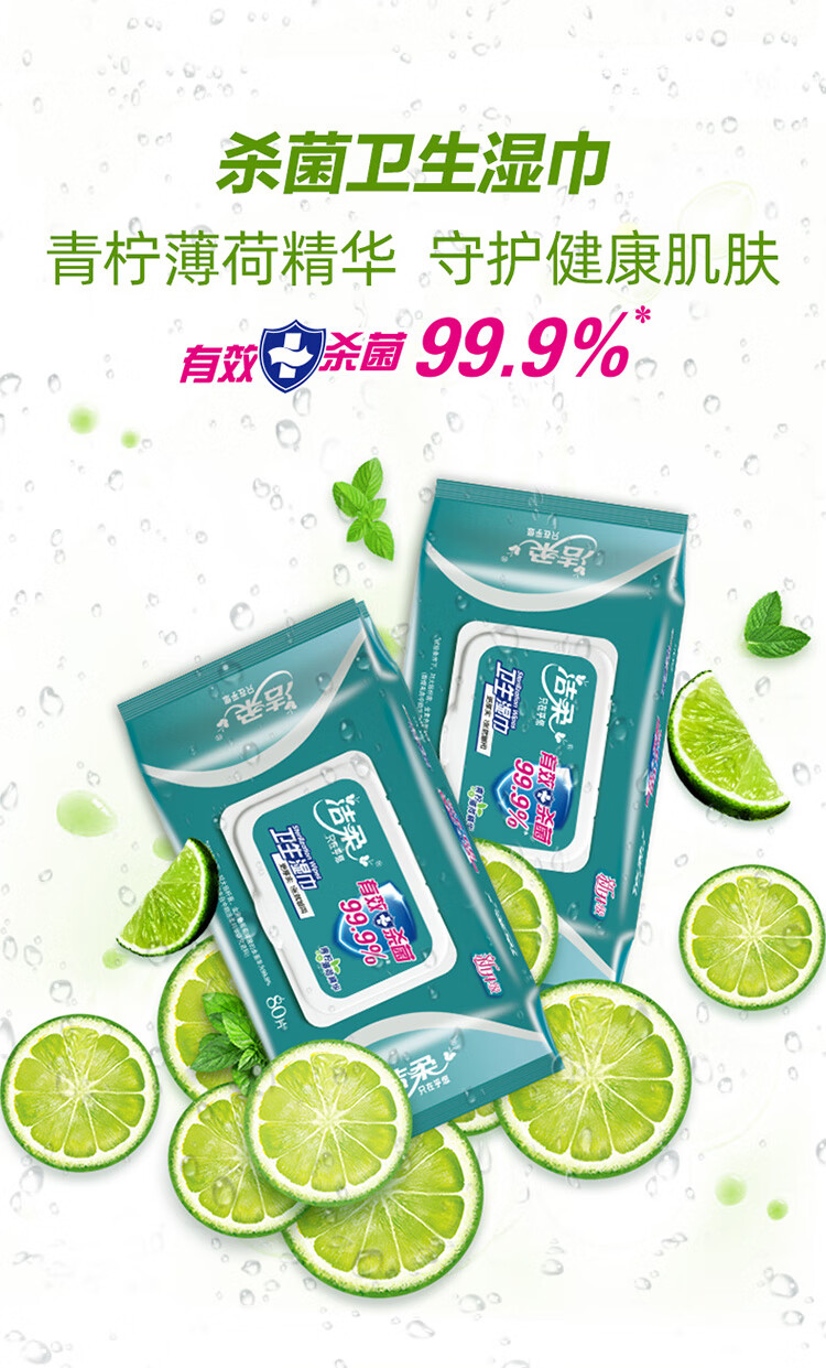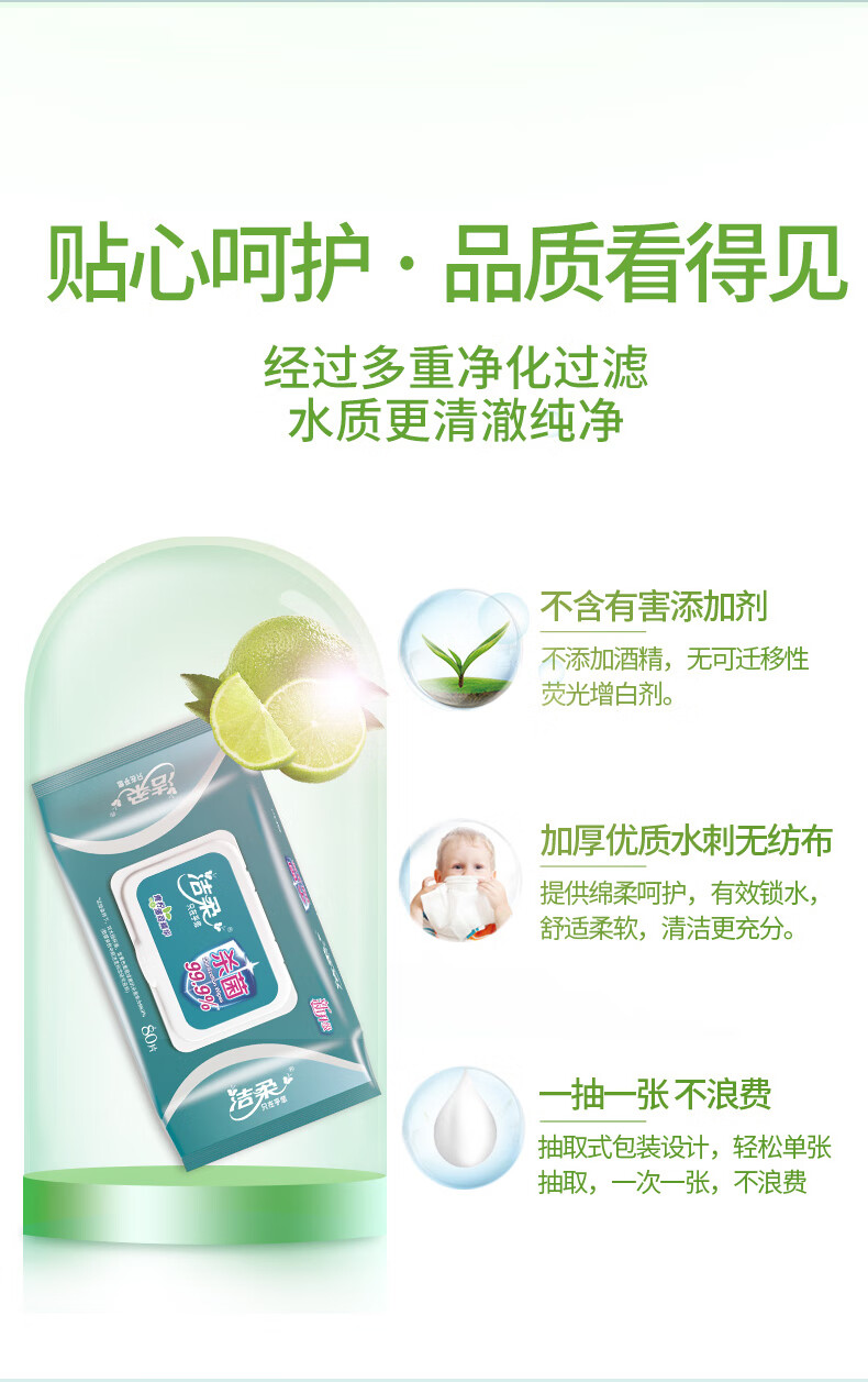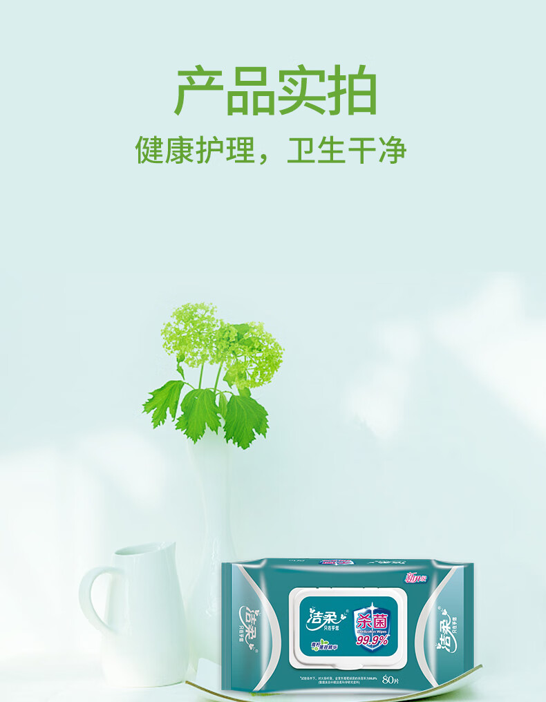 洁柔卫生湿巾 加厚80片*1包 99.9%杀菌清洁 呵护肌肤清爽不粘腻
