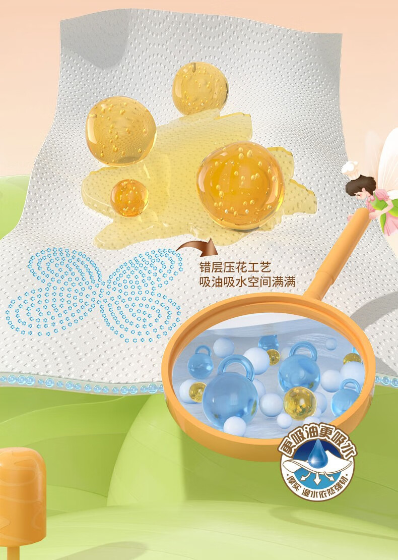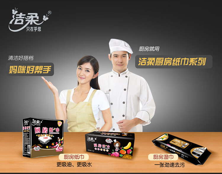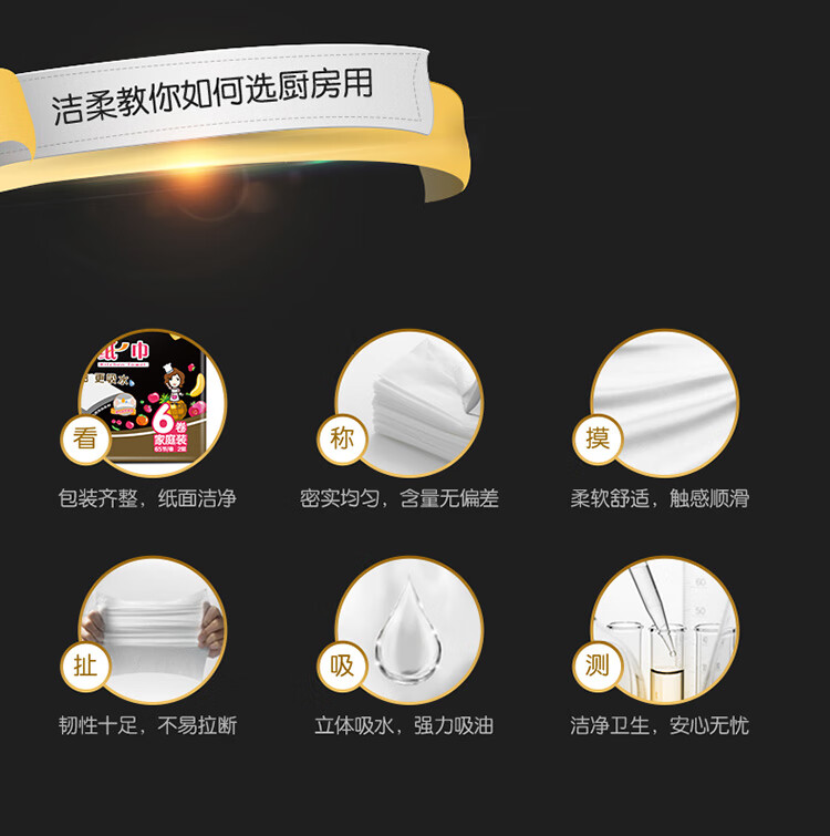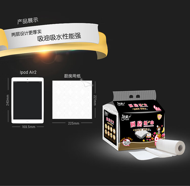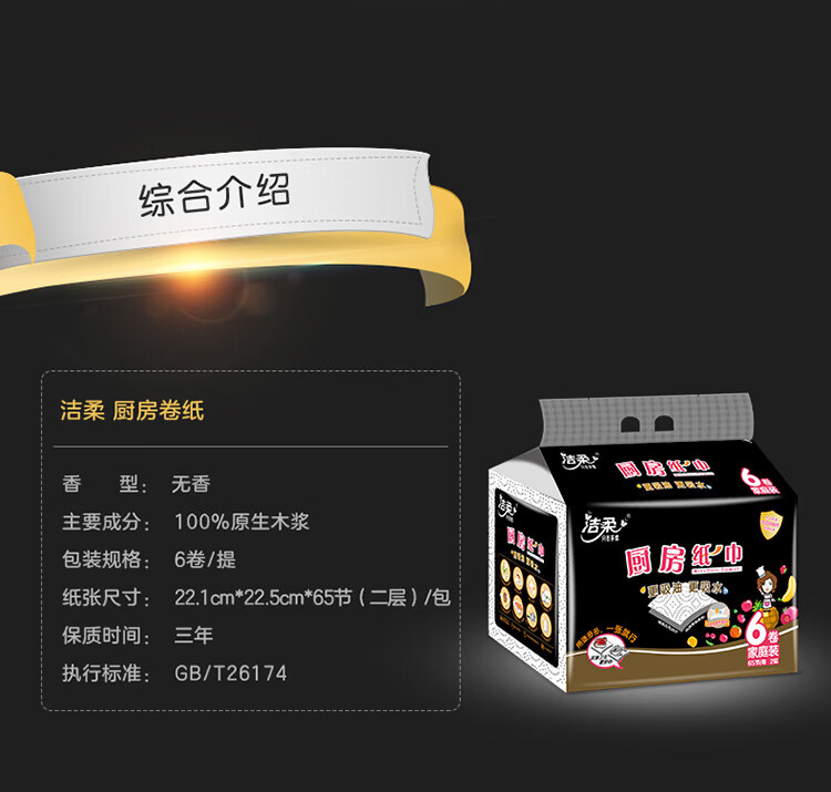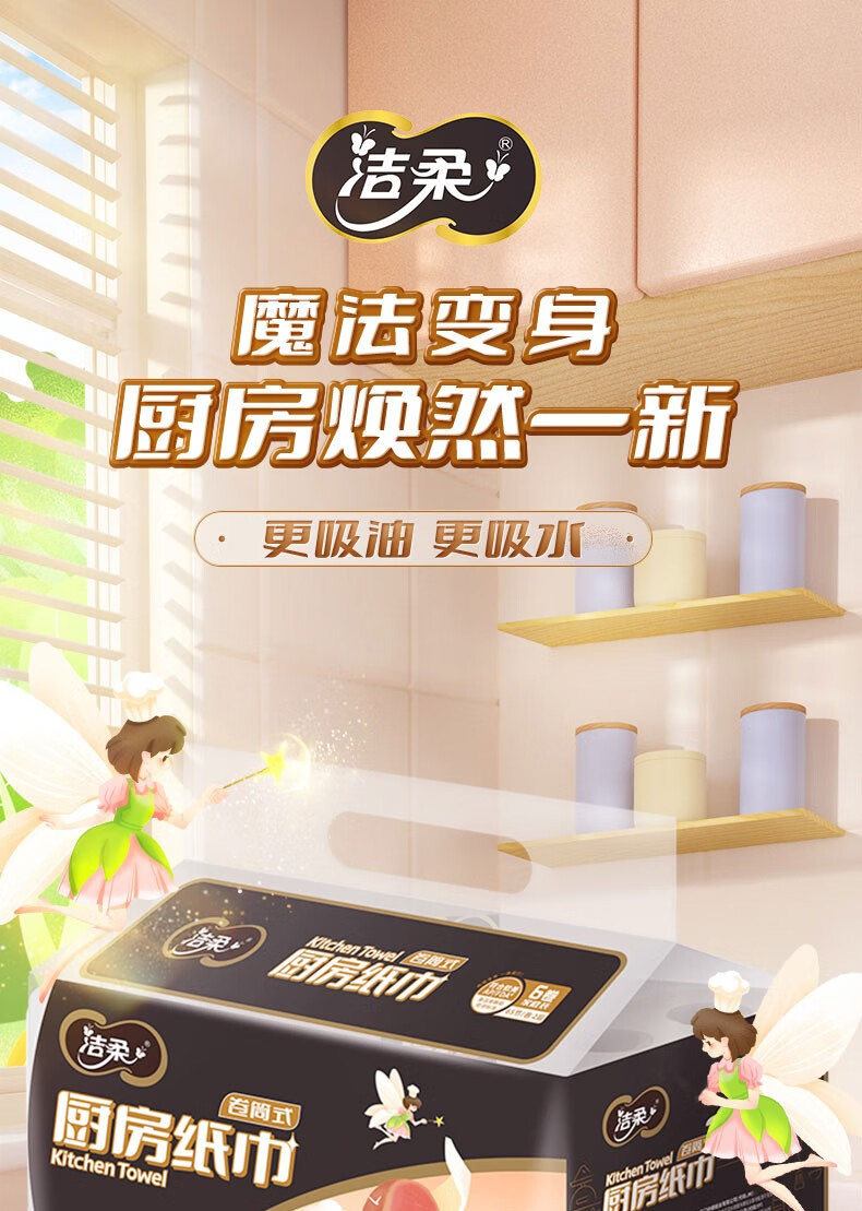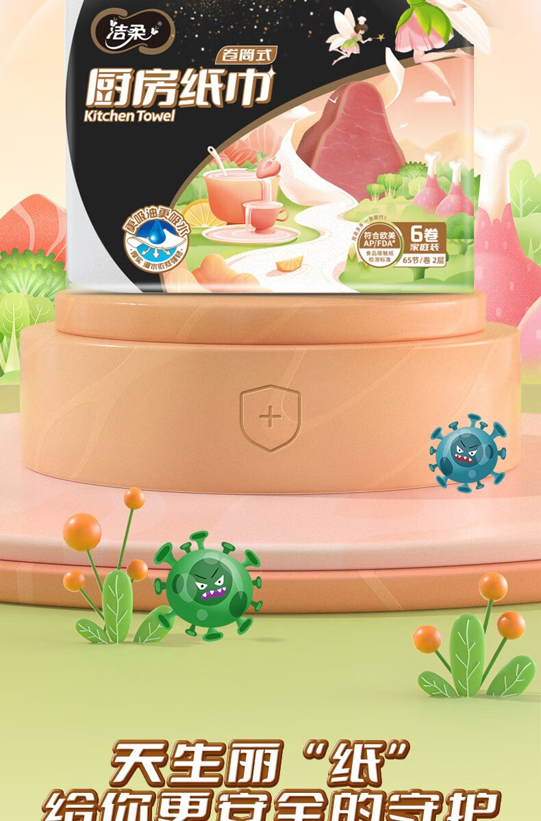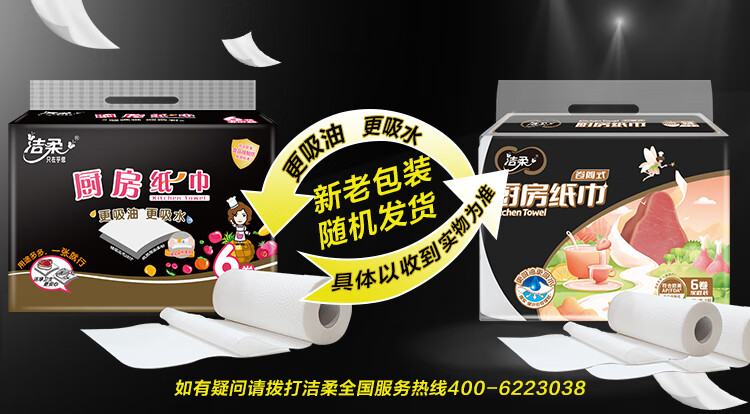 洁柔厨房卷纸 加厚双层65节*6卷 料理用纸 3D花纹 可直接包裹食物