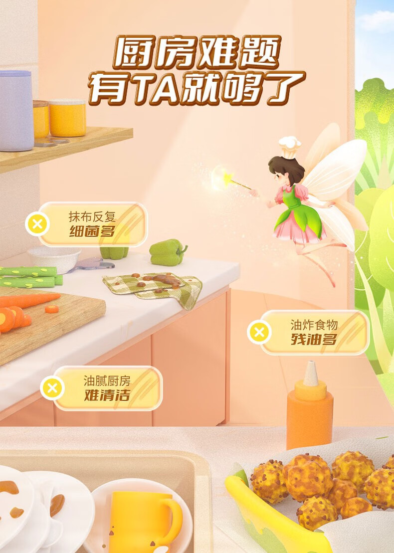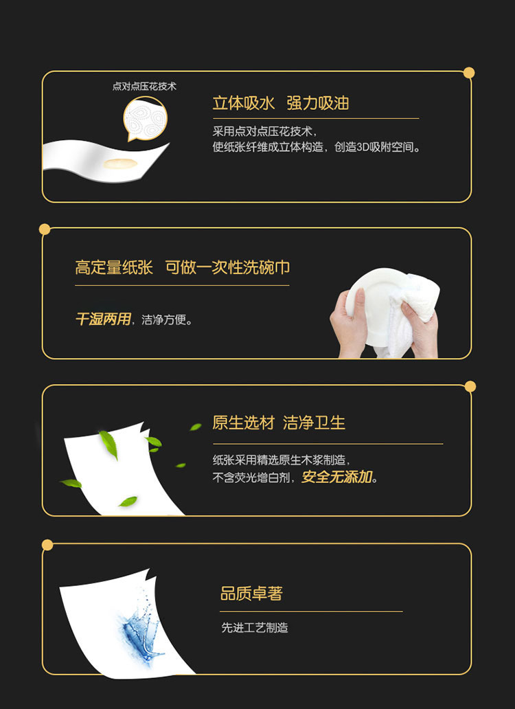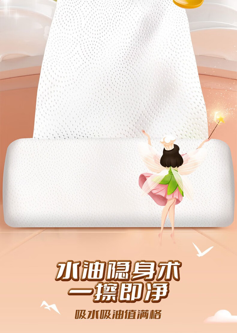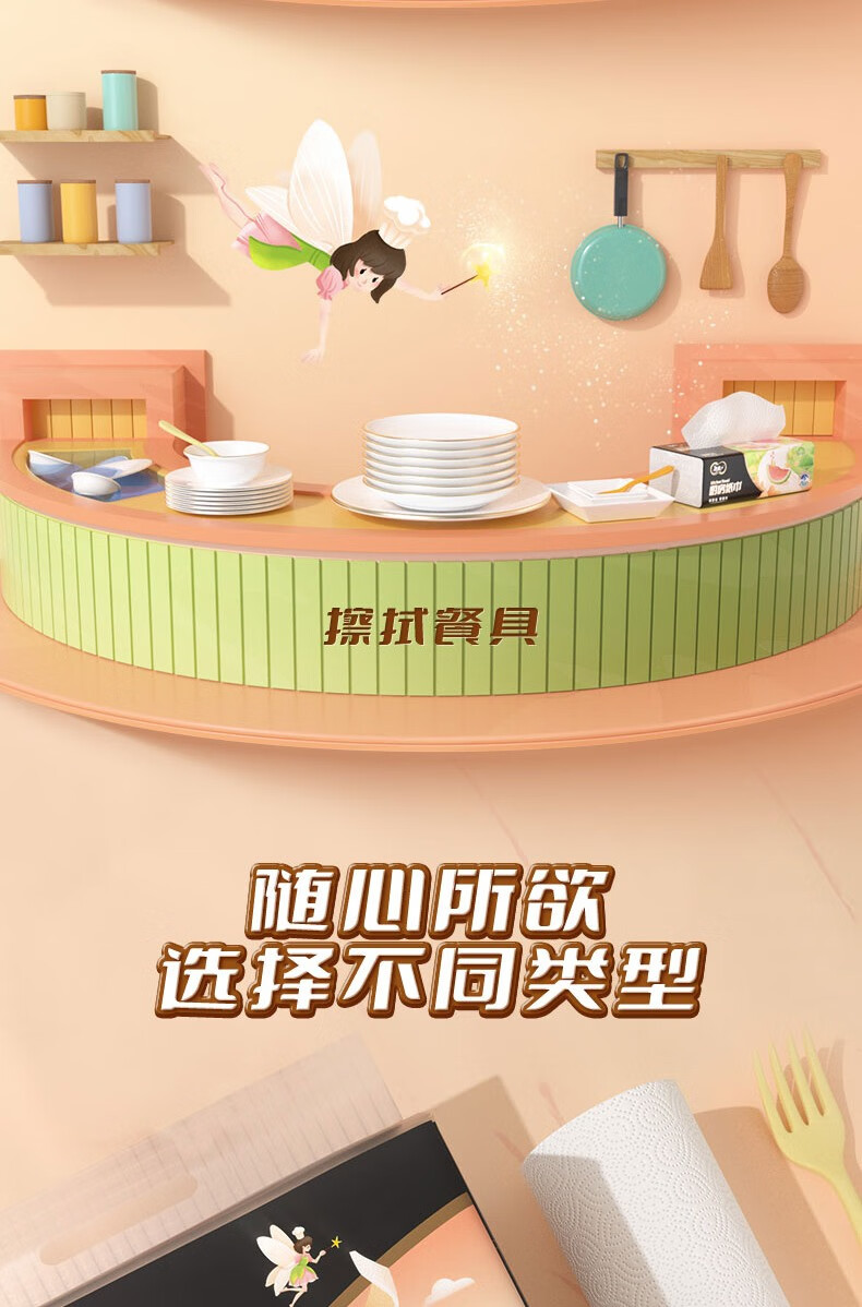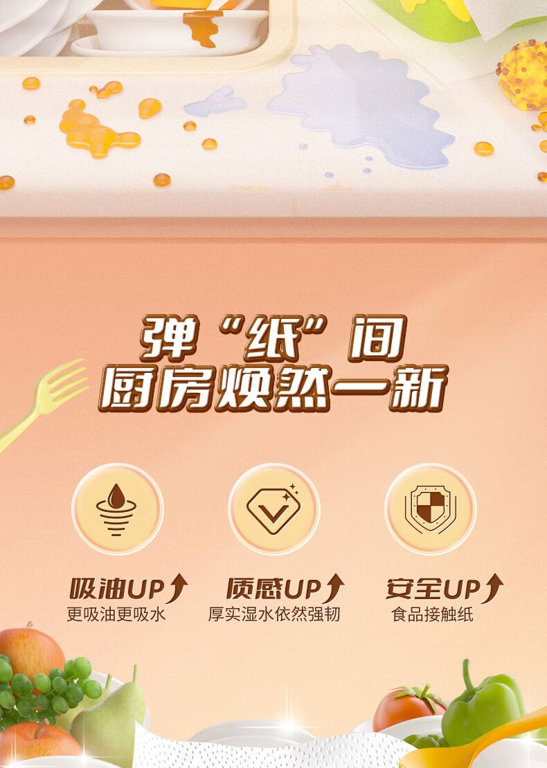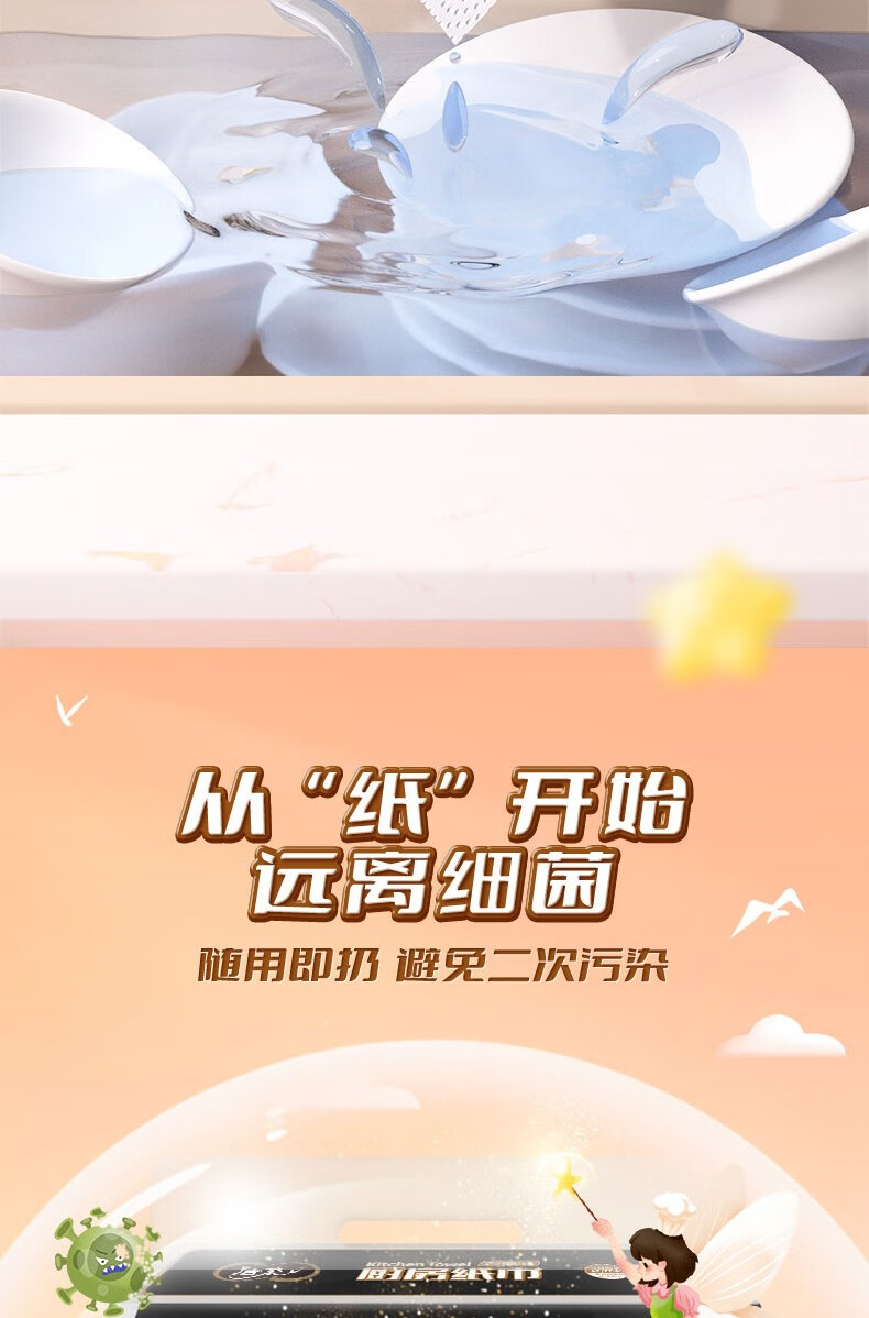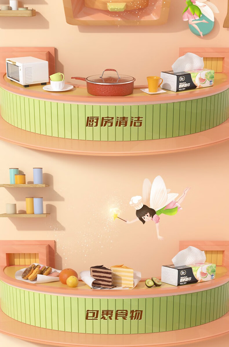 洁柔厨房卷纸 加厚双层65节*6卷 料理用纸 3D花纹 可直接包裹食物